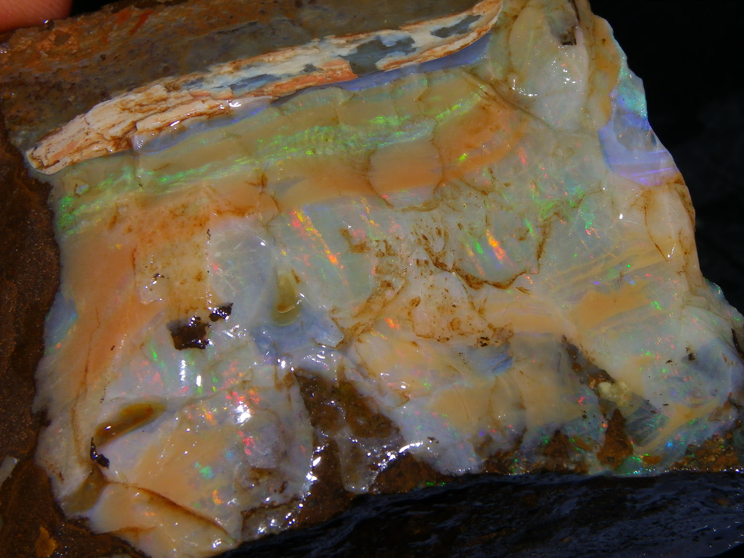 I have for sale a nice and large Rough Opal Split Pair from Queensland Australia. These 2 pieces weigh 3086cts in total, over half a kilo. They are Ironstone BOulder with faces of Crystal/White/Milky Opal and Potch on 5 faces between them. The larger one has 3 with good opal. Then slight Blues/Fossils in the ironstone. The smaller has 2 faces, and some veins on the sliced back face. Nice Multicolours in places, Bars/Banded sections, then add to that the split face where they match up. Very interesting parcel. Should cut some stones, or just superb specimens. Thanks for looking.