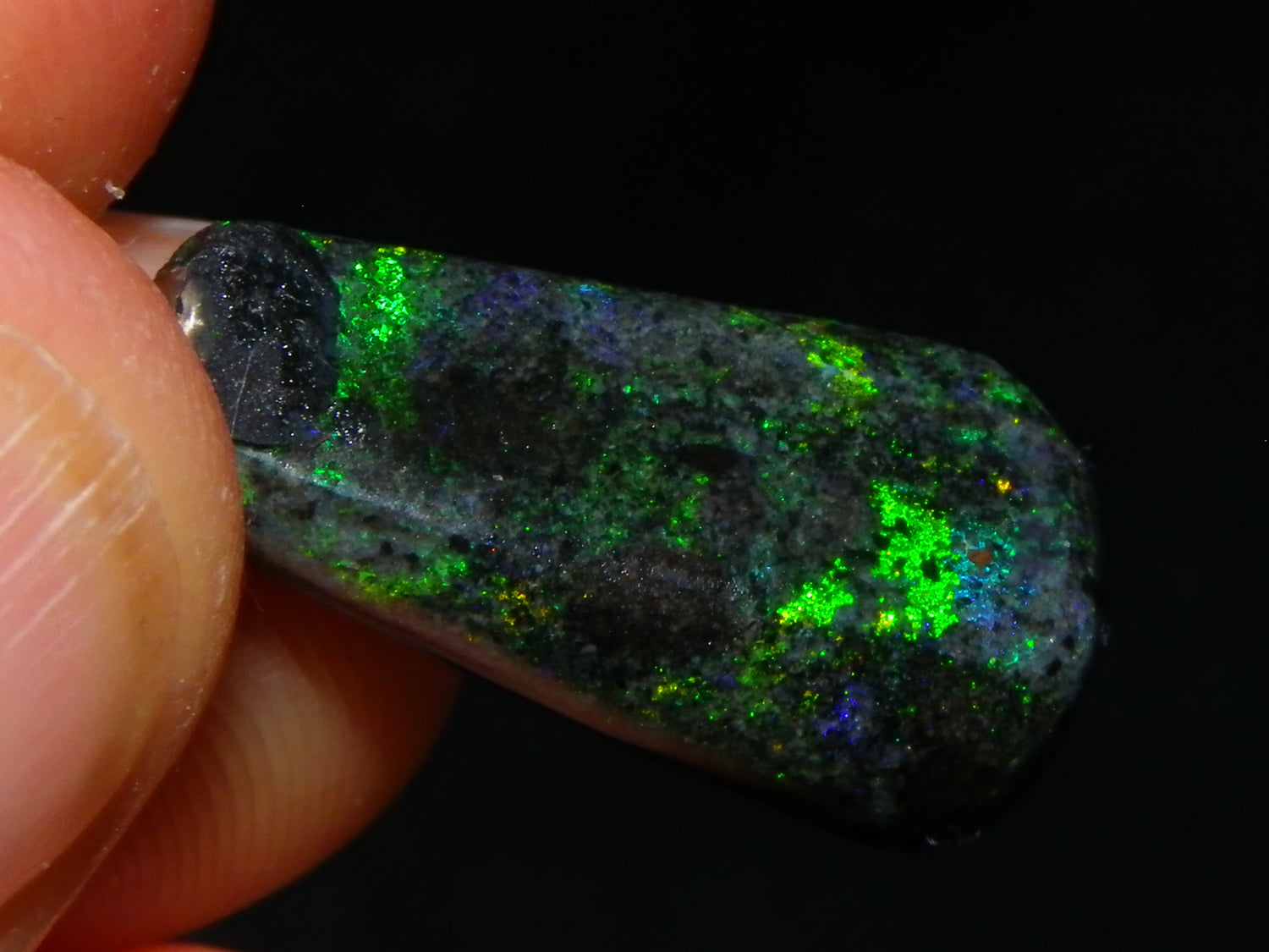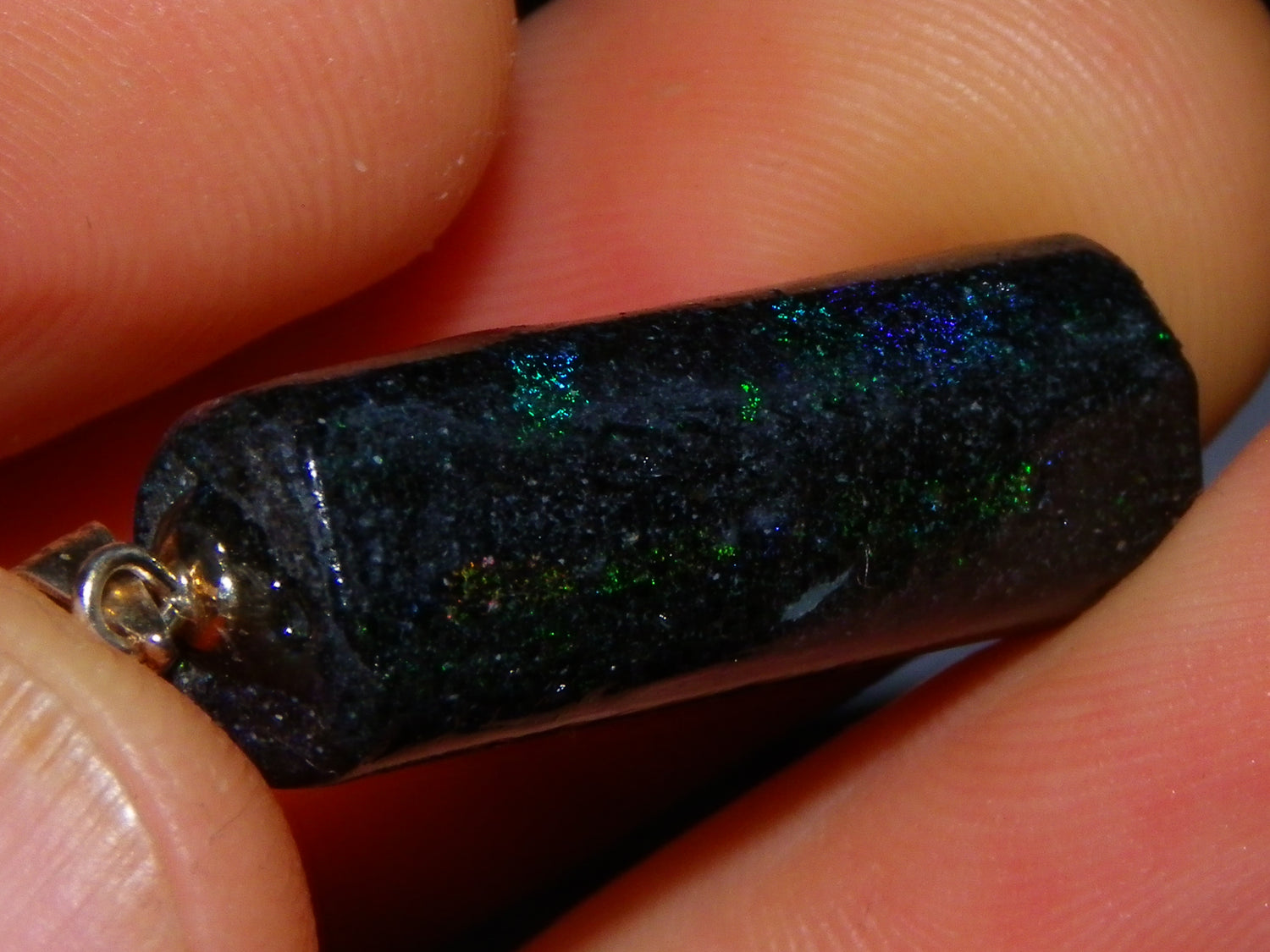 I have for sale 2 Nice Cut/Polished and Treated Andamooka Matrix Opal Pendants with 925 Silver/Marked Bails. They weigh 31.7cts in total between them. Dark base material with Blue and Green Fires in them. They are Freeform/Cylinder shapes, sliver bails in the top. Theseneed a small chain and are ready to go. One has slightly Brighter Fires in it. Great Lot. Thanks for looking..