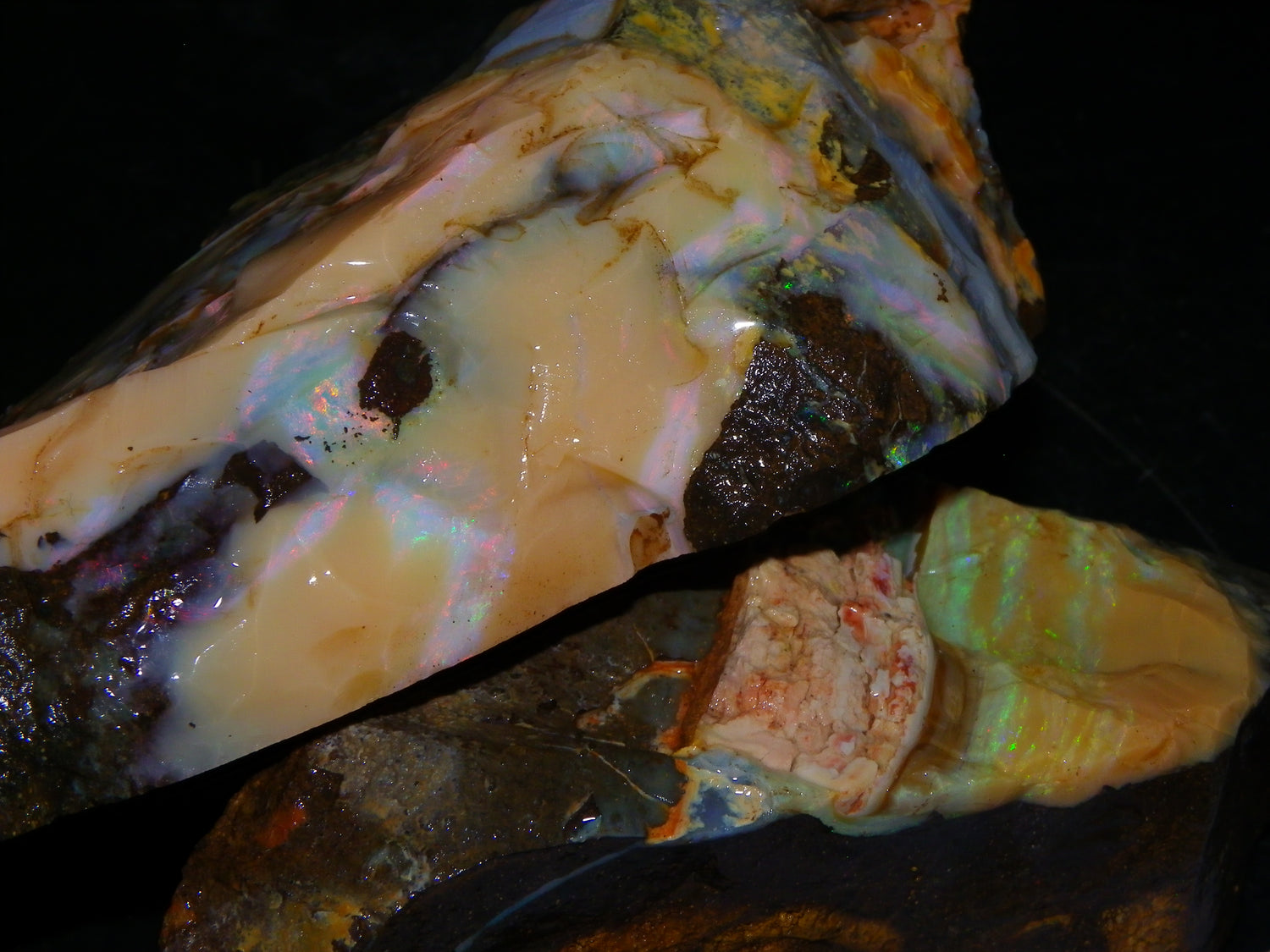 2 Nice Rough Boulder Opal Specimens 2704cts Queensland Australia Some Fires/Patterns