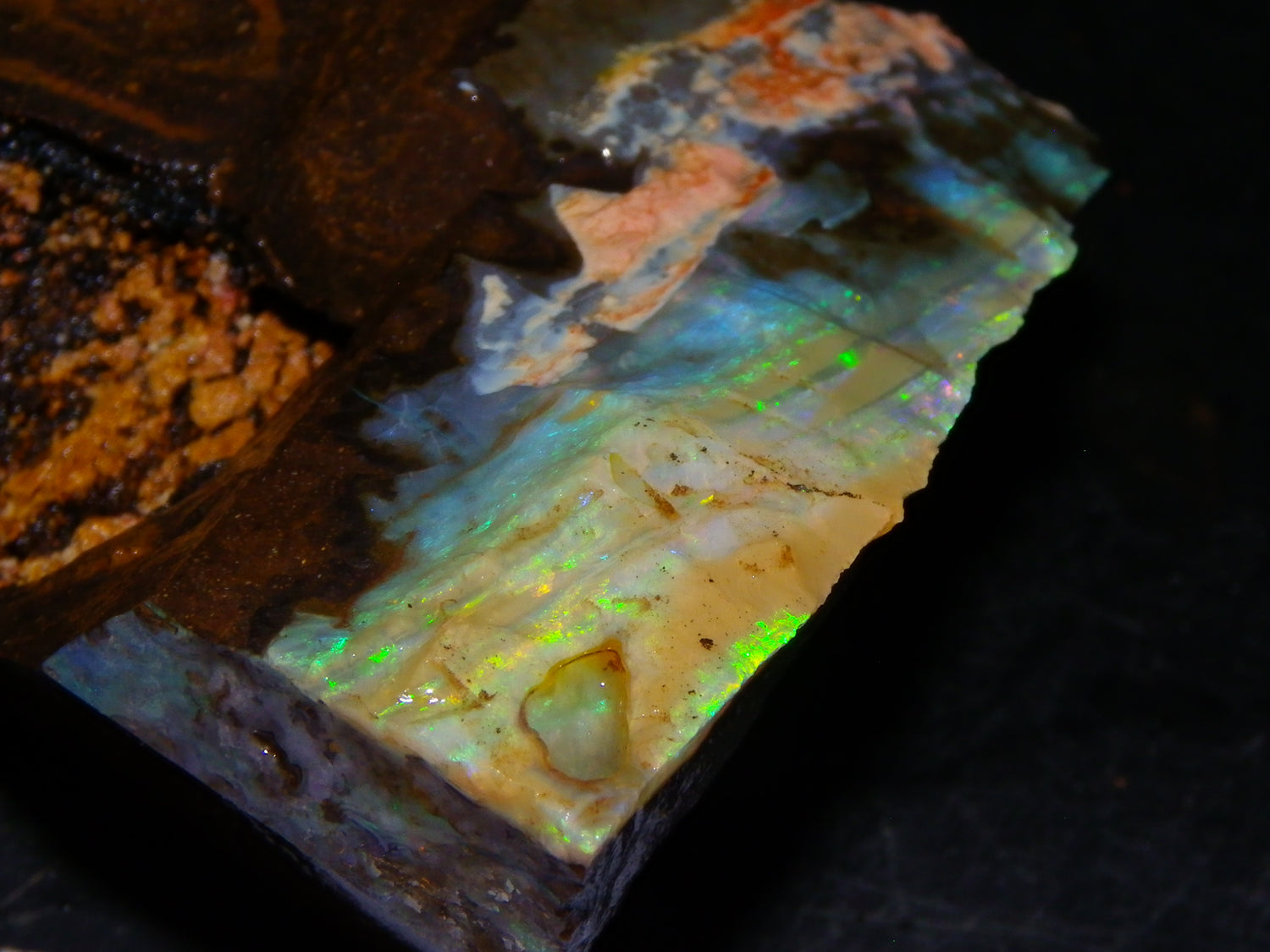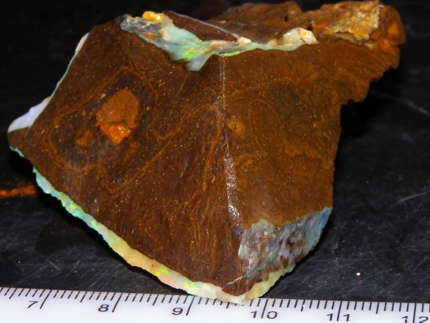 I have for sale 2 nice Boulder Opal Rough Specimens from Queensland Australia. These weigh 809cts in total. They are Ironstone base material with some areas/part faces of Opal on them. The largest has a triangle of better Fires/Bars Gold/Greens on one side, also some potch/crystal and only slight colour on the other faces. The second has some Blue/Greens on the top face, slight pattern/colour elsewhere. Great specimens, or cut a few Picture stones and similar from them. Thanks for looking.