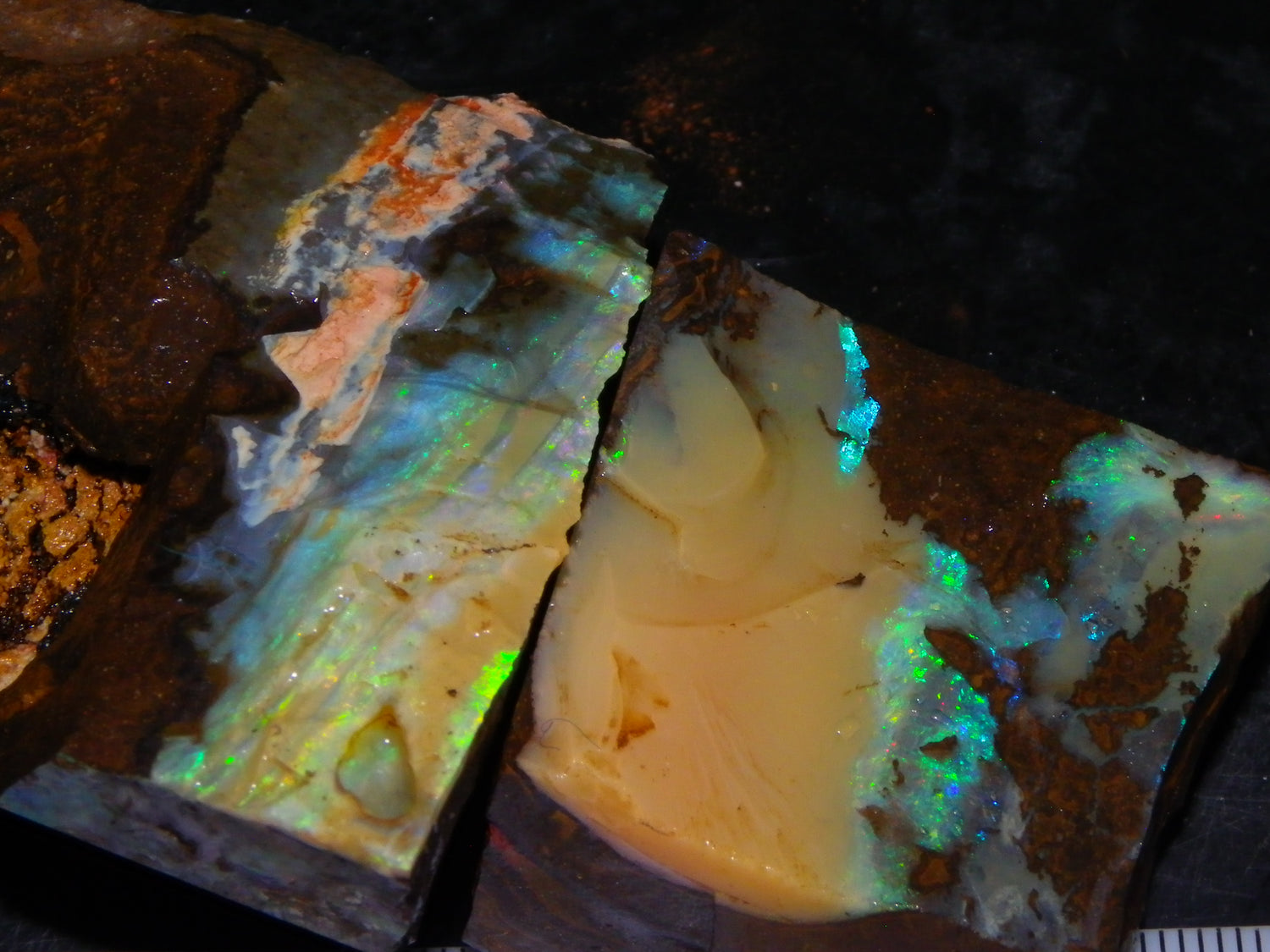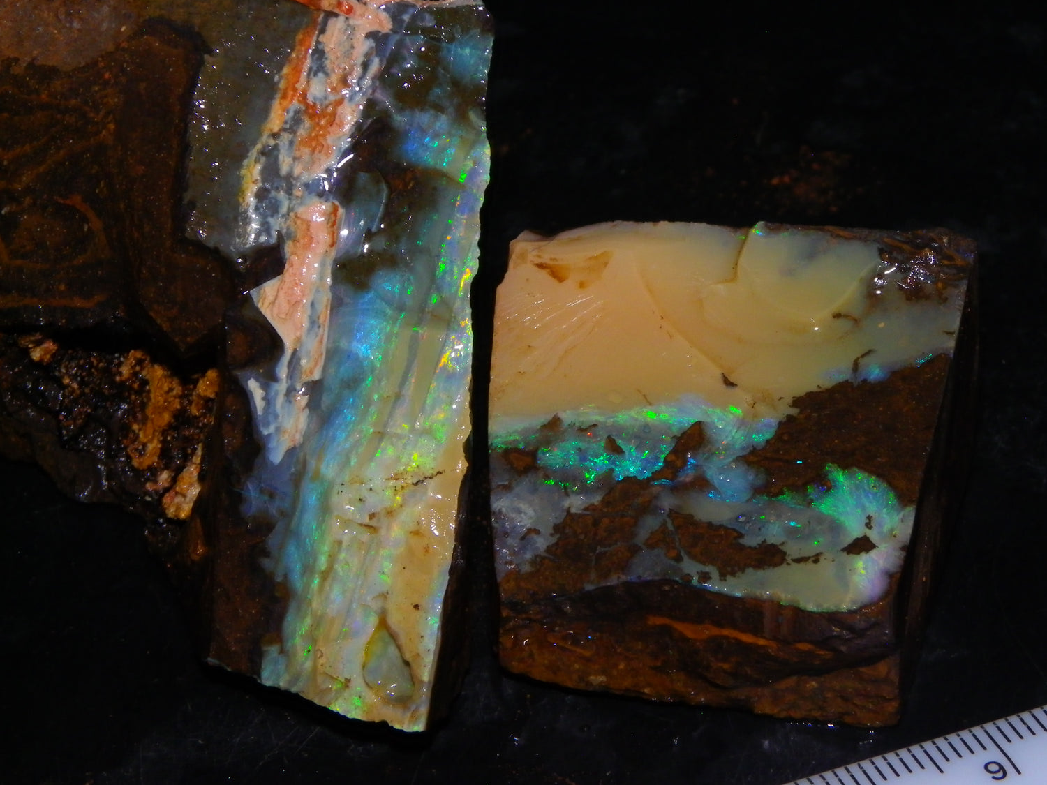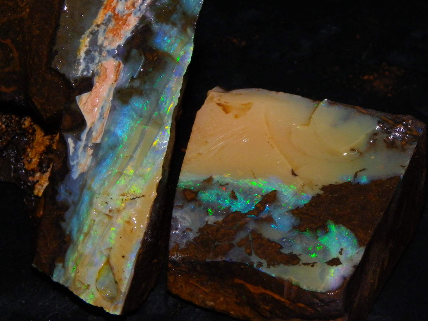 2 Nice Rough Boulder Opals Specimens 809cts Queensland Australia Some Fires Green/Blue