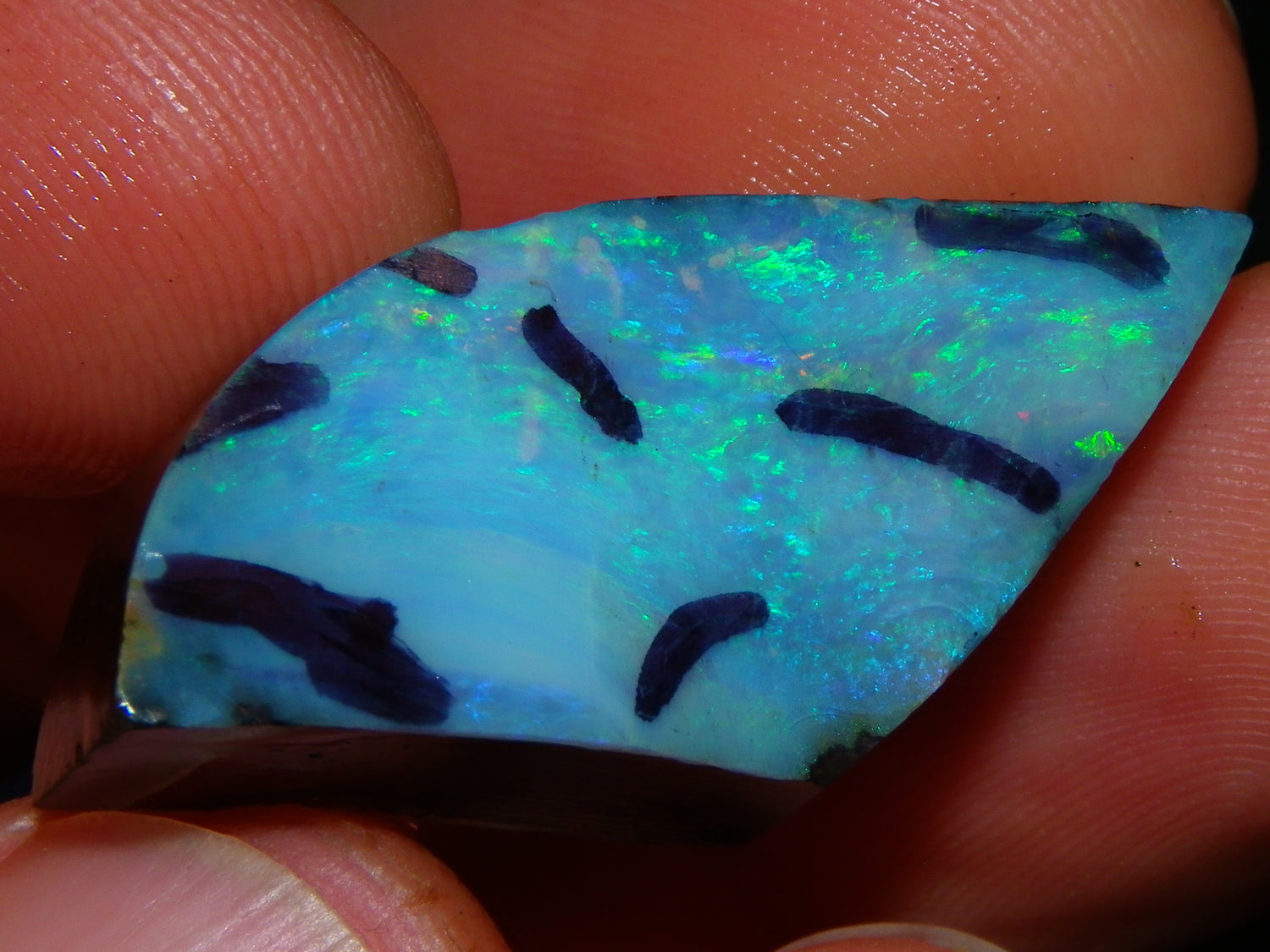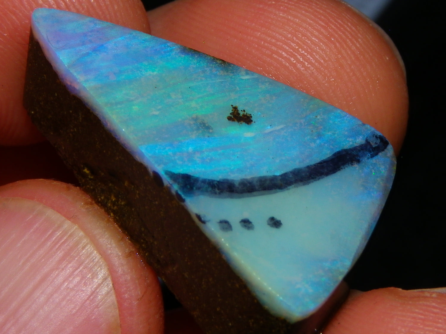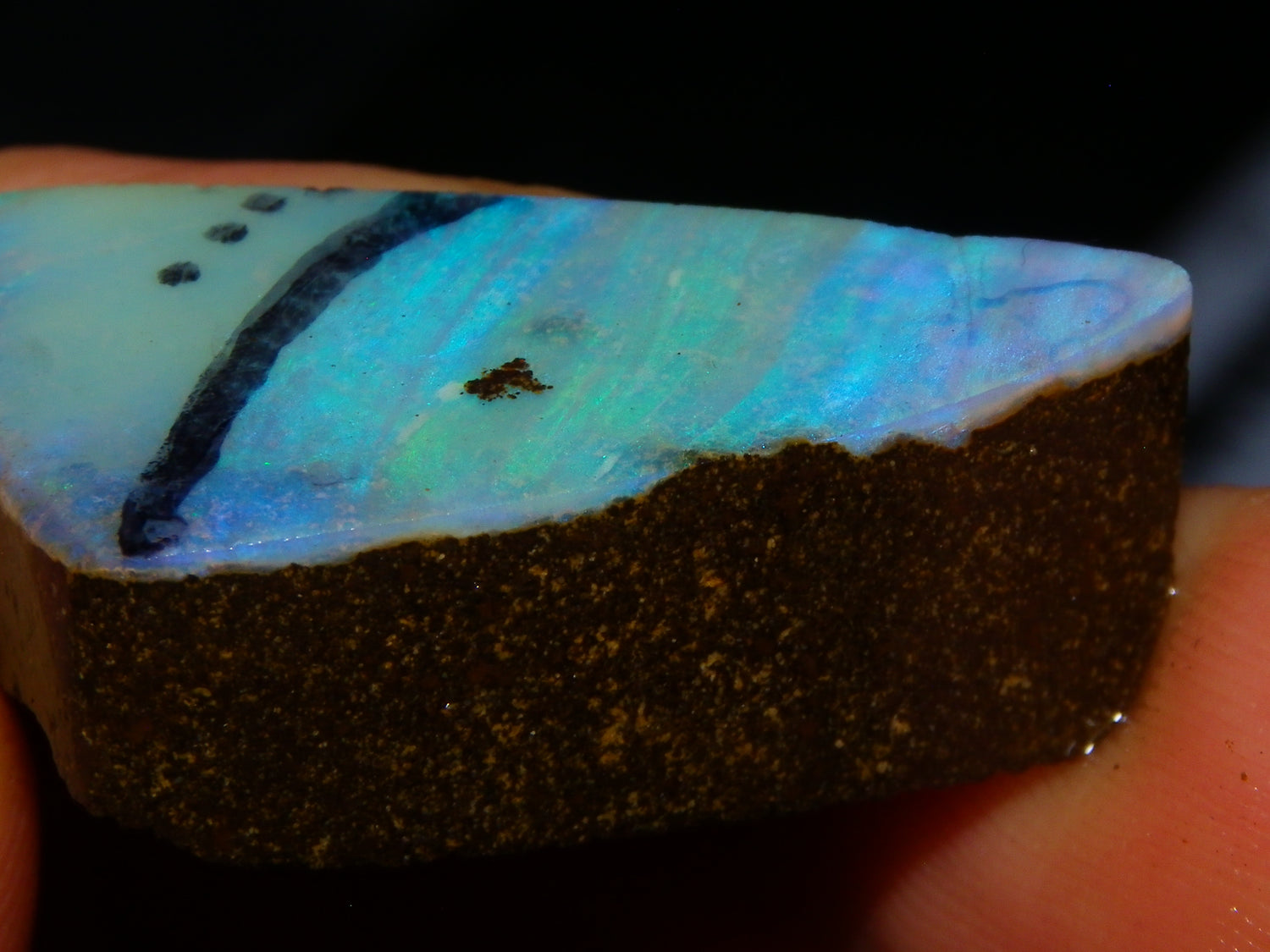 I have for sale a Nice Split Boulder Opal rub parcel. These 2 weigh 90.5cts in total. They are Crystal/Milky Opal with Blues/Greens sat on Ironstones. One has stripy pattern and some potch at one end. The other has brighter fires through the middle section. Pen lines will all come off. Used to mark up for slicing, also finding any surface scratches too. They will clean up and make lovely Pendants or similar. Thanks for looking..