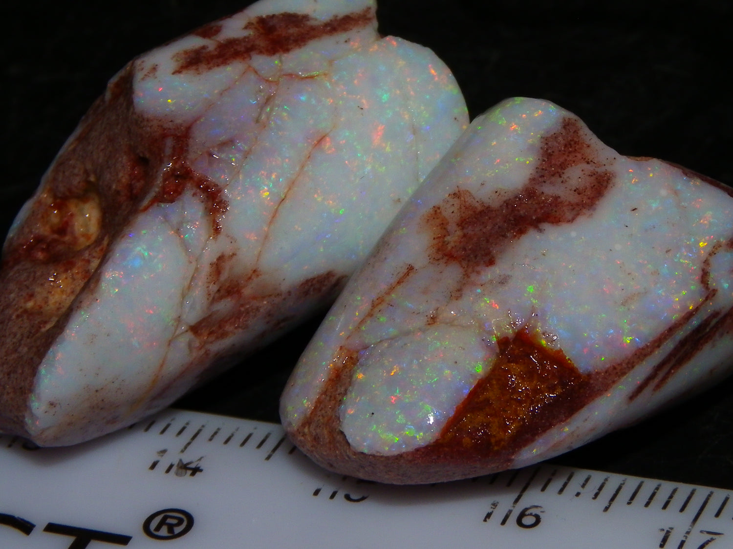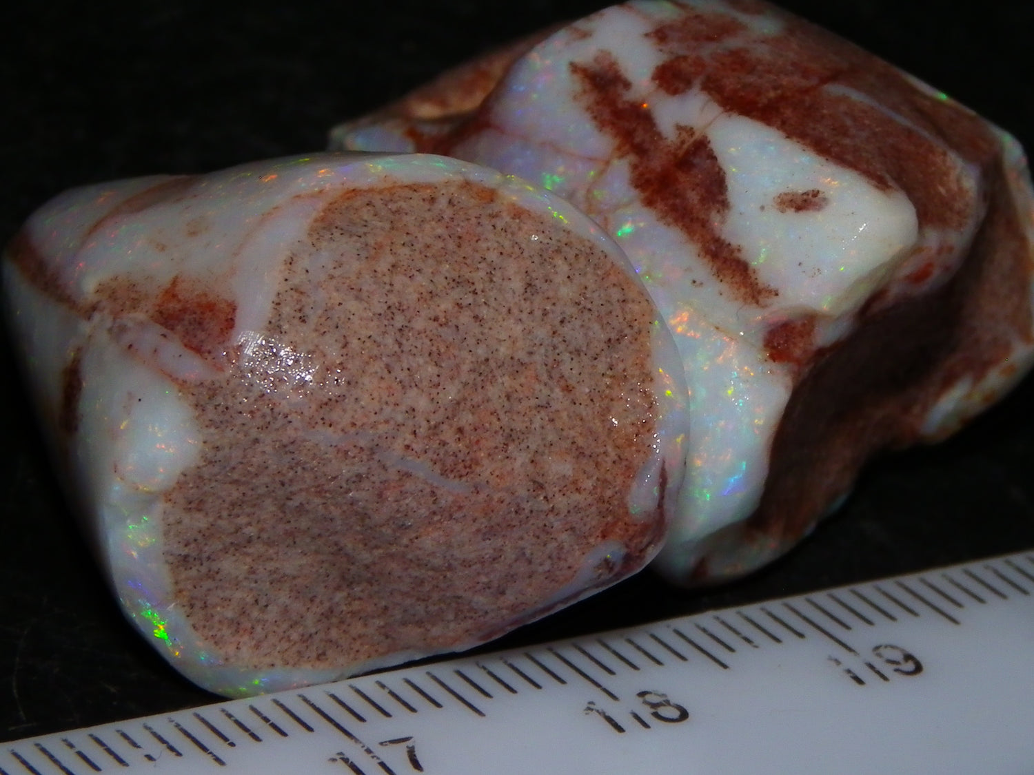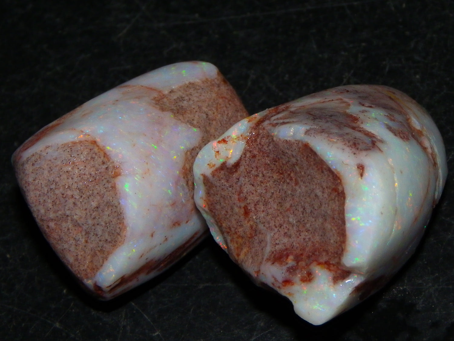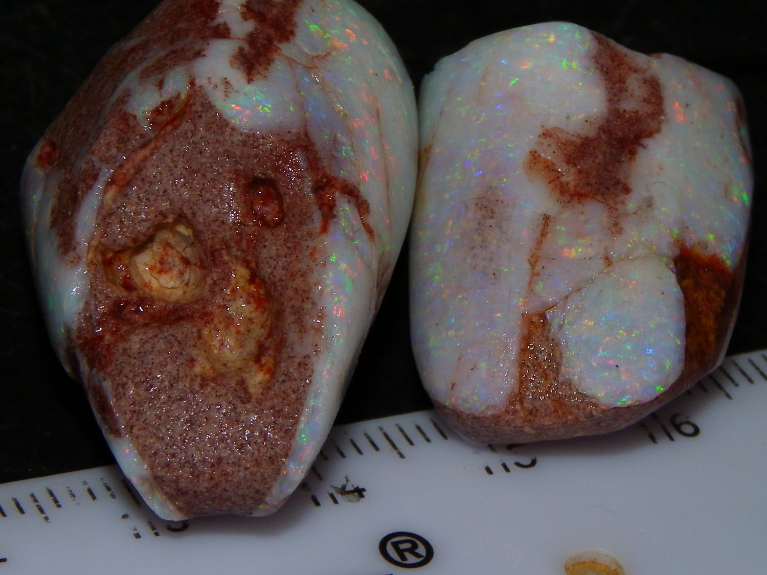 2 Nice Rubbed Coober Pedy Shell Opal Specimens 91cts Multicolour FIres Mussell Shells Australia