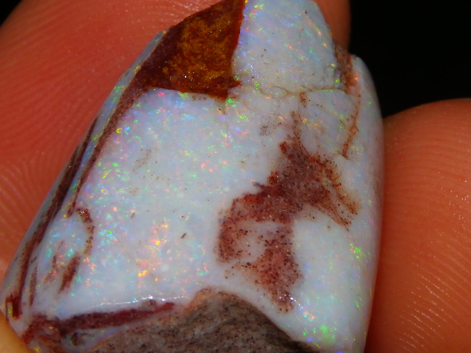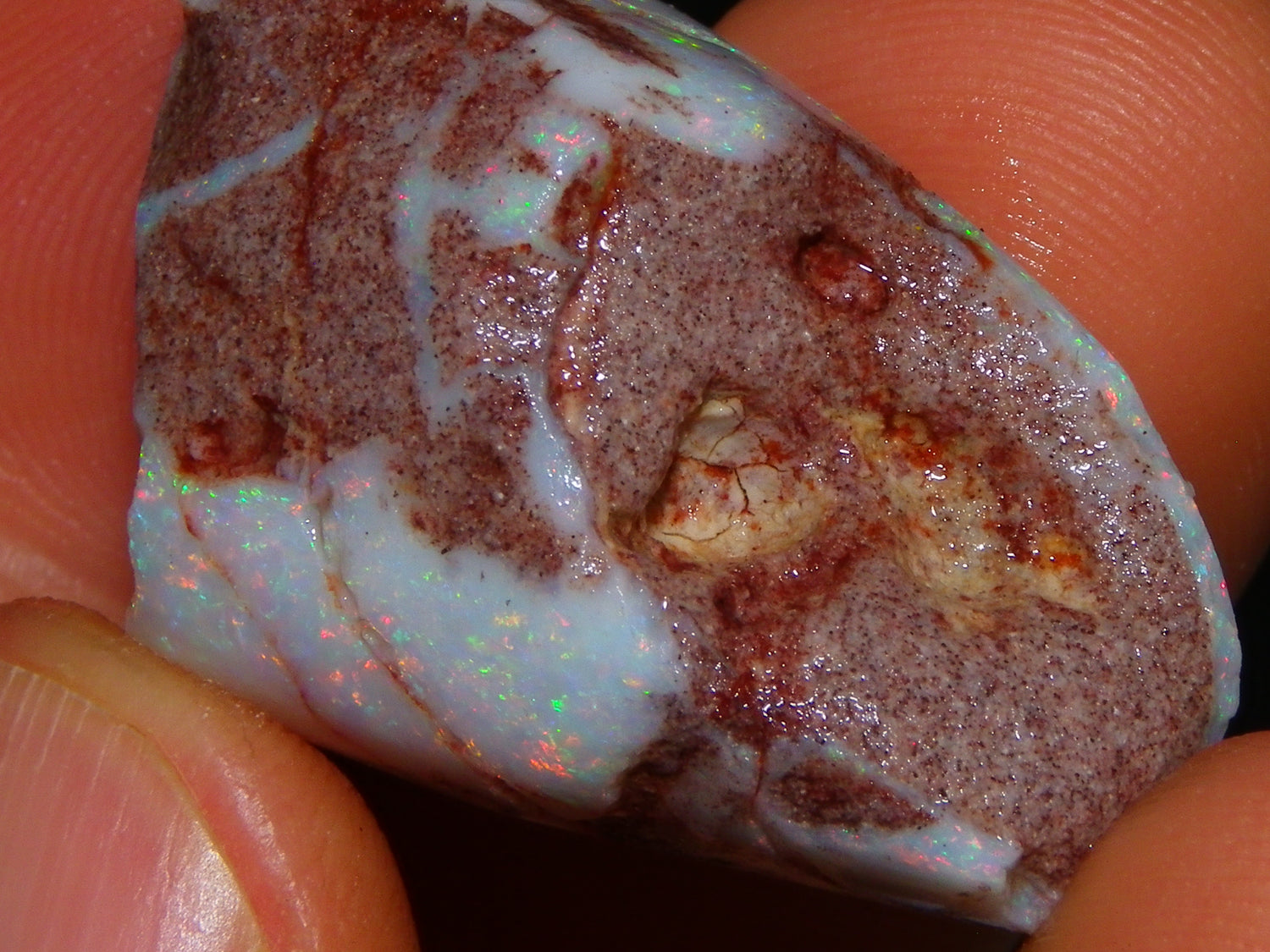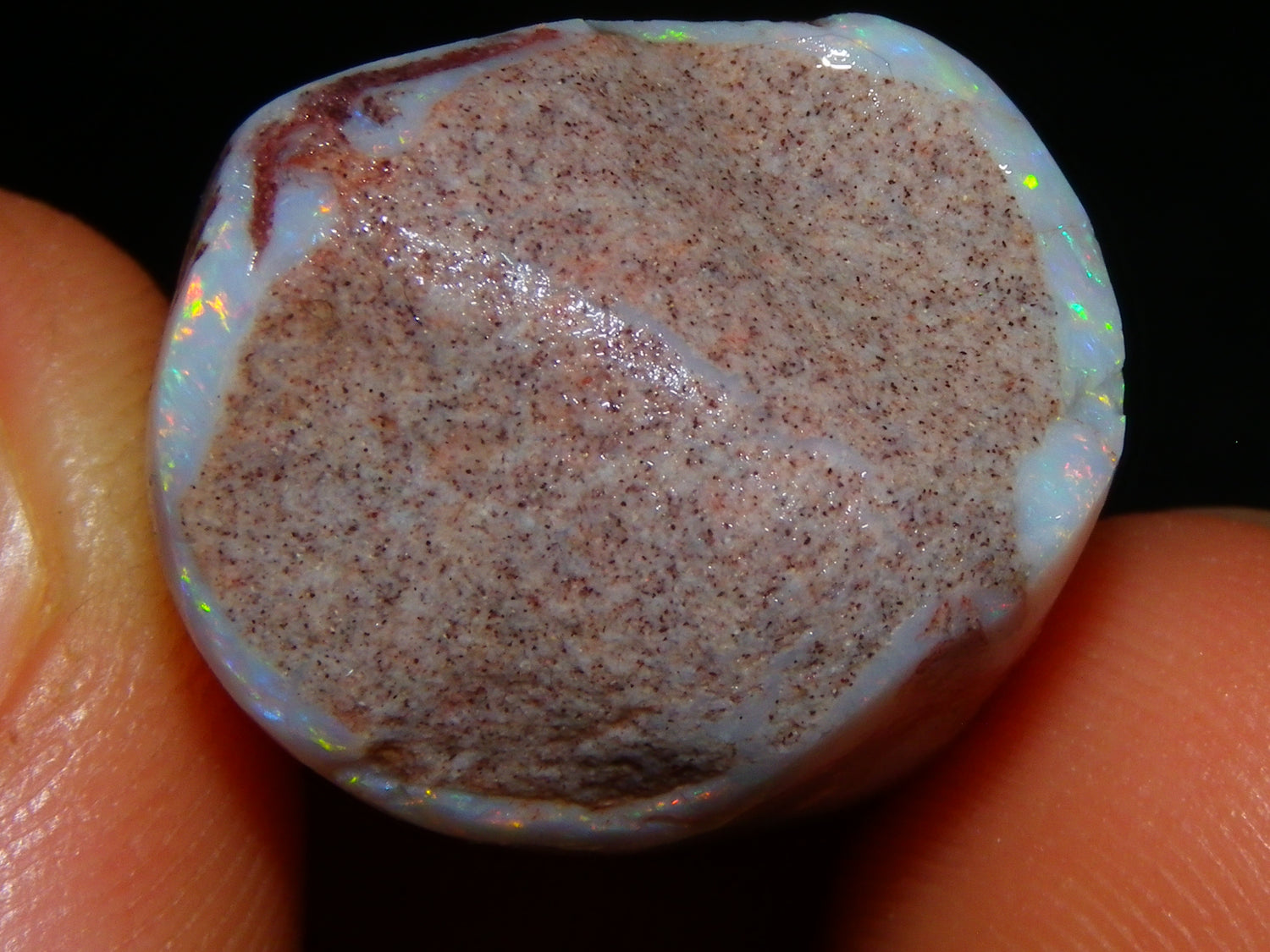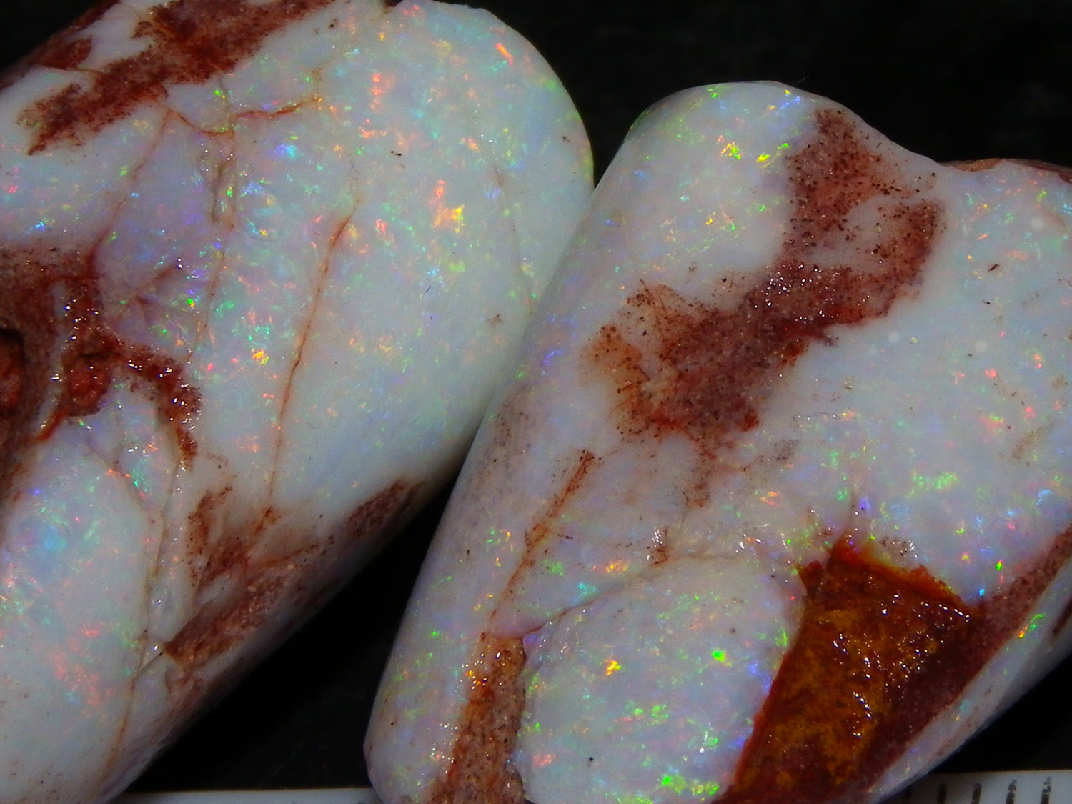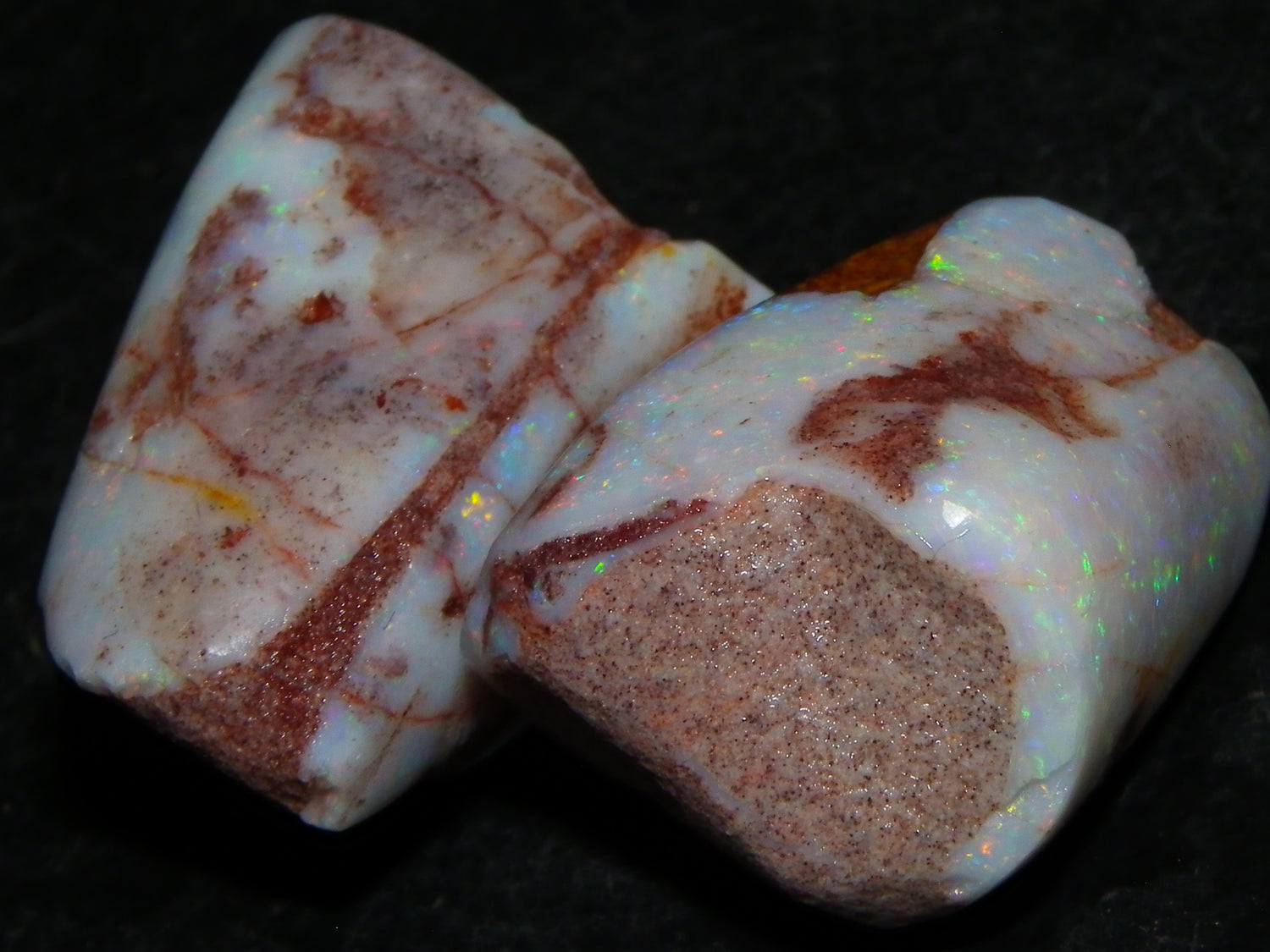 2 Nice Rubbed Coober Pedy Shell Opal Specimens 91cts Multicolour FIres Mussell Shells Australia