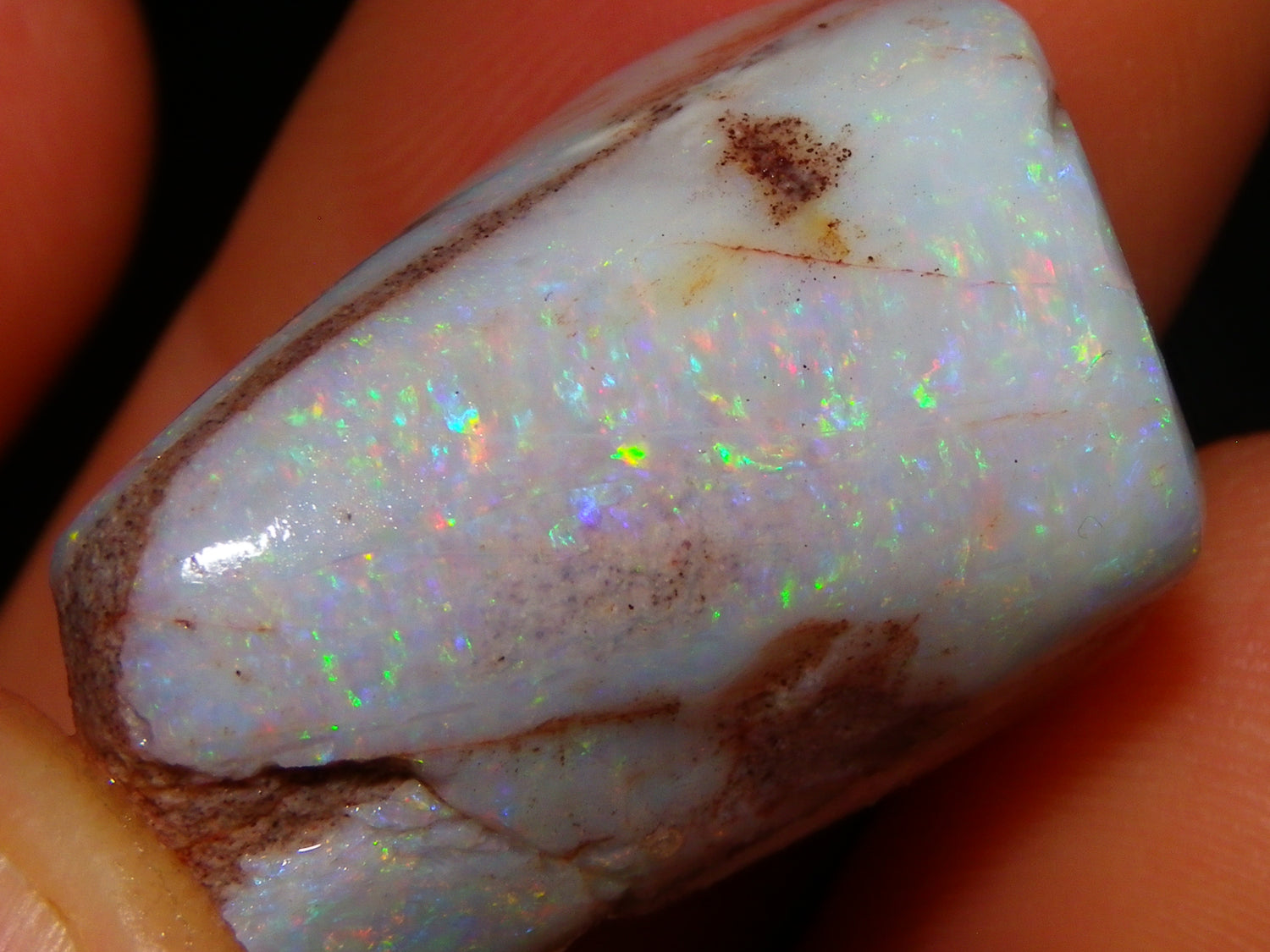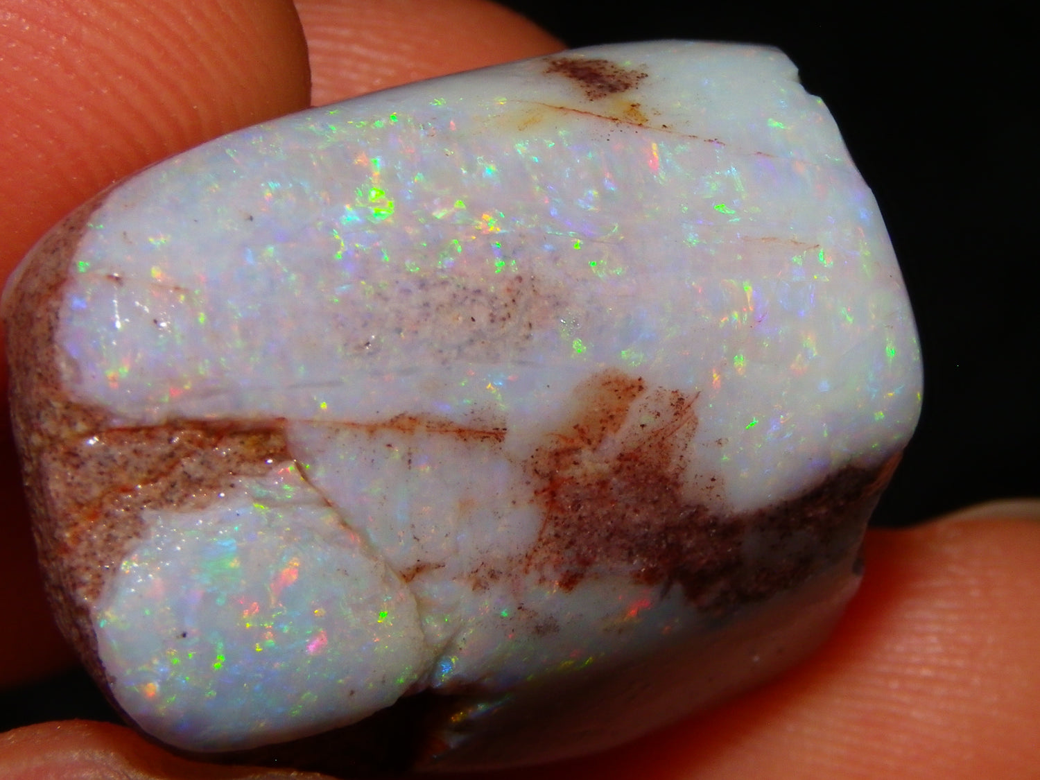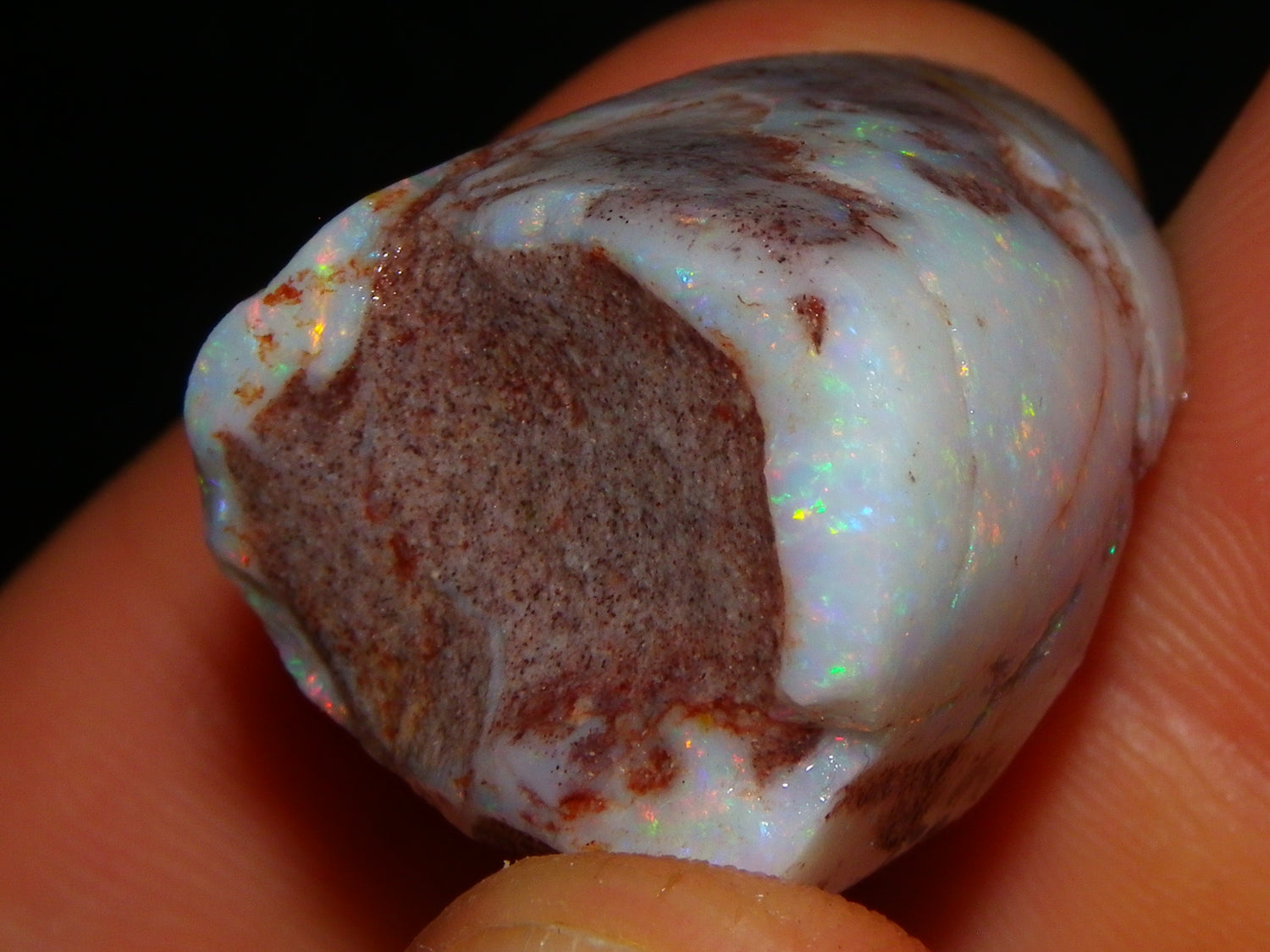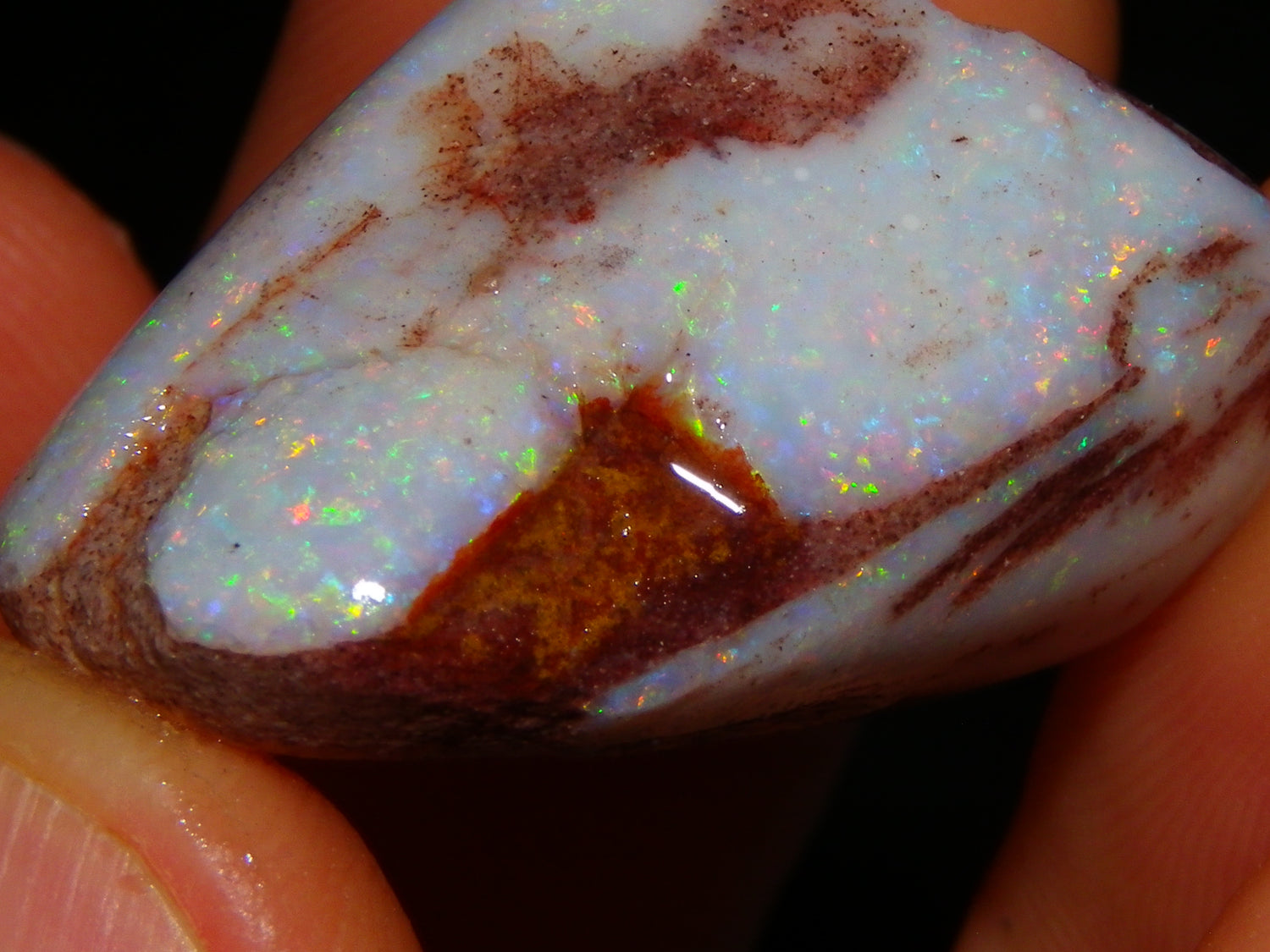 2 Nice Rubbed Coober Pedy Shell Opal Specimens 91cts Multicolour FIres Mussell Shells Australia