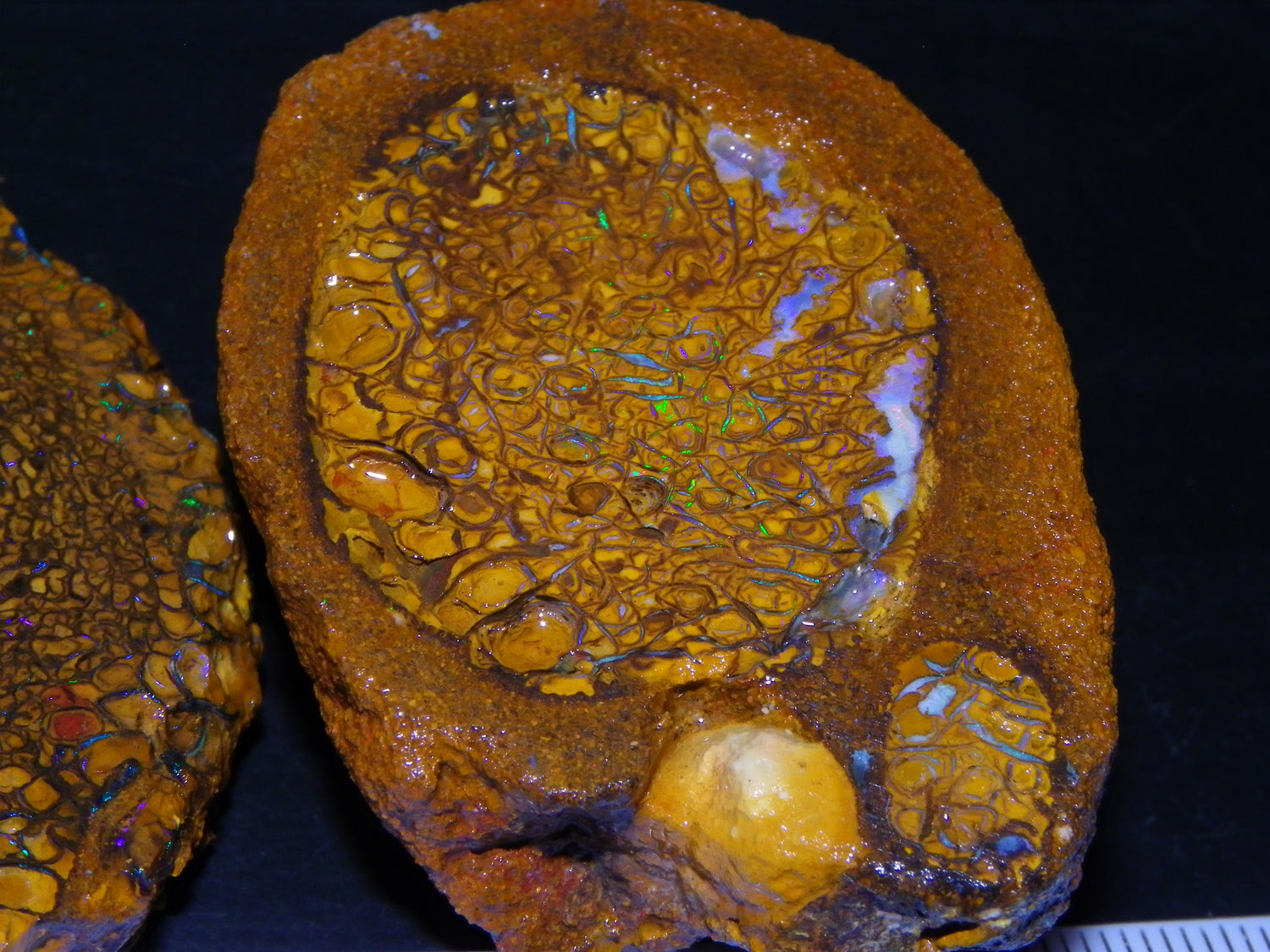2 Nice Sliced/Rough Koroit opals 437.8cts Queensland Australia Nuts/Pattern/Fires