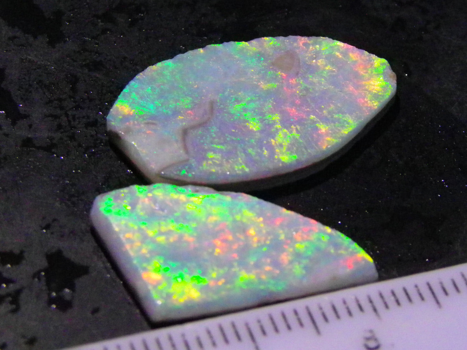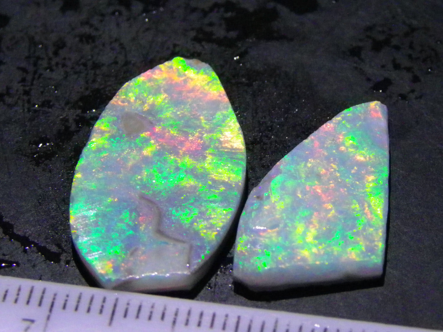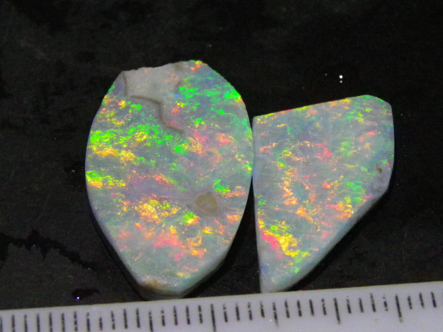 2 Super Bright Mintabie Seam Opal Rubs/Rough 11.12cts Australia Red/Orange/Green Fires