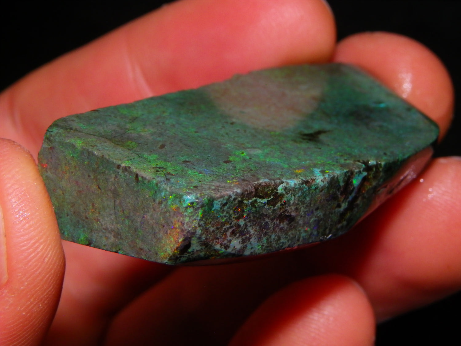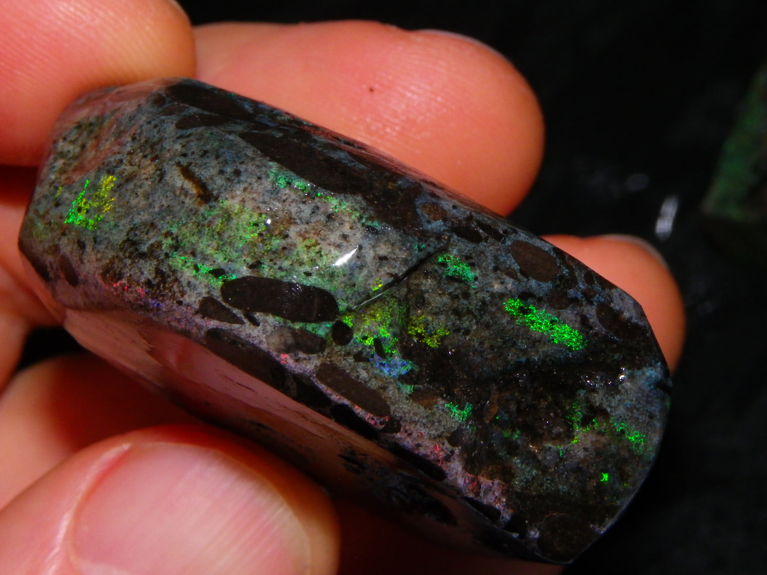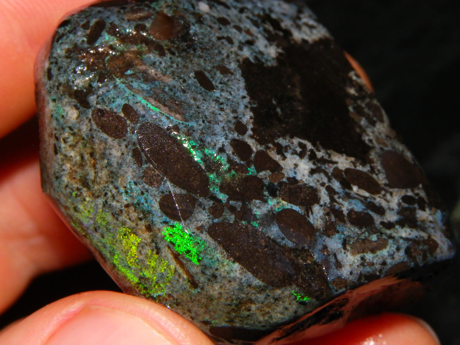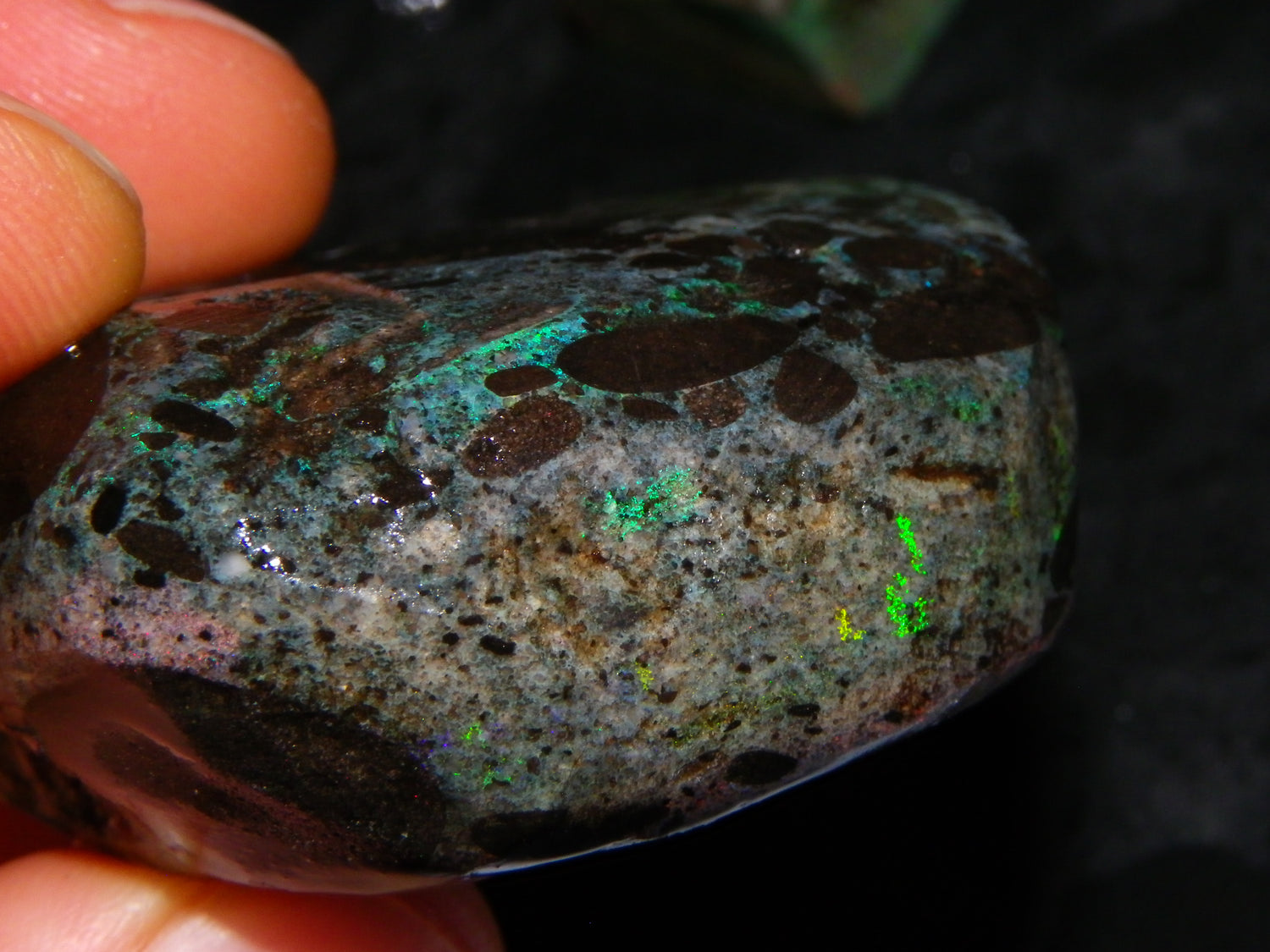 I have for sale 2 Treated/Rubbed/Rough Opals from Andamooka, South Australia. These weigh 417cts in total. They are Concrete/Matrix, Lightly Treated to show some colours. One has Very Fine Green Pinfire throughout. The other has a Brighter Green/Golish Bars through the middle and a Pink/Red section in the top. Also more Black Inclusions aswell. Great Specimens, may clean up Cabs/Freeforms in the right hands,..,. Thanks for looking,.,.