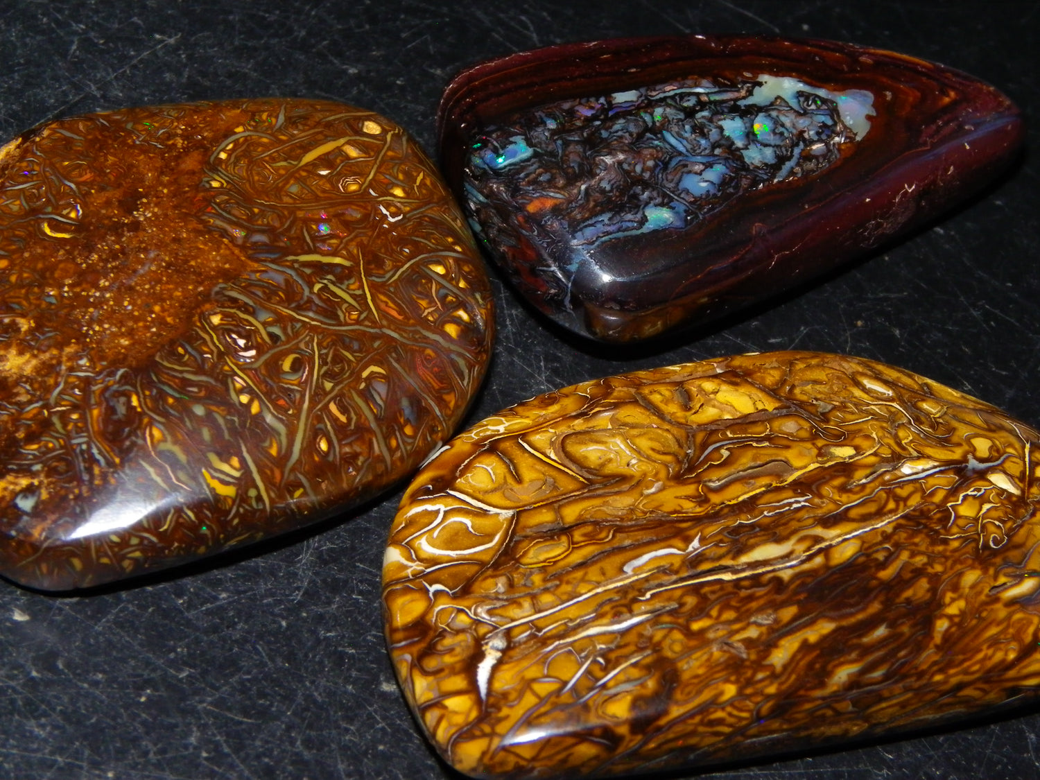 3 Nice Cut/Polished Koroit Opals 263cts Patterns/Some Fires Queensland Australia