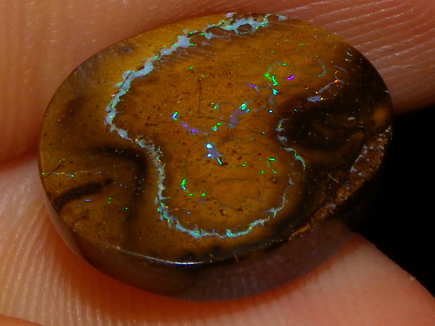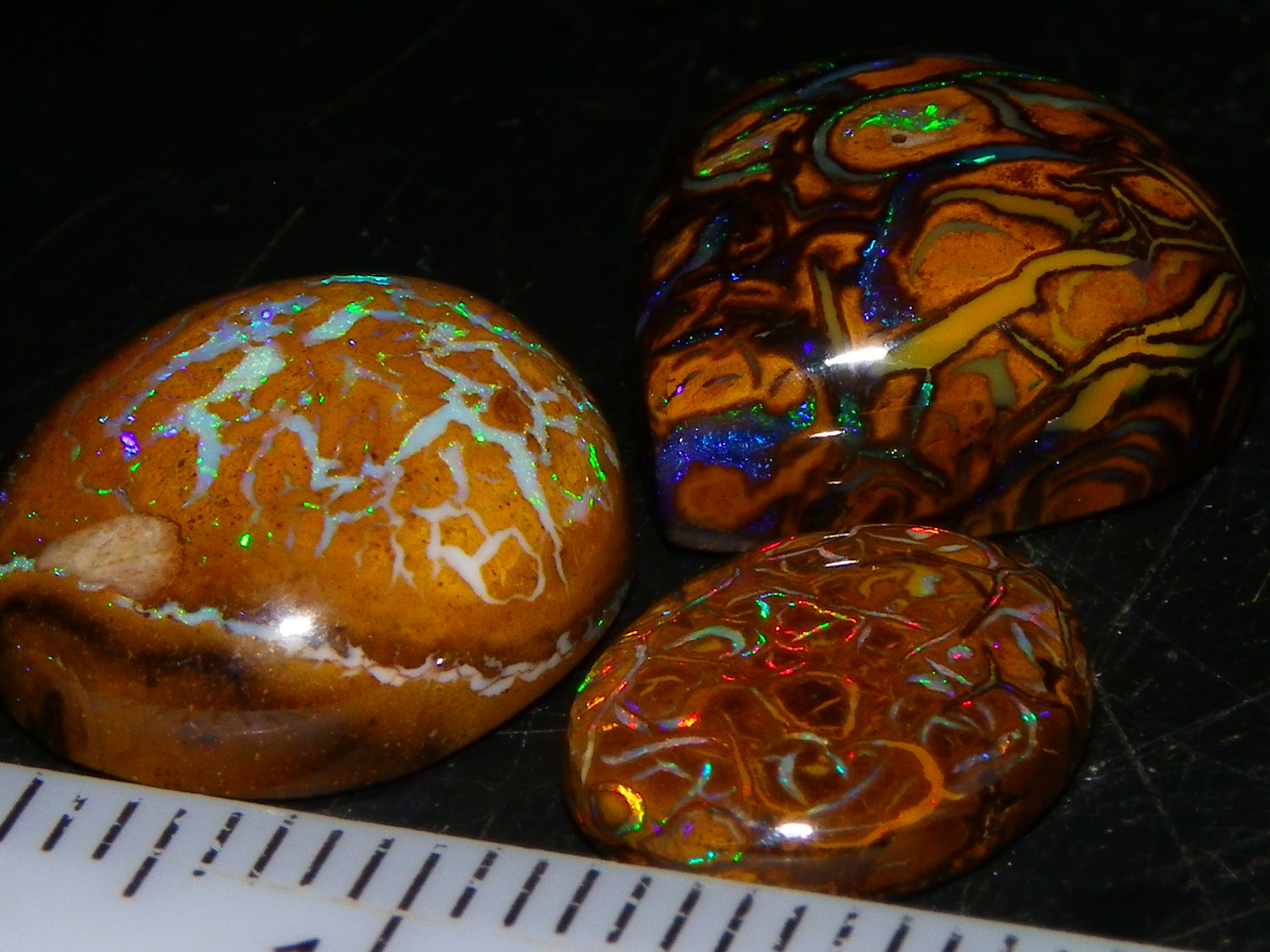 I have for sale 3 Nice Koroit/Yowah Opals from Queensland Australia. These weigh 17.5cts in total. They are all Ironstone Nuts, 2 from Koroit, NIce High dome Blue/Green Veins, and the flatter Oval with Multicolour Red/Blue/Gold/Greens all through it. The last is a Yowah Nut, Blue/Green Pinfires in White/Milky Opal. All 3 will make Great ring stones or similar. Great Fires to look at and work with. Thanks for looking.