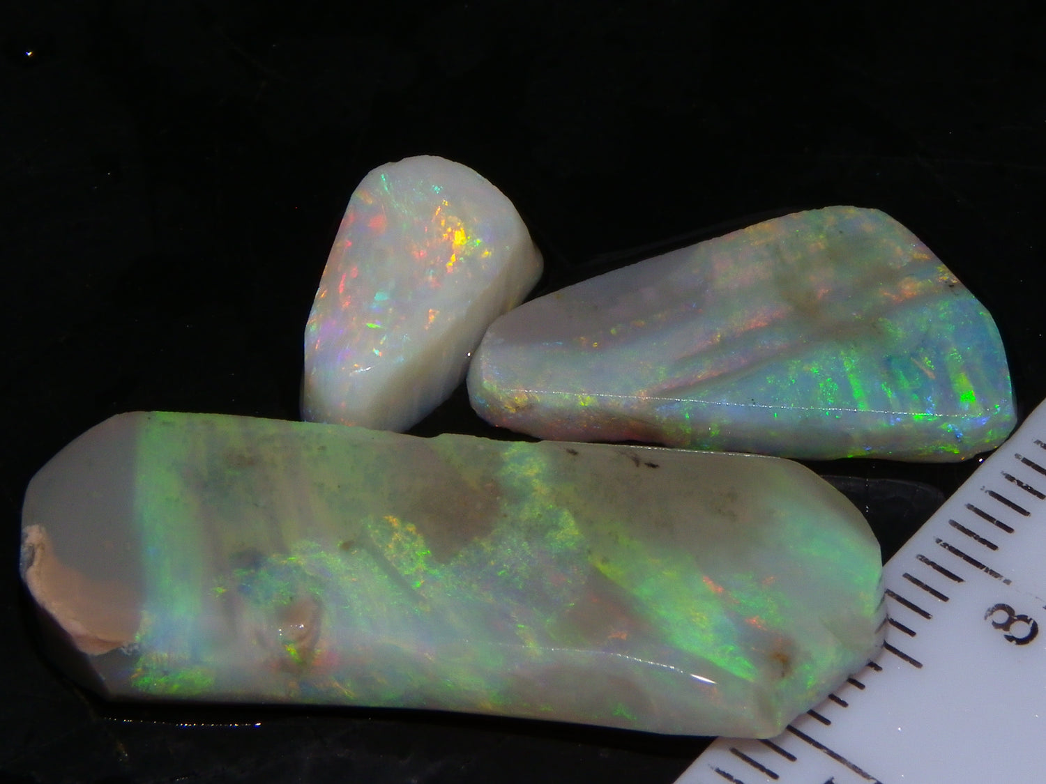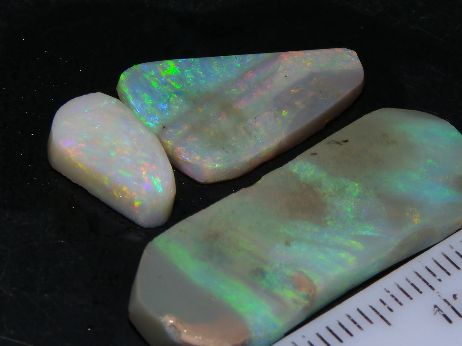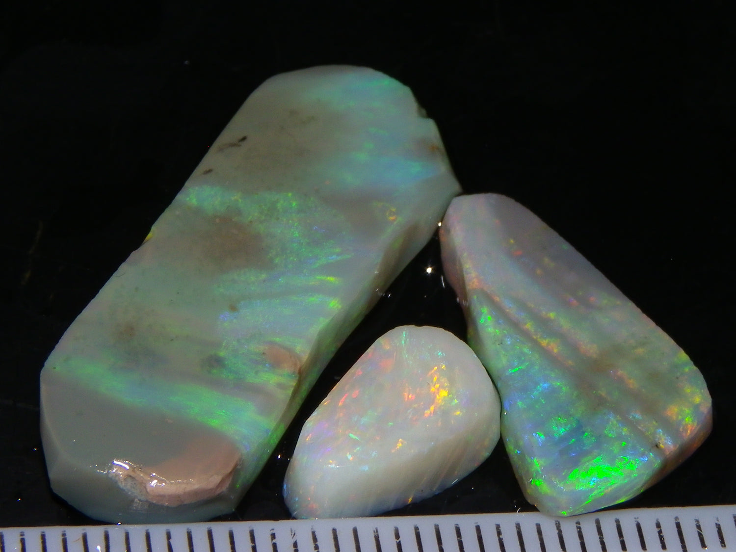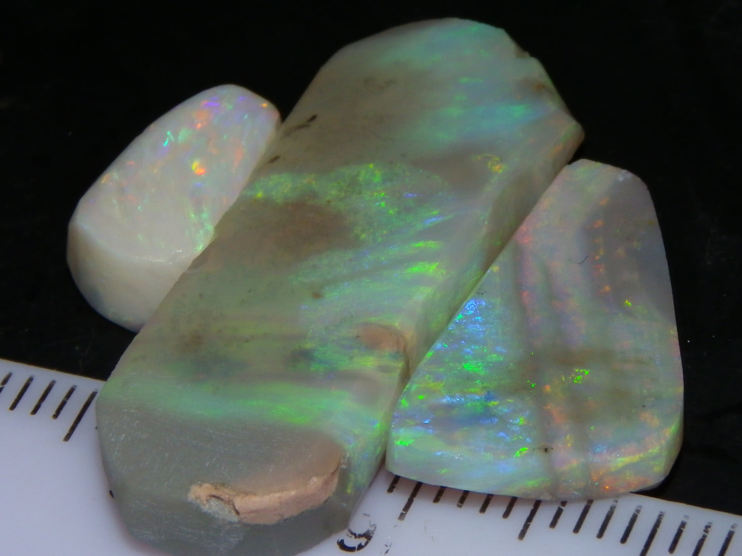 3 Nice Lightning Ridge Opal Rubs/Rough Preforms 19.1cts Green/Gold/Red Fires Australia