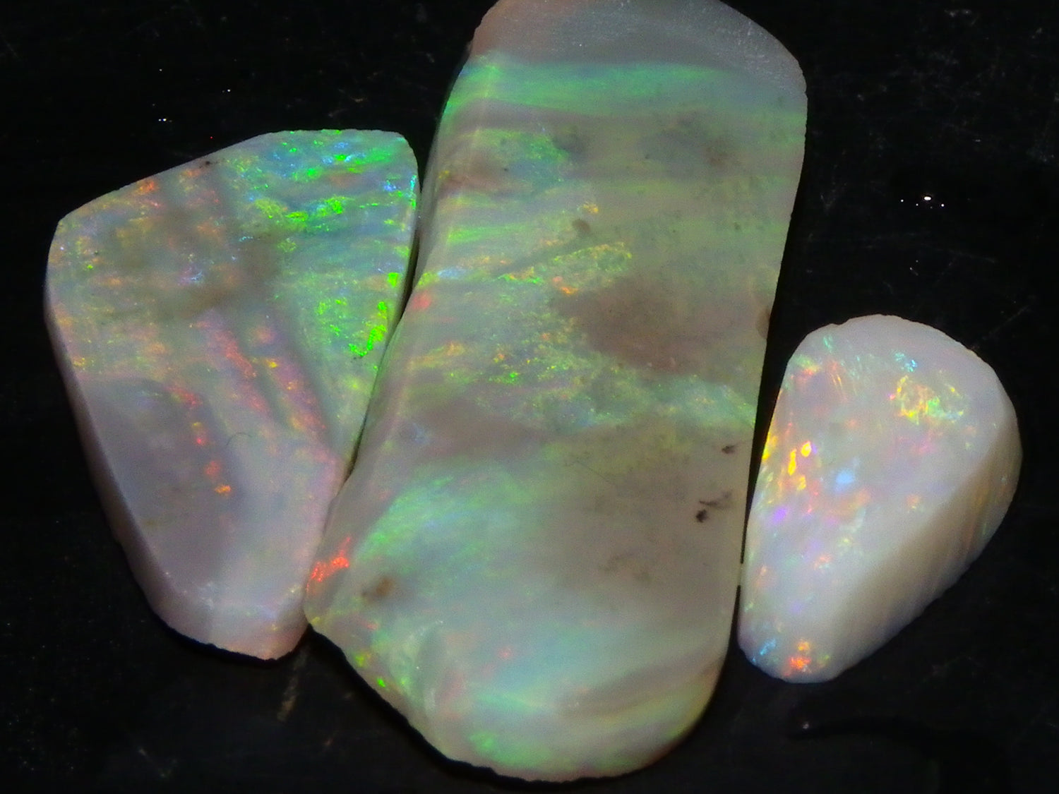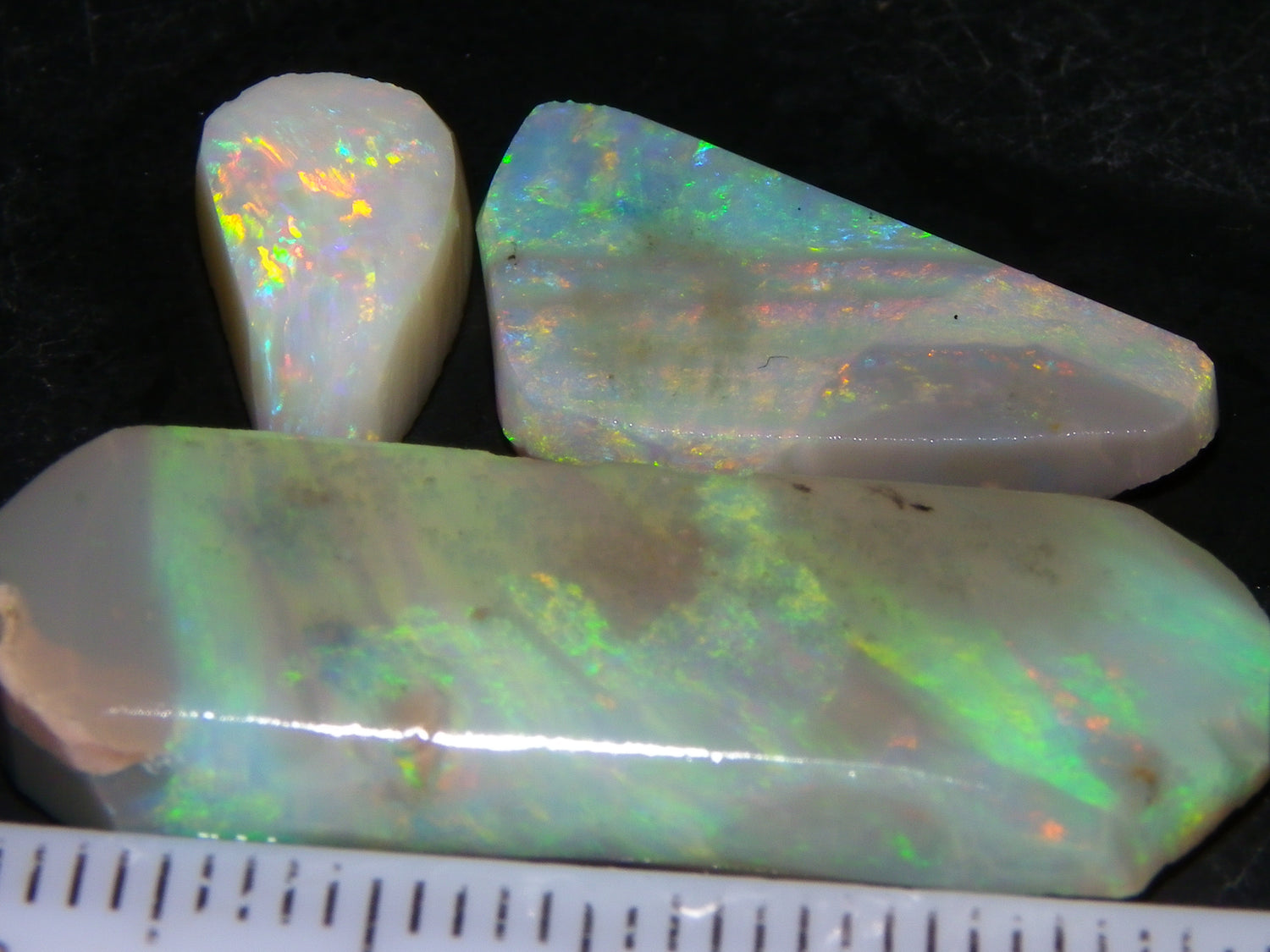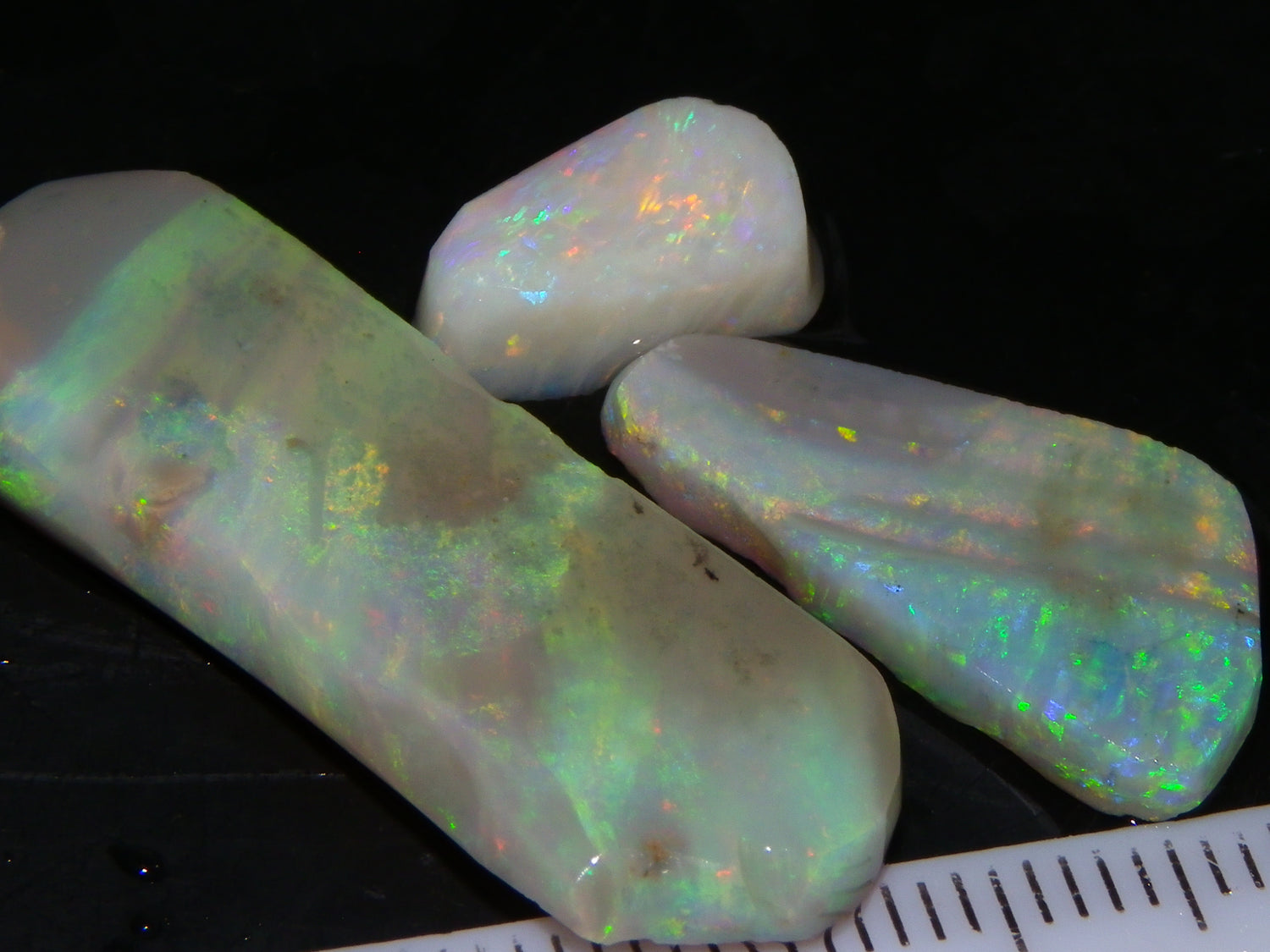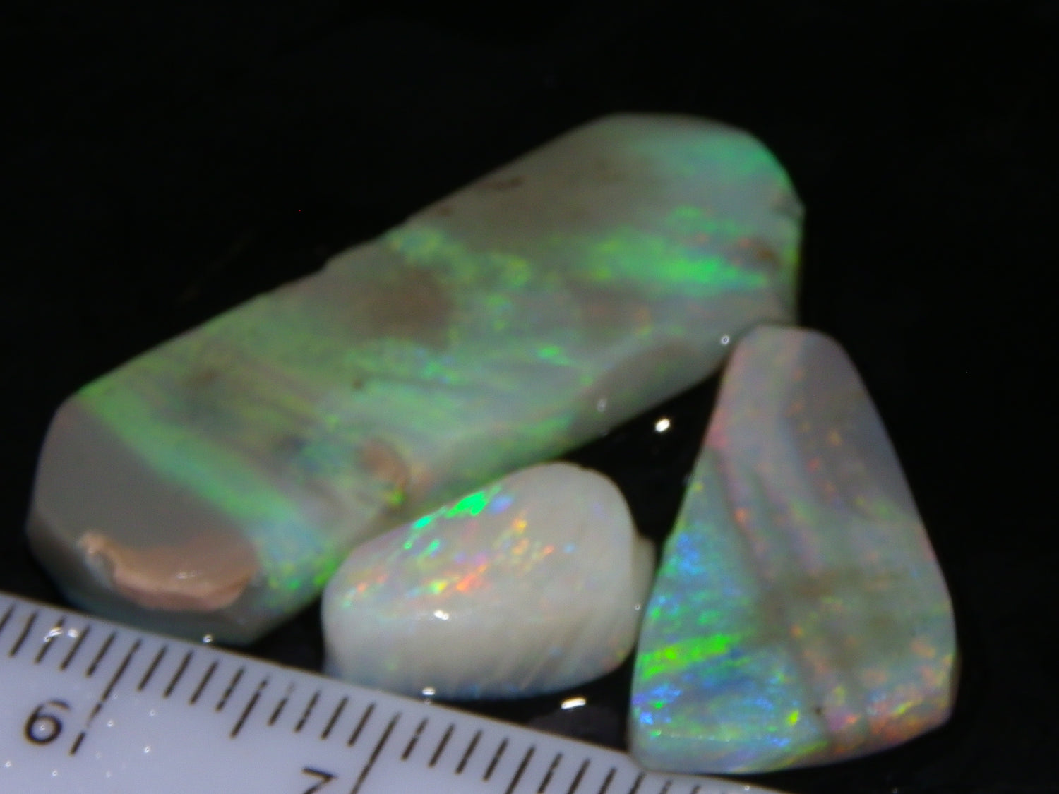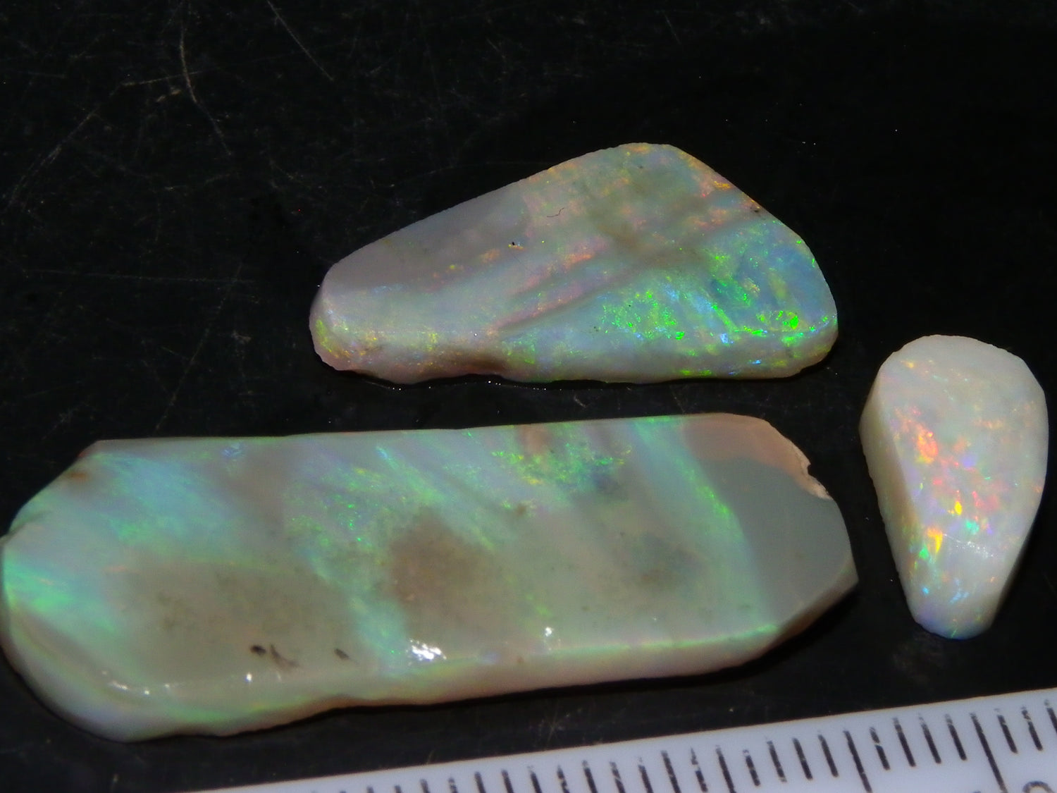 3 Nice Lightning Ridge Opal Rubs/Rough Preforms 19.1cts Green/Gold/Red Fires Australia