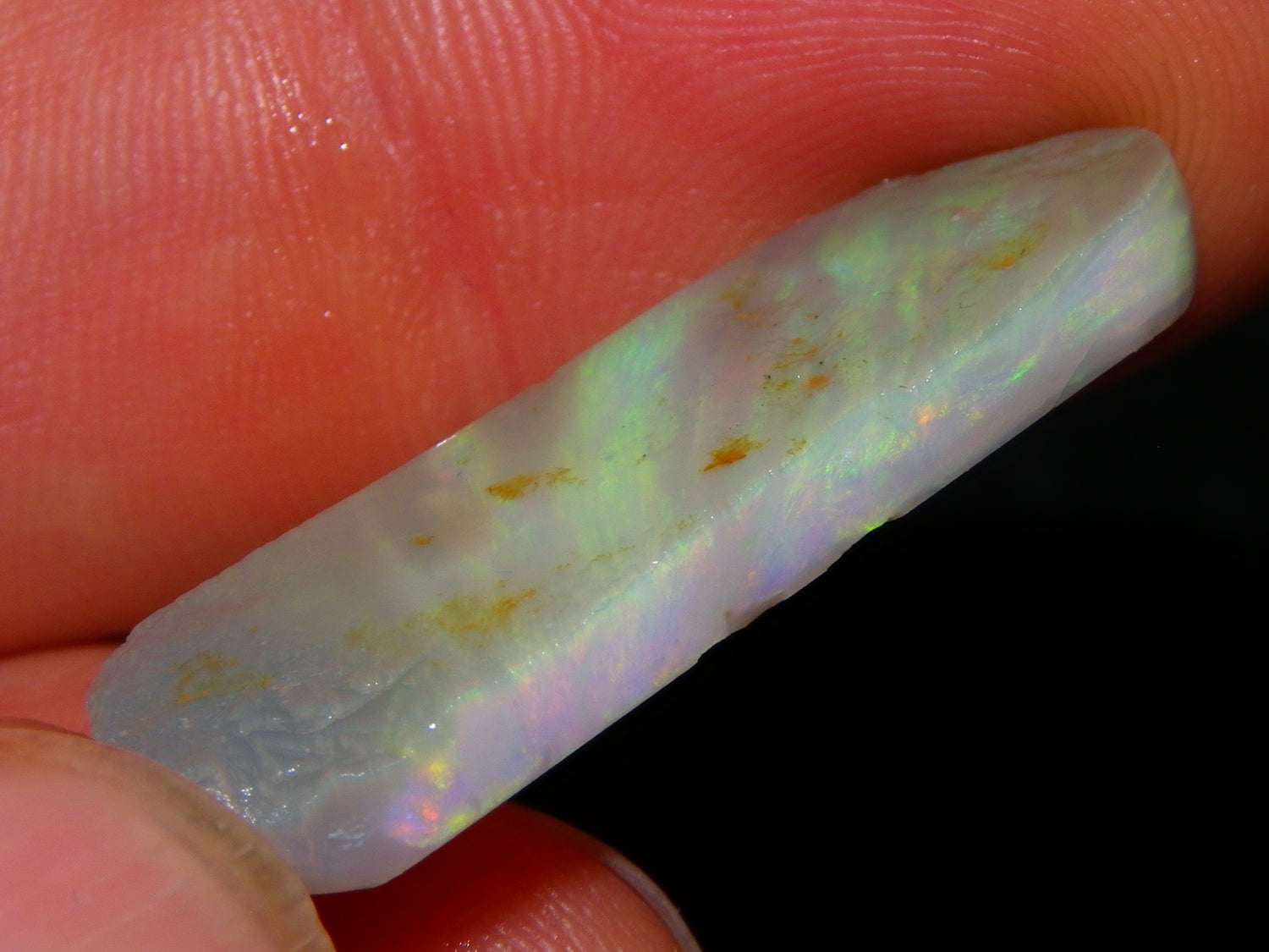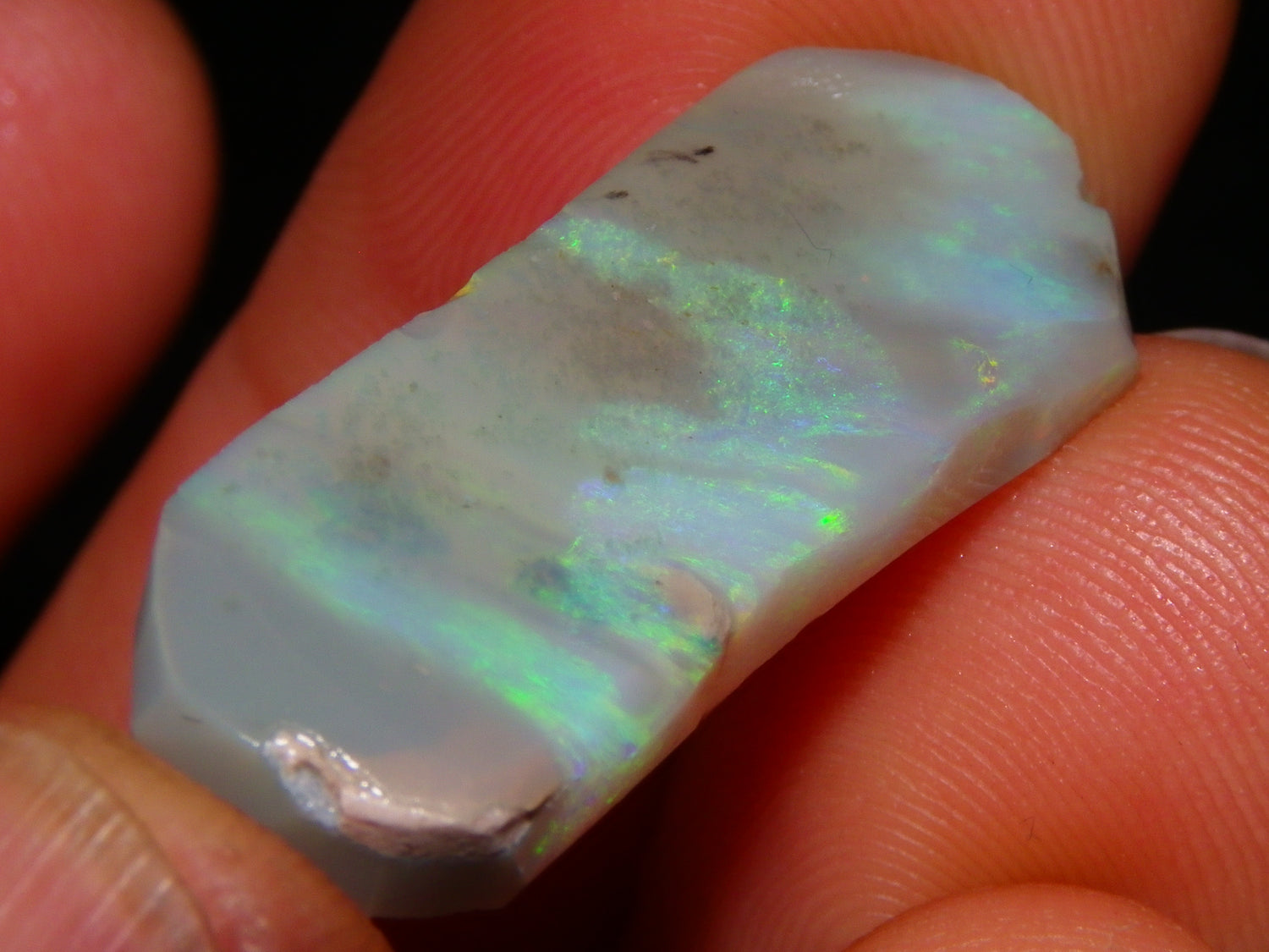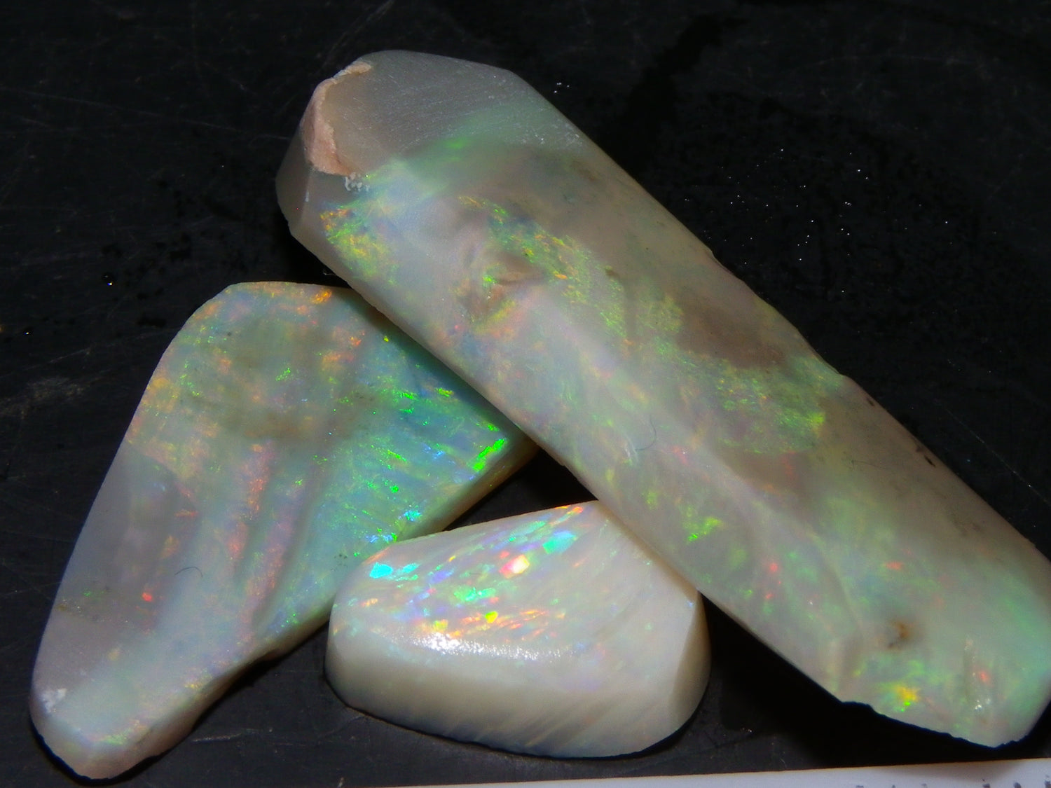 I have for sale 3 Nice Lightning Ridge Opal Rough Preforms/Rubs, these weigh 19.1cts in total. There is 2 Crystal/Grey Base pieces and 1 Light Base. Largest has some very Nice Mist/Feather Fires all through the stone,. It does have some Grey Potch to remove off the faces, But will cut a great cab once done.,. Next is similar Seam Material, Crystal with Bars through Red/Green/Blues, slight Grey potch. Last is a rubbed out bar in a small White base stone.,,. Great lot. Make some Nice Jewelery once cleaned up,.,. Thanks for looking,...,