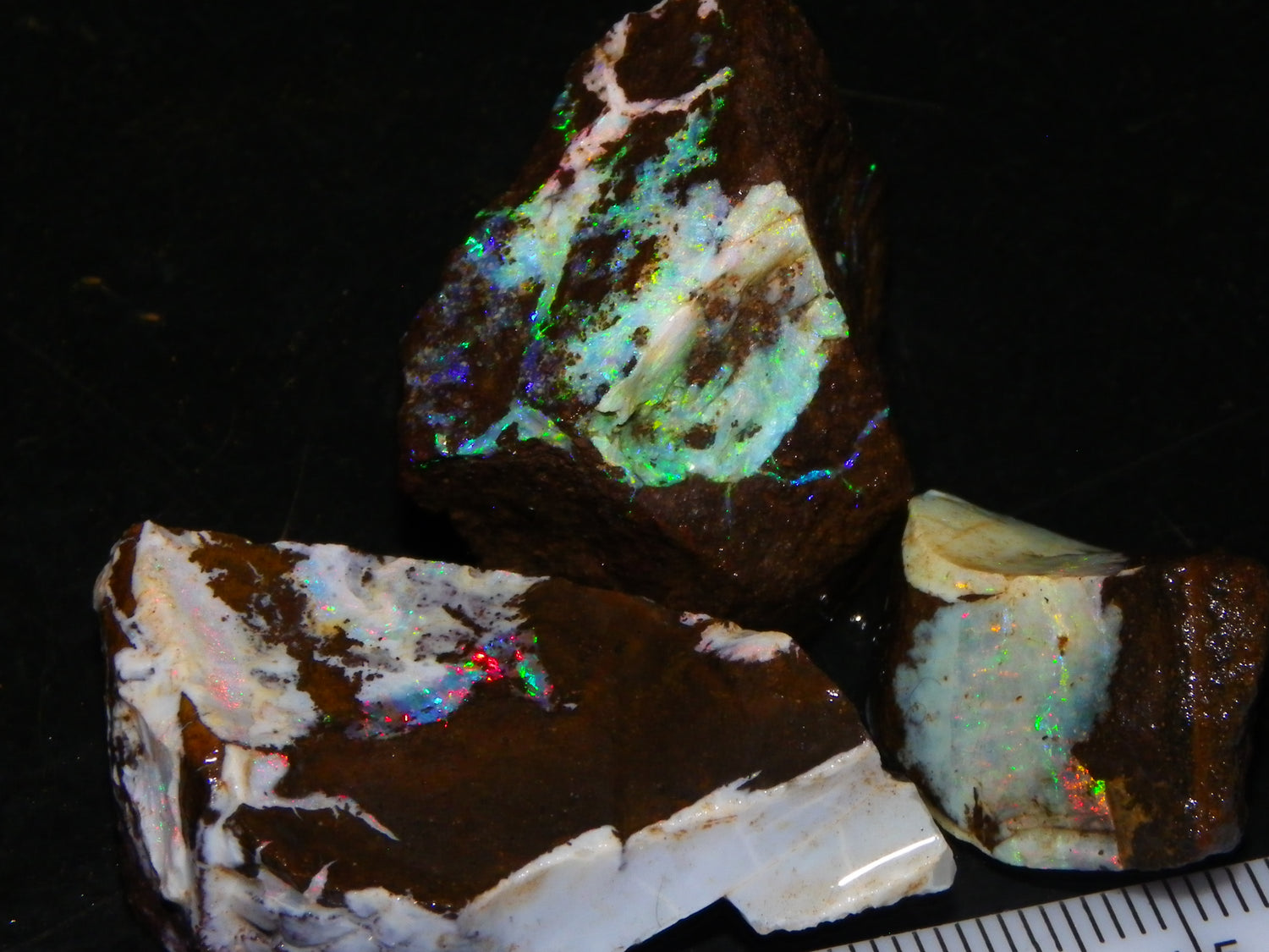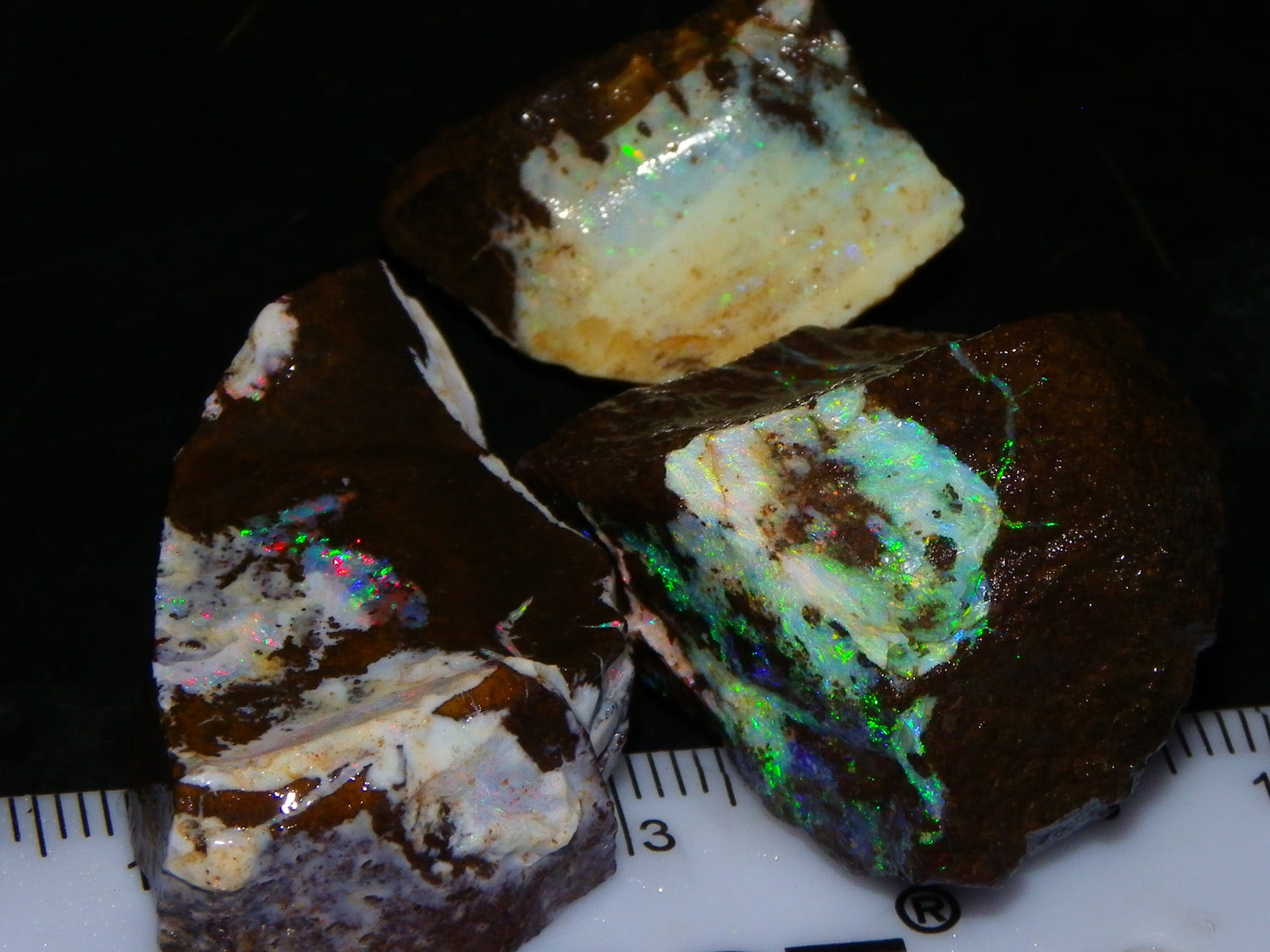 3 Nice Rough Boulder Opals 216.5cts Queensland Australia Red/Green/Blue Fires