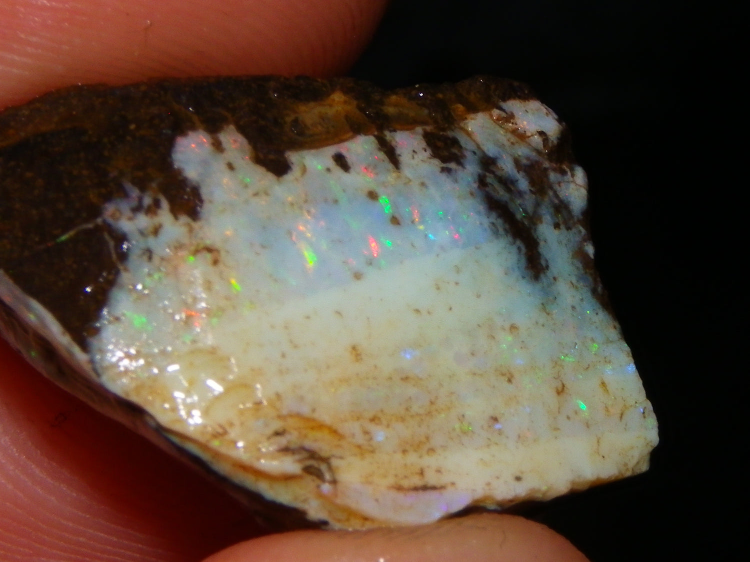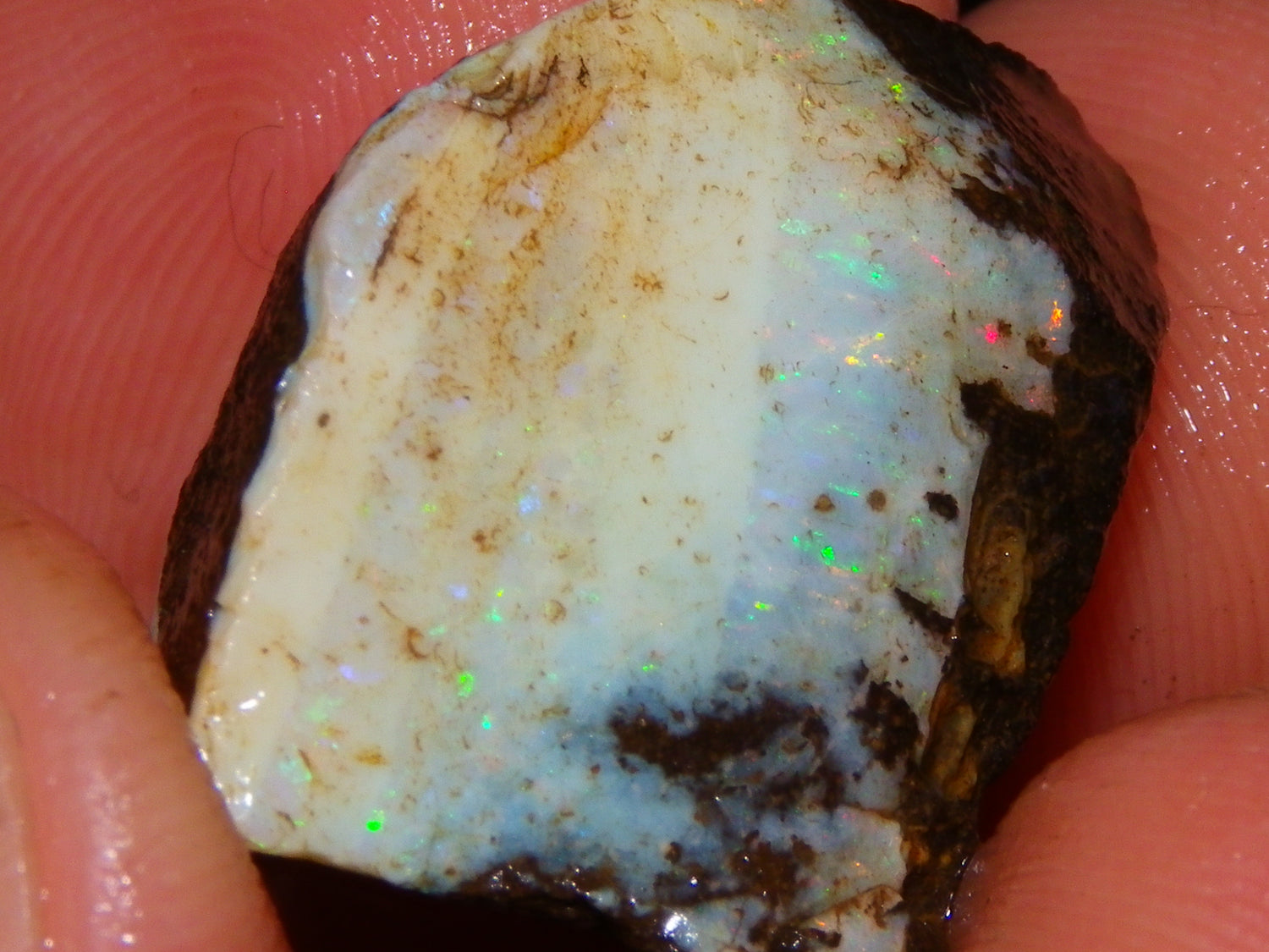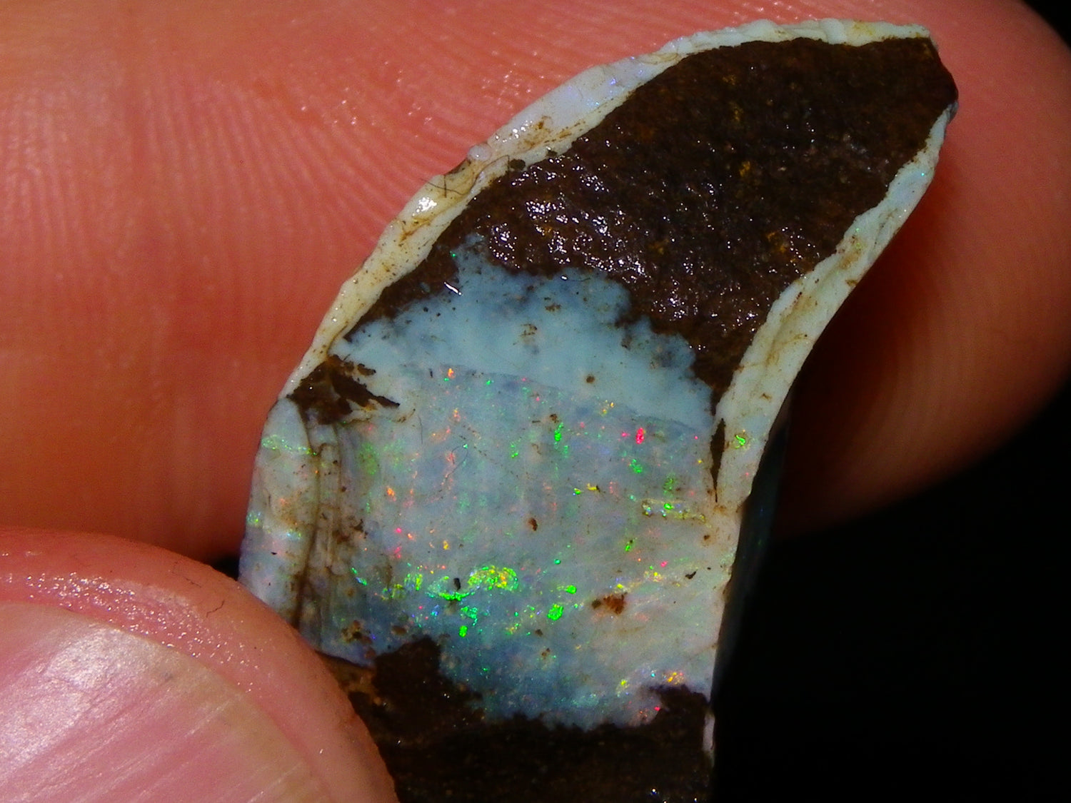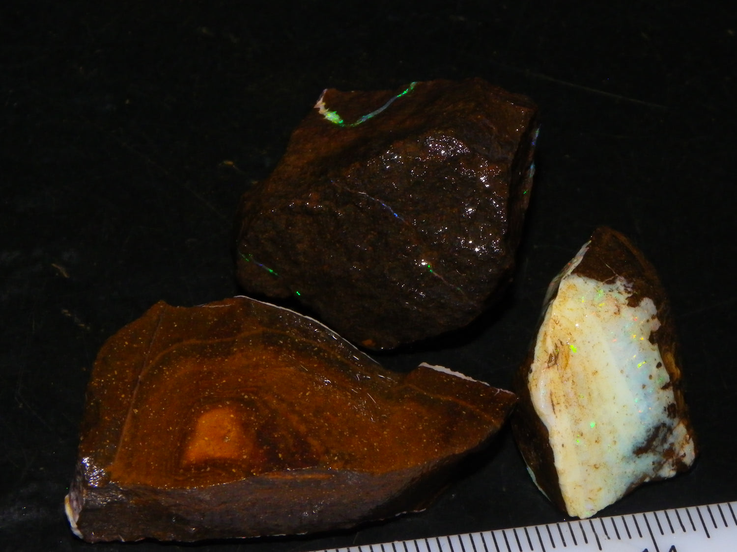 I have for sale 3 nice pieces of Rough/Sliced Boulder Opals, Split type material. These weigh 216.5cts in total. Dark ironstone with Light/White and Crystal Opal on some faces. The smallest has Opal on 3 faces, some nice colour. Then lots of Green, some veins dipping into the host. Last has some bright reds in the middle, specimen piece. Should clean up and get some Cabs/Freeforms from them. Thanks for looking.