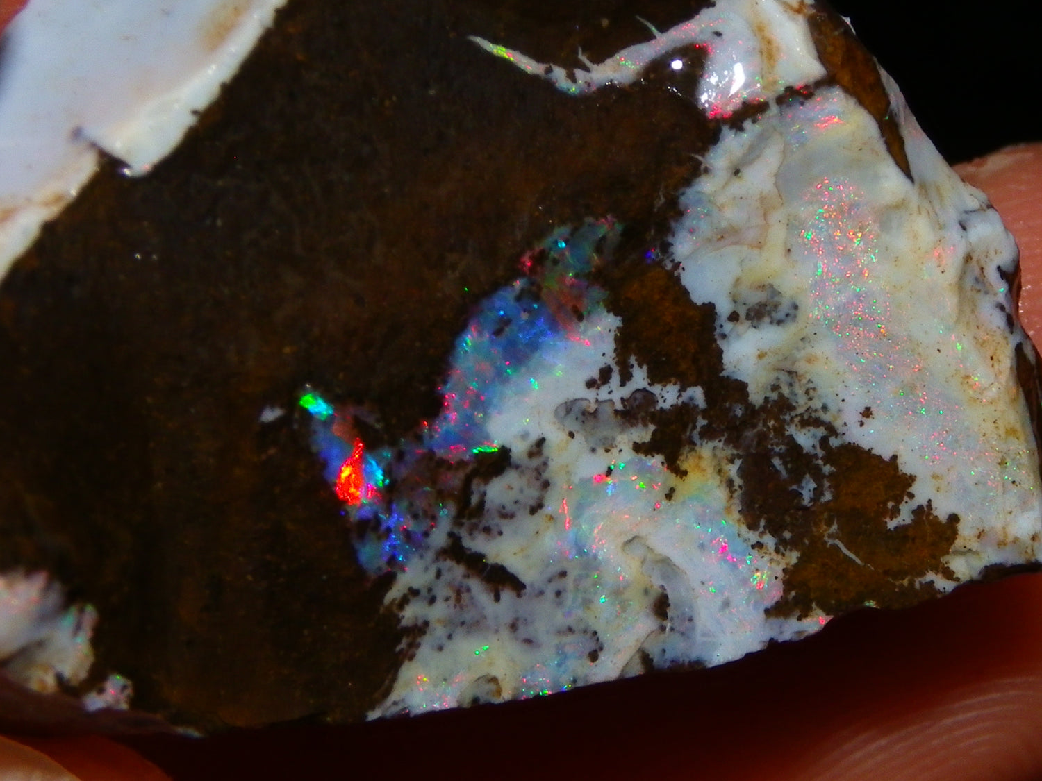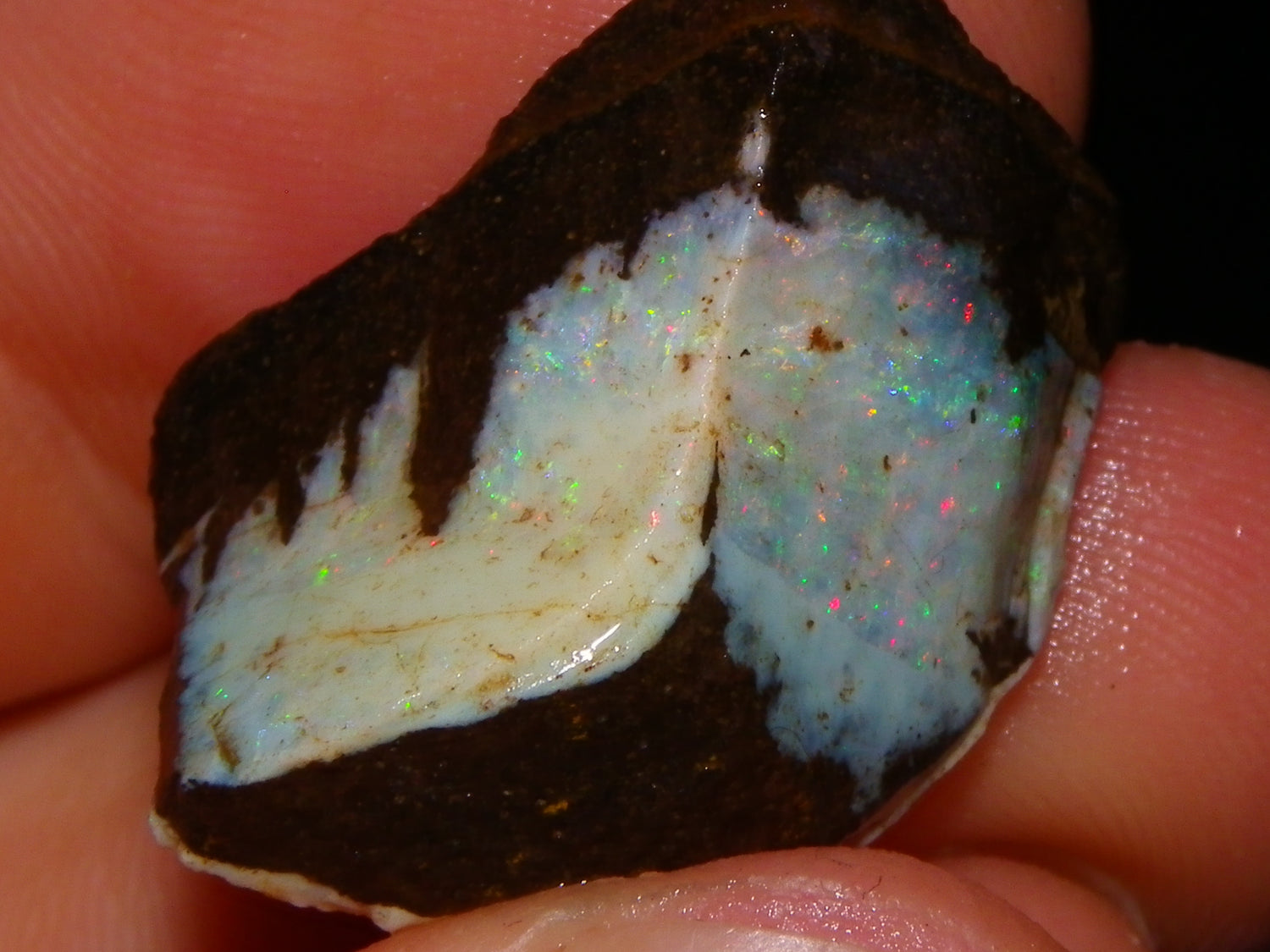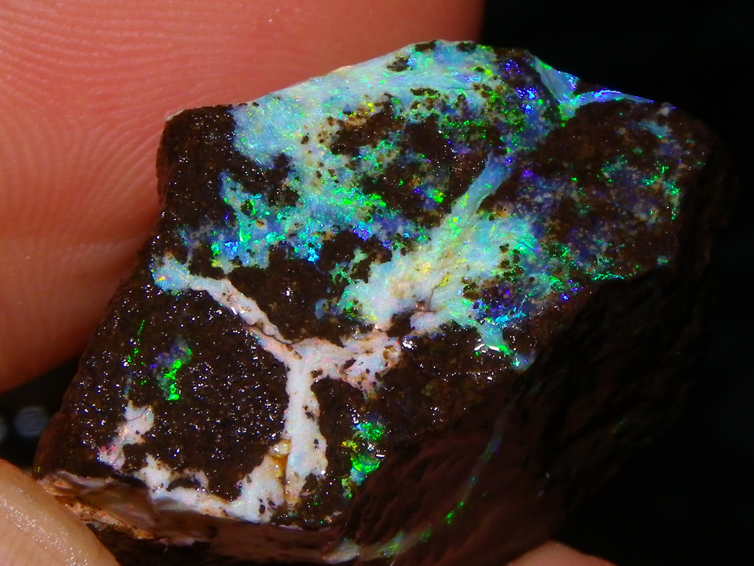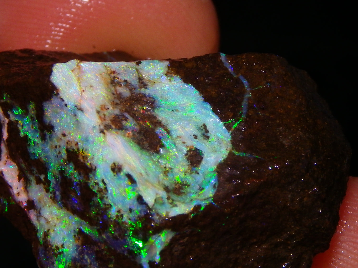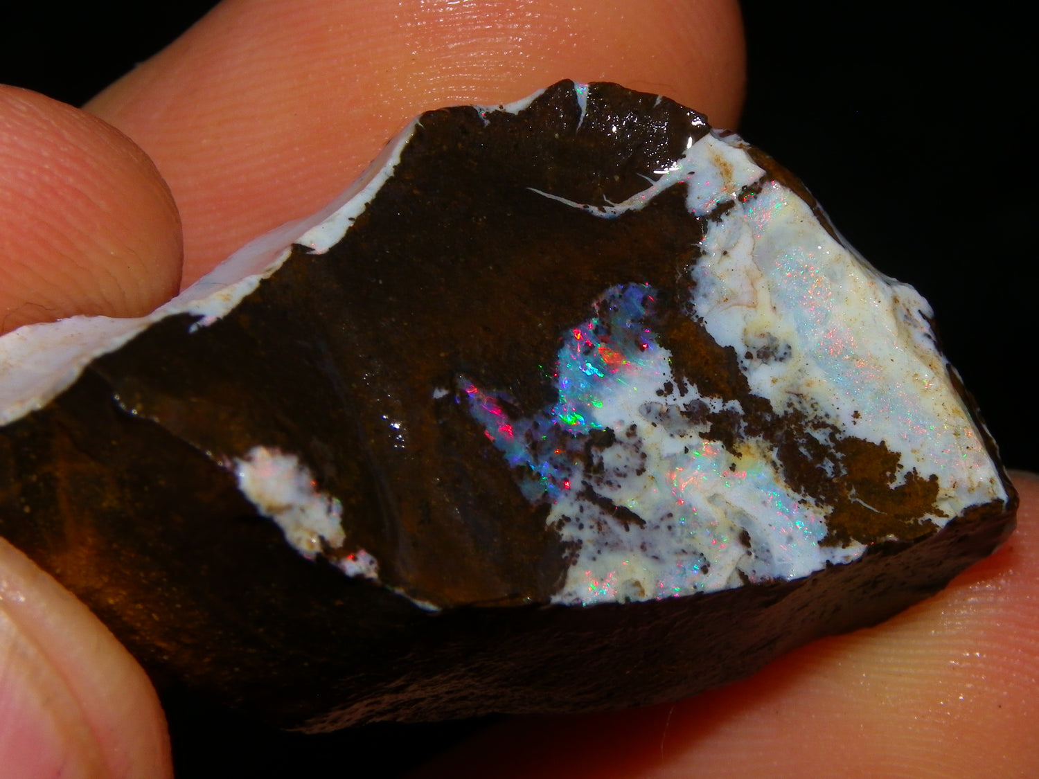 I have for sale 3 nice pieces of Rough/Sliced Boulder Opals, Split type material. These weigh 216.5cts in total. Dark ironstone with Light/White and Crystal Opal on some faces. The smallest has Opal on 3 faces, some nice colour. Then lots of Green, some veins dipping into the host. Last has some bright reds in the middle, specimen piece. Should clean up and get some Cabs/Freeforms from them. Thanks for looking.