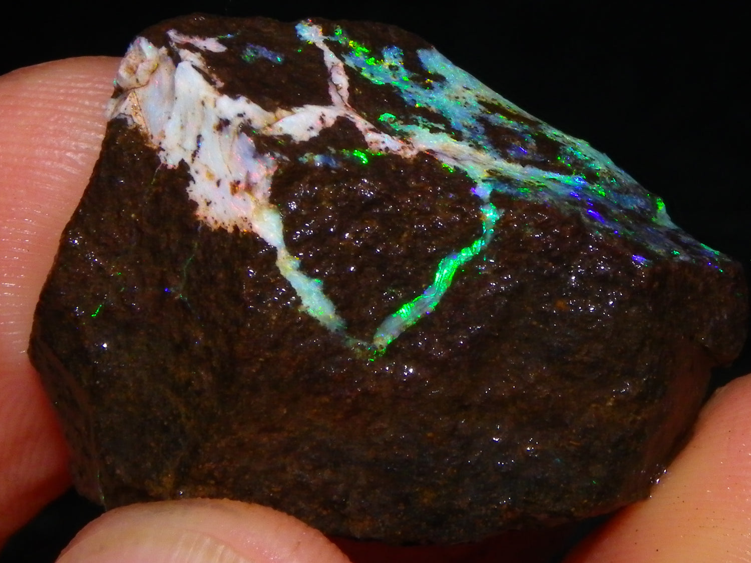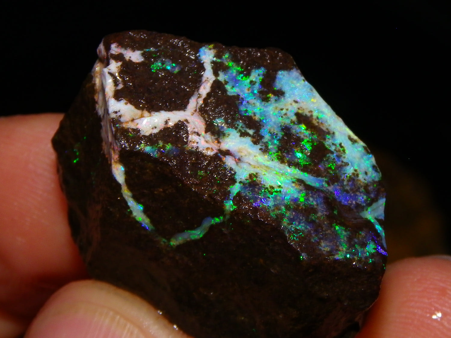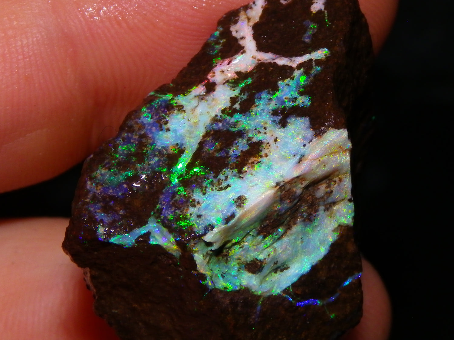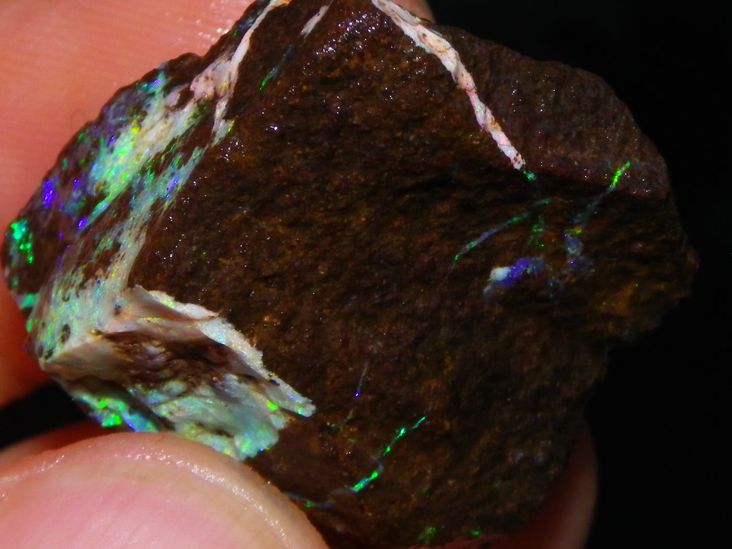 I have for sale 3 nice pieces of Rough/Sliced Boulder Opals, Split type material. These weigh 216.5cts in total. Dark ironstone with Light/White and Crystal Opal on some faces. The smallest has Opal on 3 faces, some nice colour. Then lots of Green, some veins dipping into the host. Last has some bright reds in the middle, specimen piece. Should clean up and get some Cabs/Freeforms from them. Thanks for looking.
