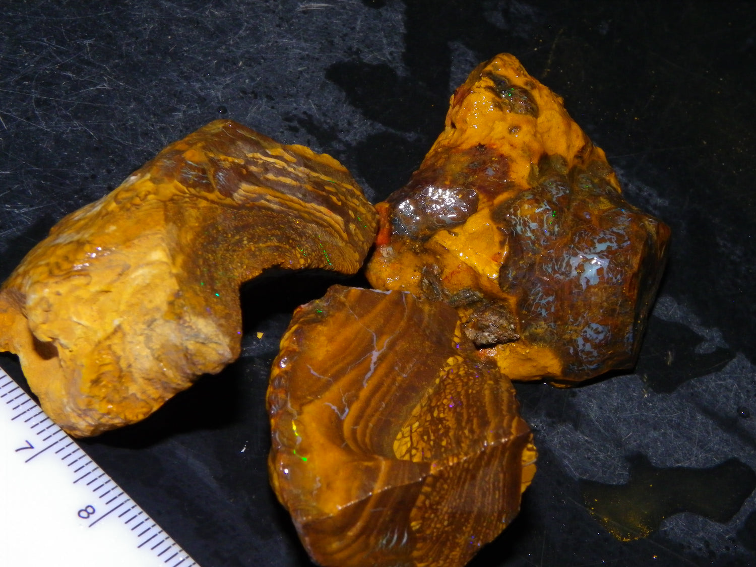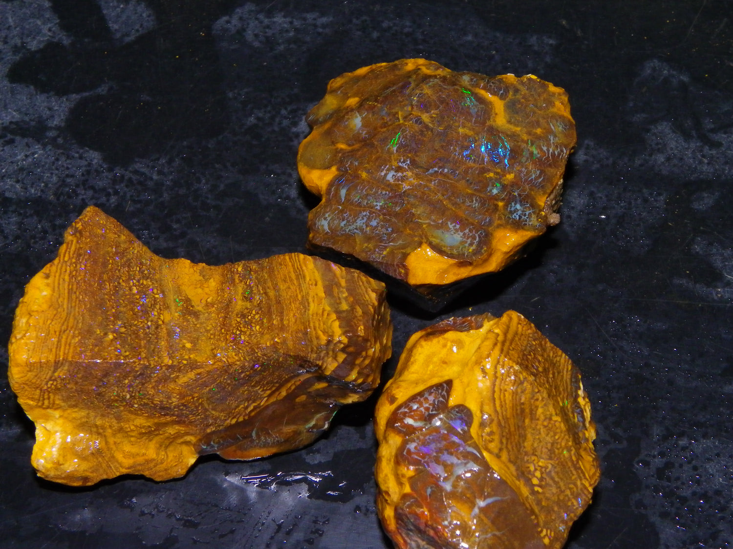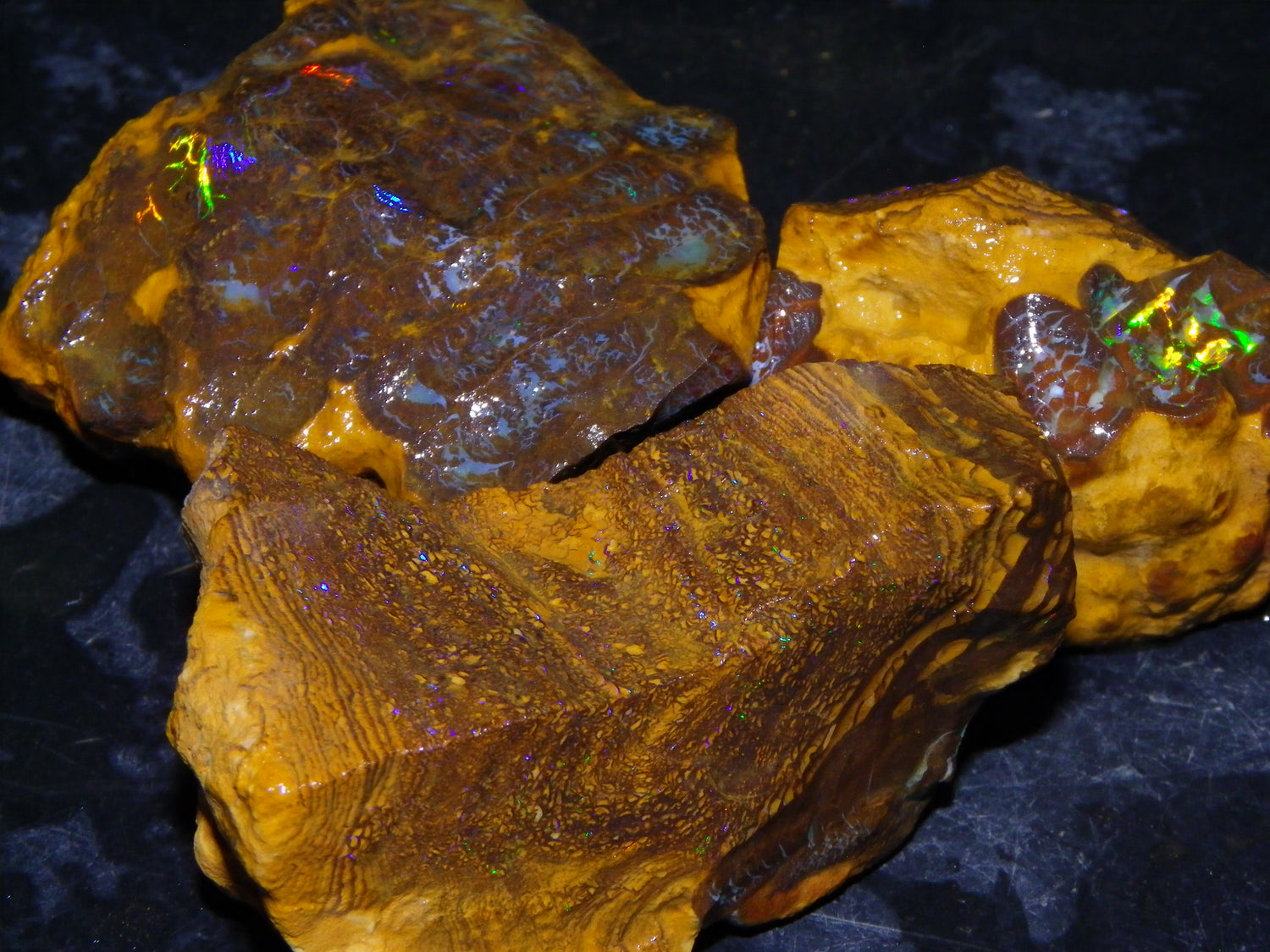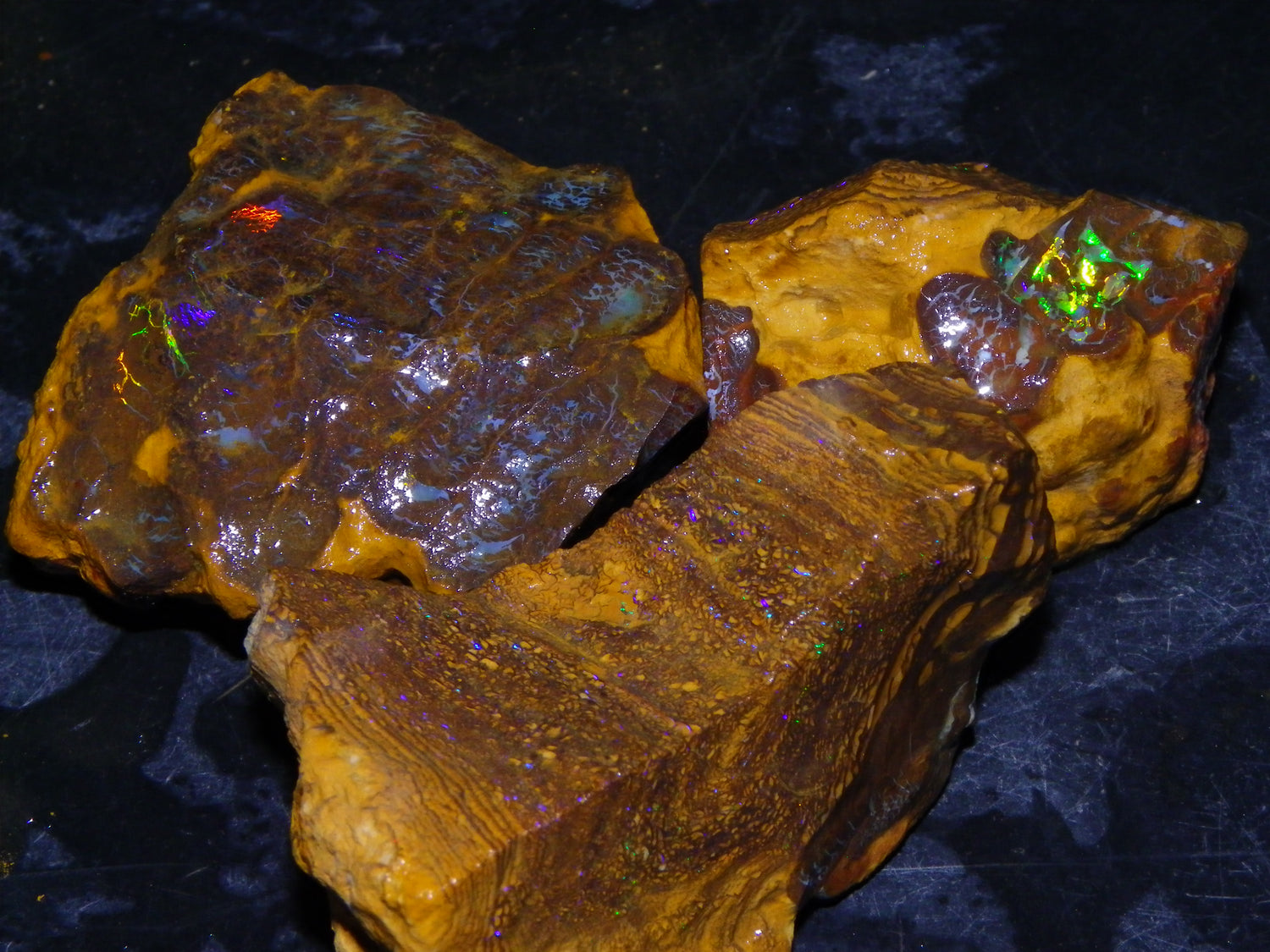 3 Nice Rough Matrix Opals 525.5cts Opalton Bright Green/Blue/Orange Fires
