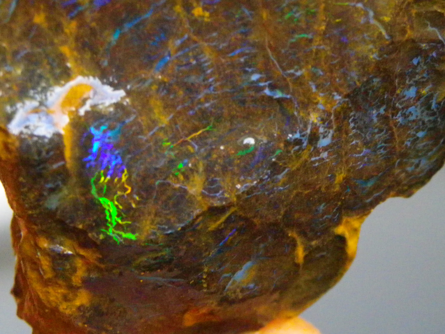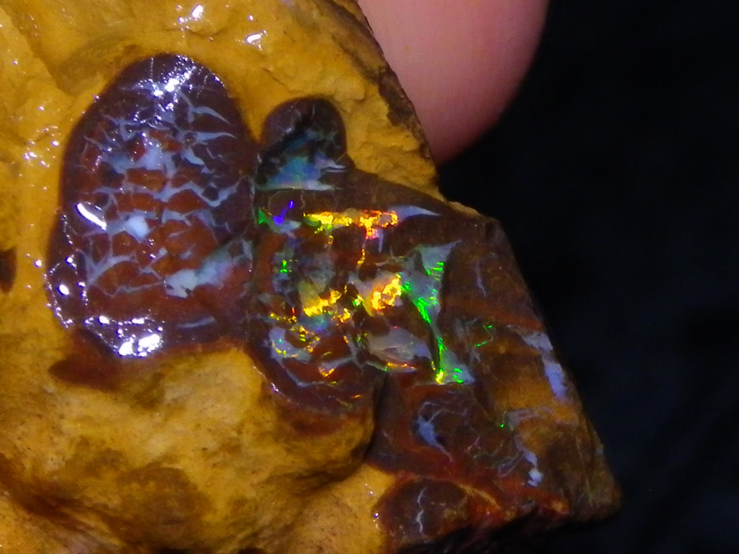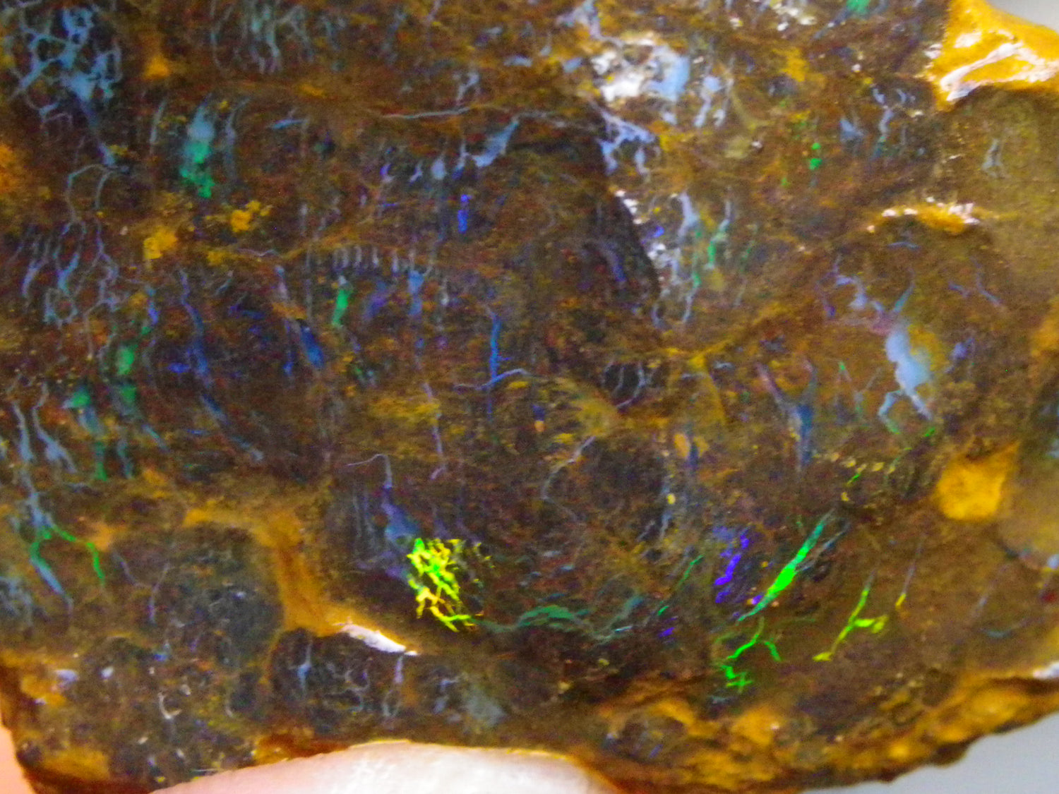 I have for sale 3 nice Rough and Sliced matrix opals from Opalton. Queensland. They weigh 525.5cts in total. Ironstone base material with Fine viens and colour through them. One is Bubble band with fine multicolour fires. Next has a patch of bright colour on the top. Multicolour Opal, the largest has very fine pattern through it and some Blue/Greens mixed in. Interesting material, specimens or cut some stones from them. Thanks for looking.