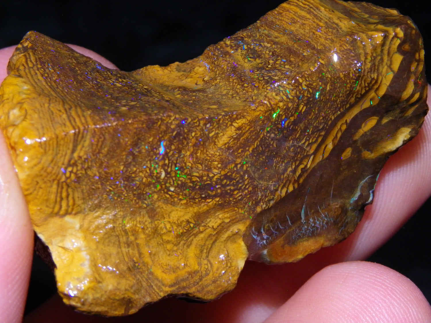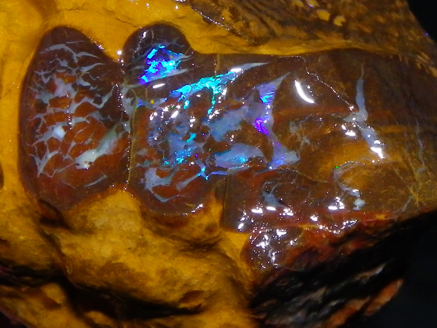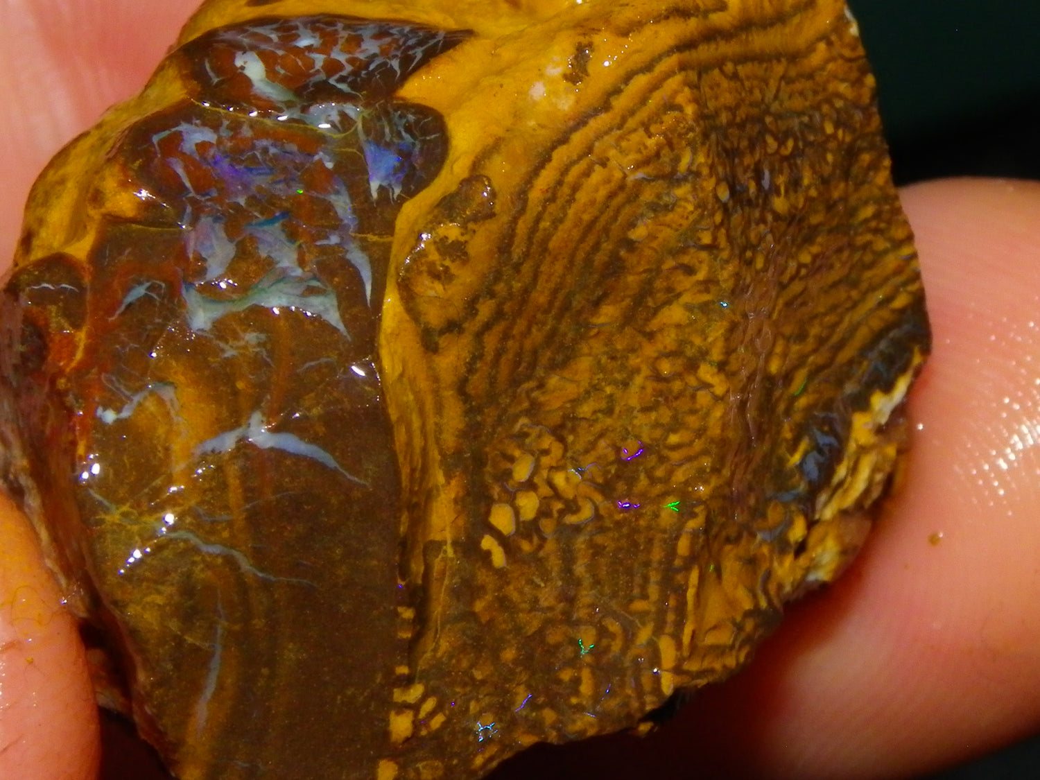 I have for sale 3 nice Rough and Sliced matrix opals from Opalton. Queensland. They weigh 525.5cts in total. Ironstone base material with Fine viens and colour through them. One is Bubble band with fine multicolour fires. Next has a patch of bright colour on the top. Multicolour Opal, the largest has very fine pattern through it and some Blue/Greens mixed in. Interesting material, specimens or cut some stones from them. Thanks for looking.