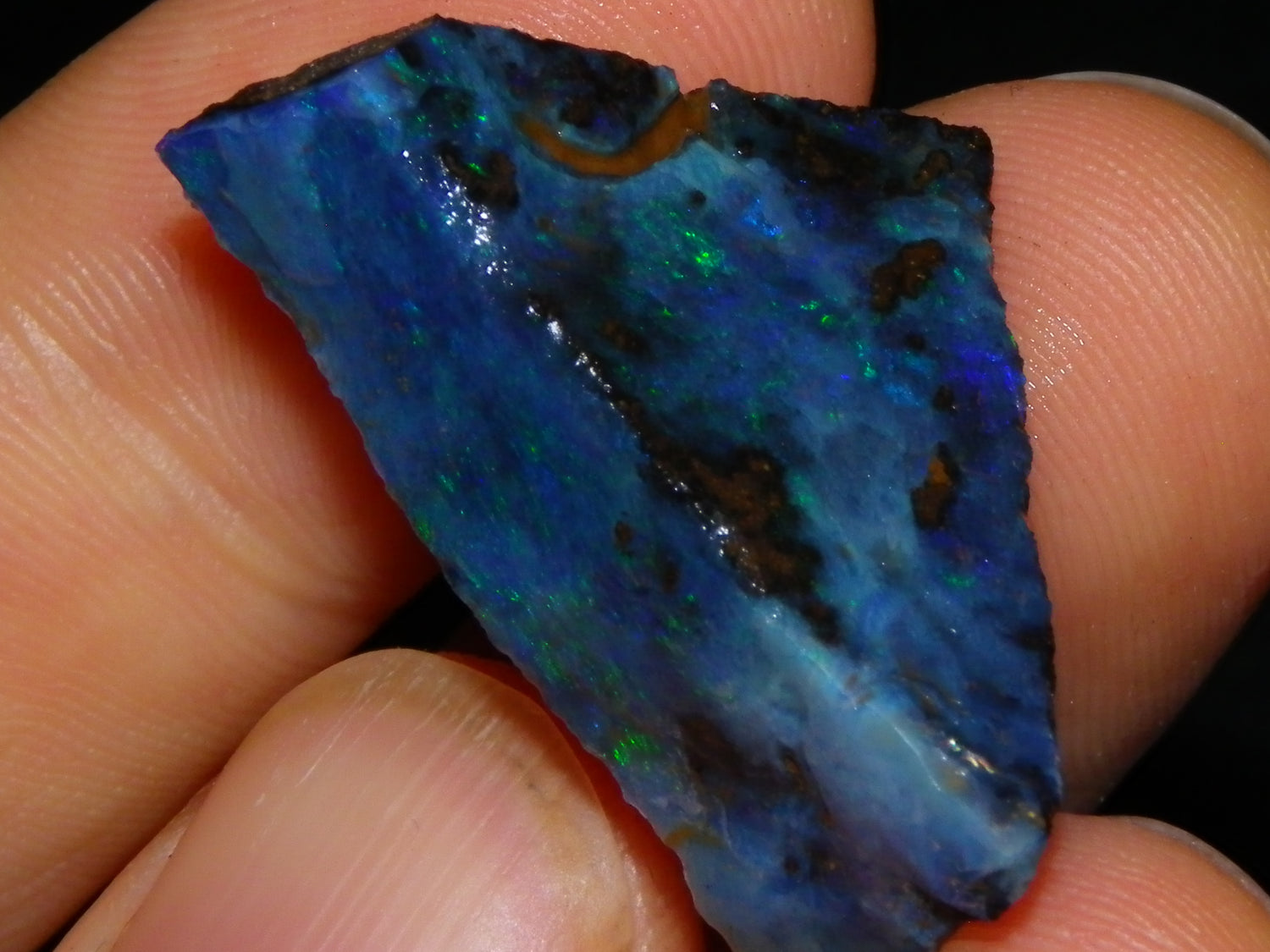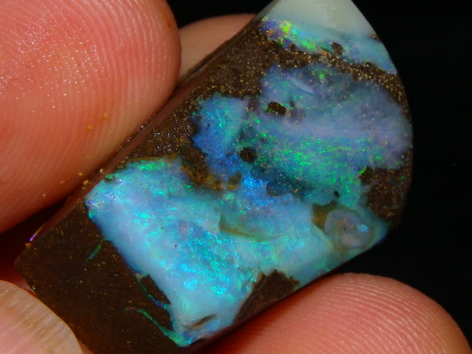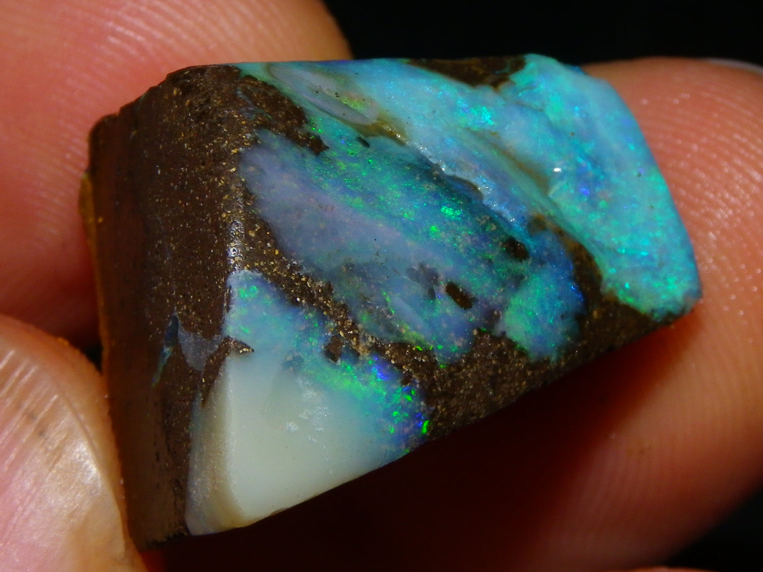 I have for sale 3 Nice Rubbed/Rough/Sliced Boulder opals from Queensland Australia. They weigh 172.5cts in total. Ironstone base material all with Fires over them. One has Brighter Blue/Greens on the Top face. Another Fires in Milky Opal. Last has Clearer Opal on 2 faces with some Blue/Greens wen moved. Great Specimens, and should clean up some nice Pendants/Freeforms and similar.,,., Thanks for looking,.,.,.