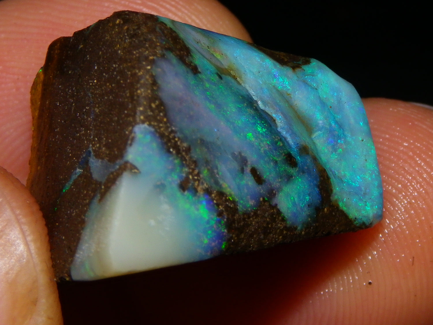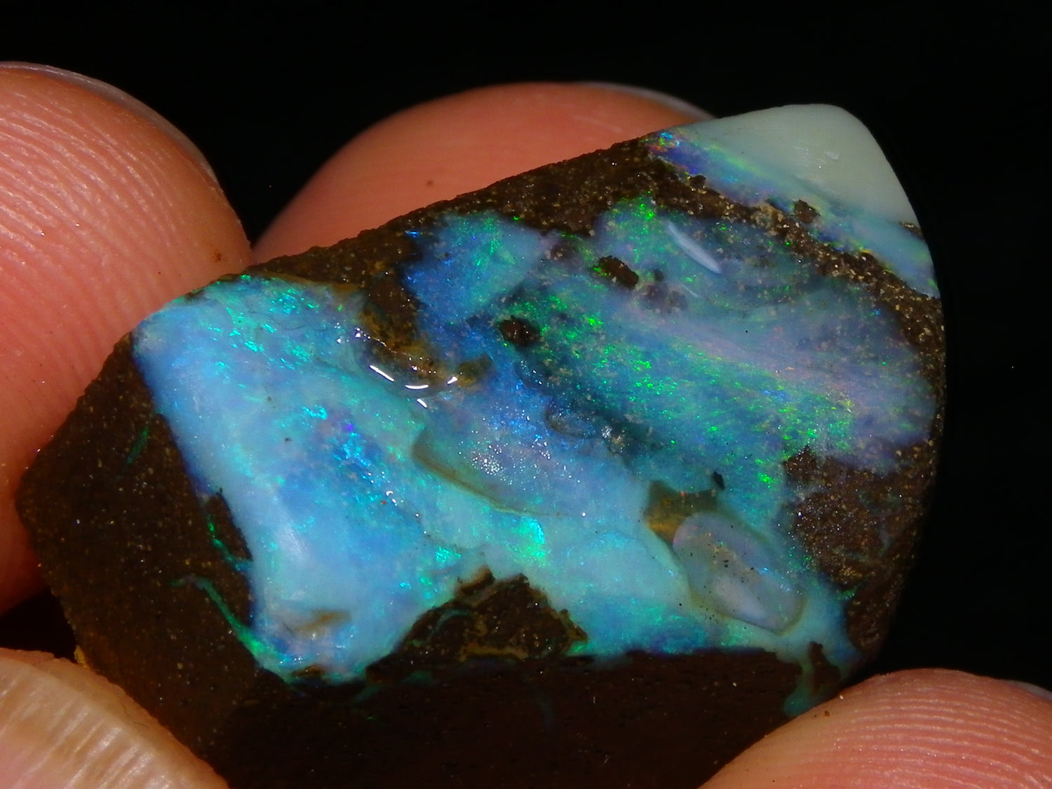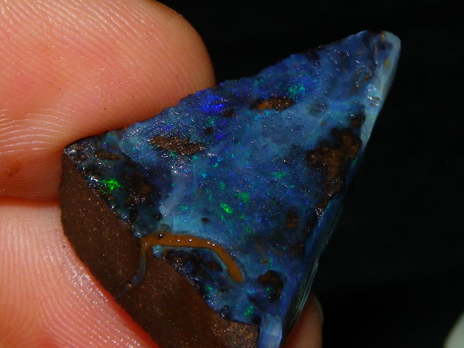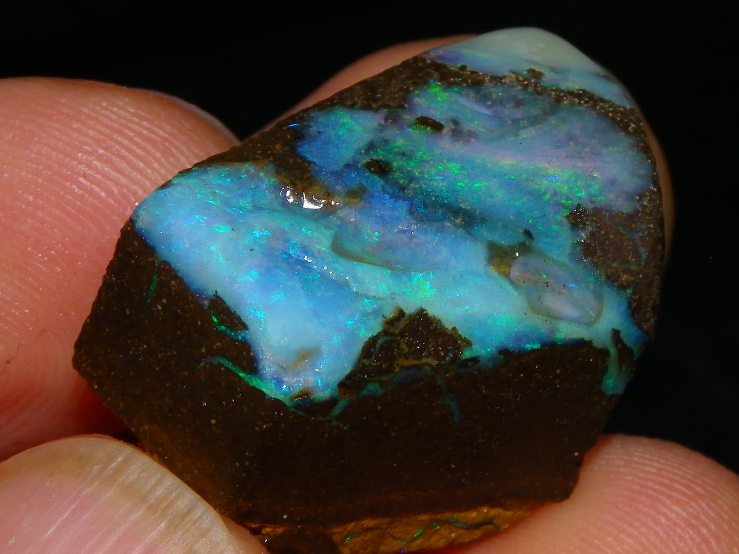 I have for sale 3 Nice Rubbed/Rough/Sliced Boulder opals from Queensland Australia. They weigh 172.5cts in total. Ironstone base material all with Fires over them. One has Brighter Blue/Greens on the Top face. Another Fires in Milky Opal. Last has Clearer Opal on 2 faces with some Blue/Greens wen moved. Great Specimens, and should clean up some nice Pendants/Freeforms and similar.,,., Thanks for looking,.,.,.