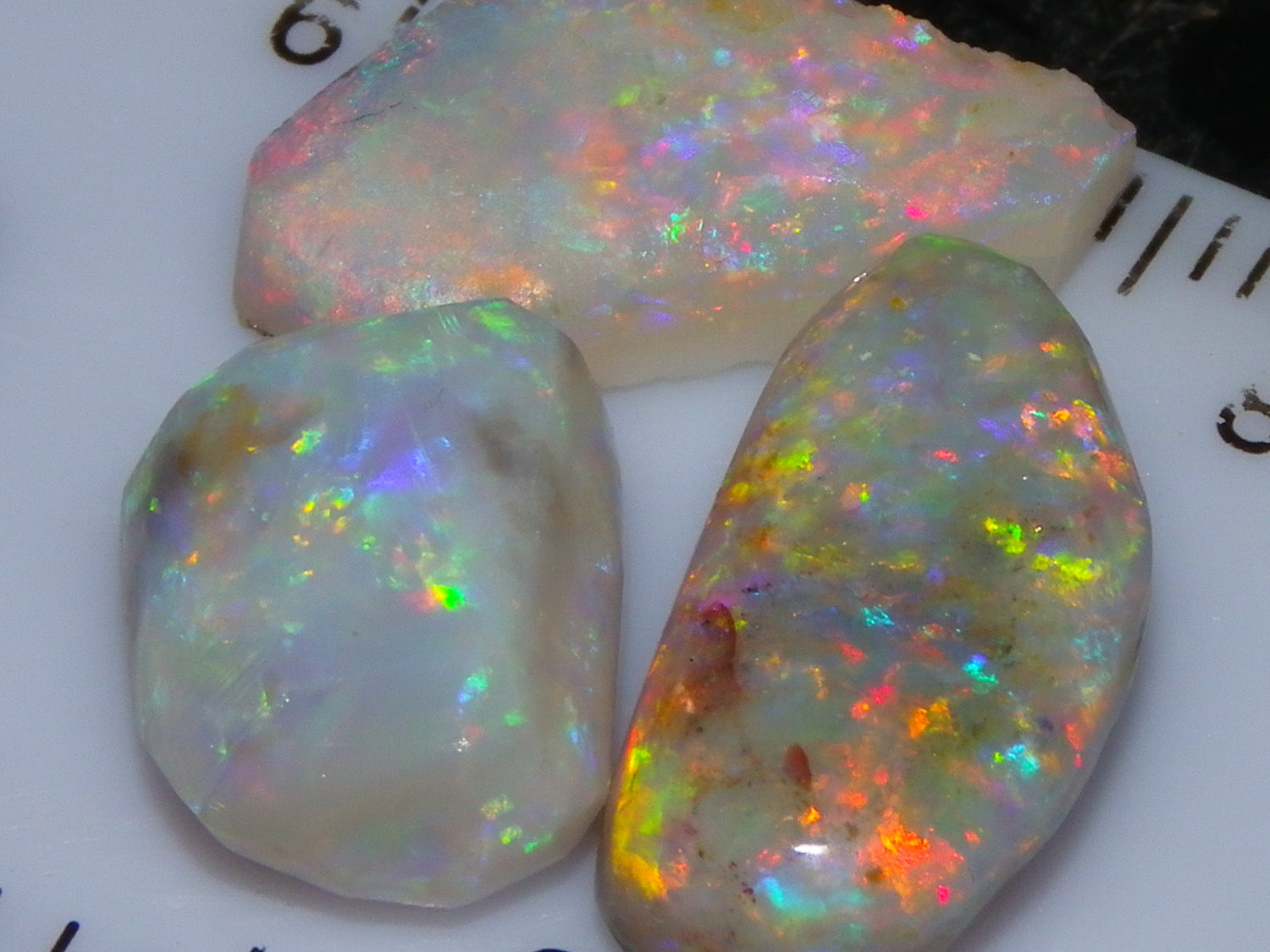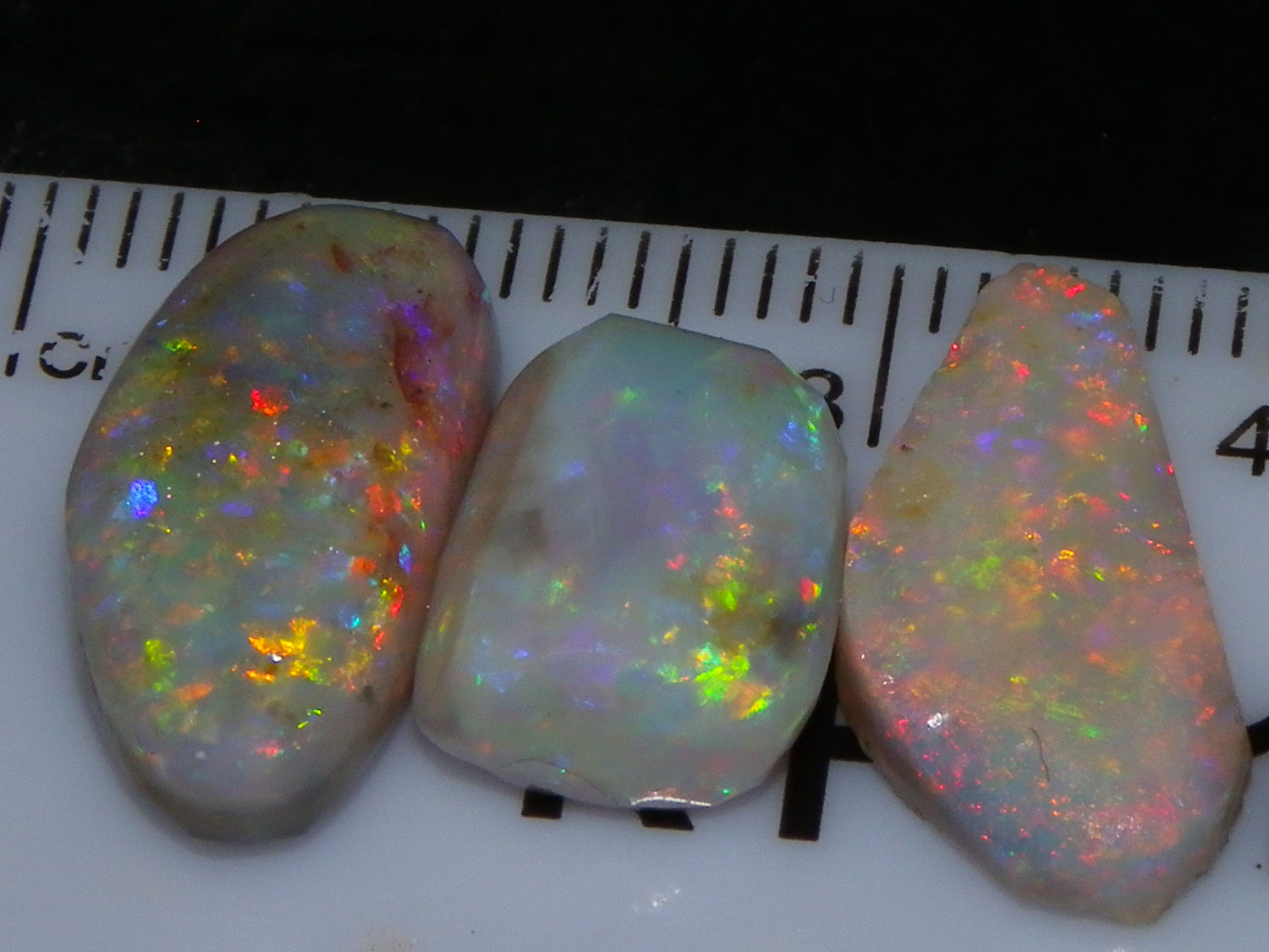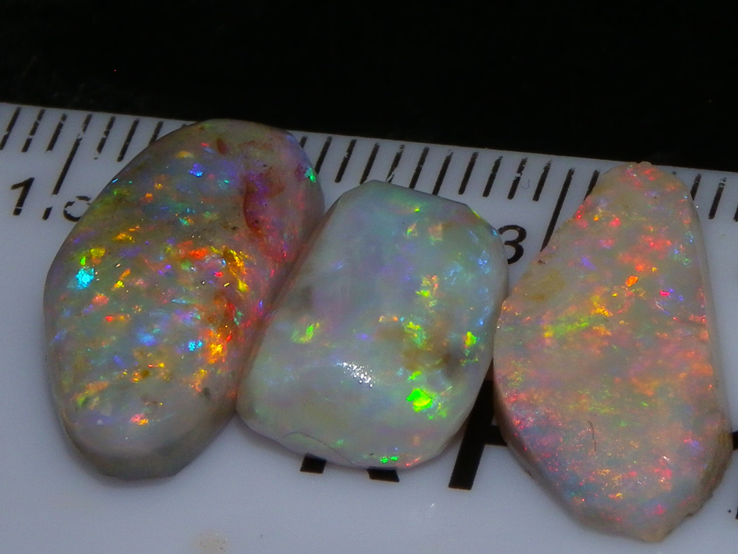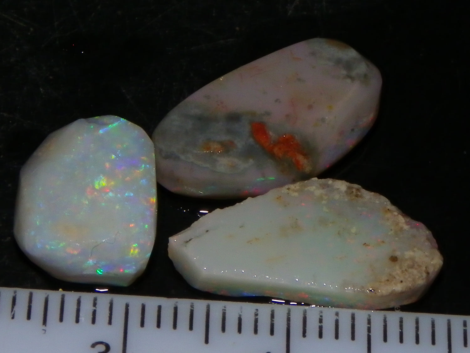 3 Nice Rubbed/Roug Coober Pedy Seam Opals 12cts Multicolour Fires Australia
