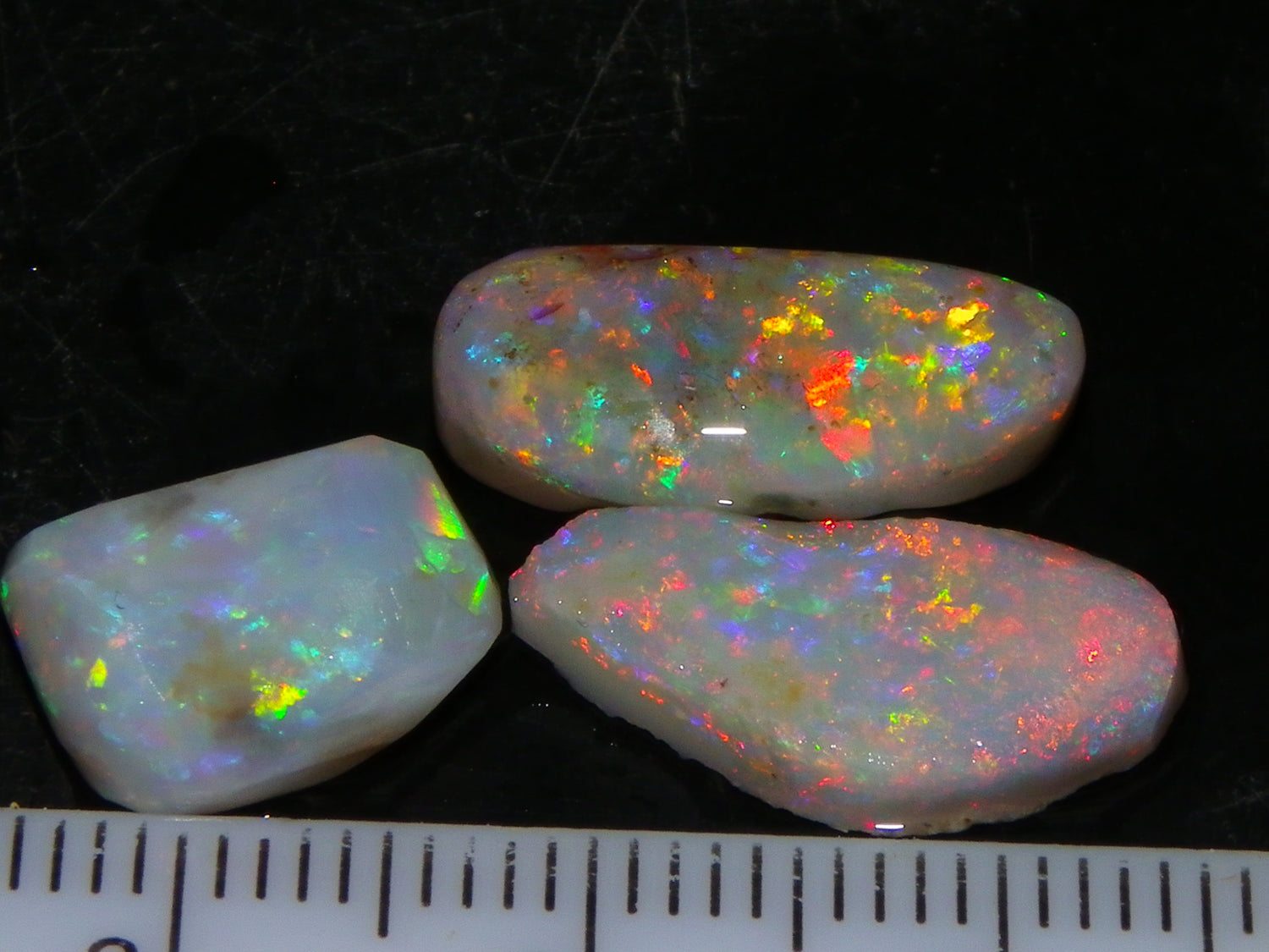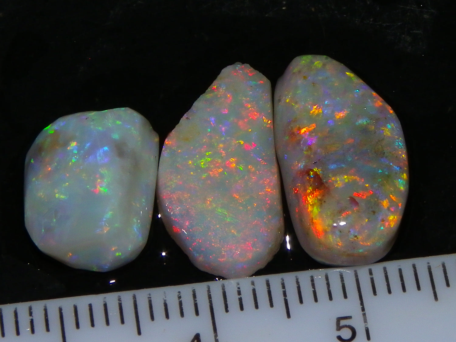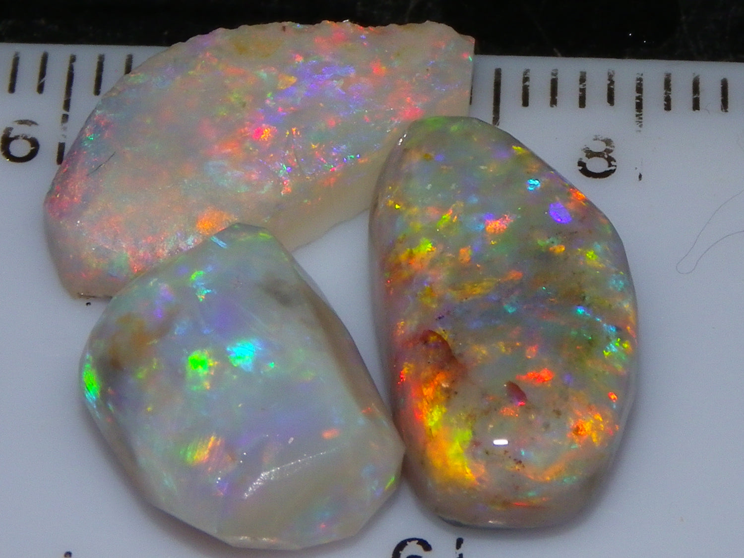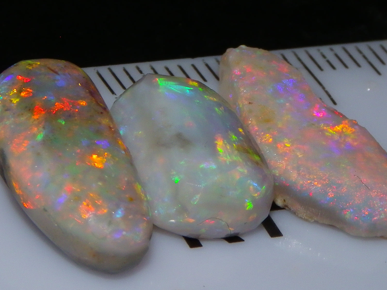 3 Nice Rubbed/Roug Coober Pedy Seam Opals 12cts Multicolour Fires Australia