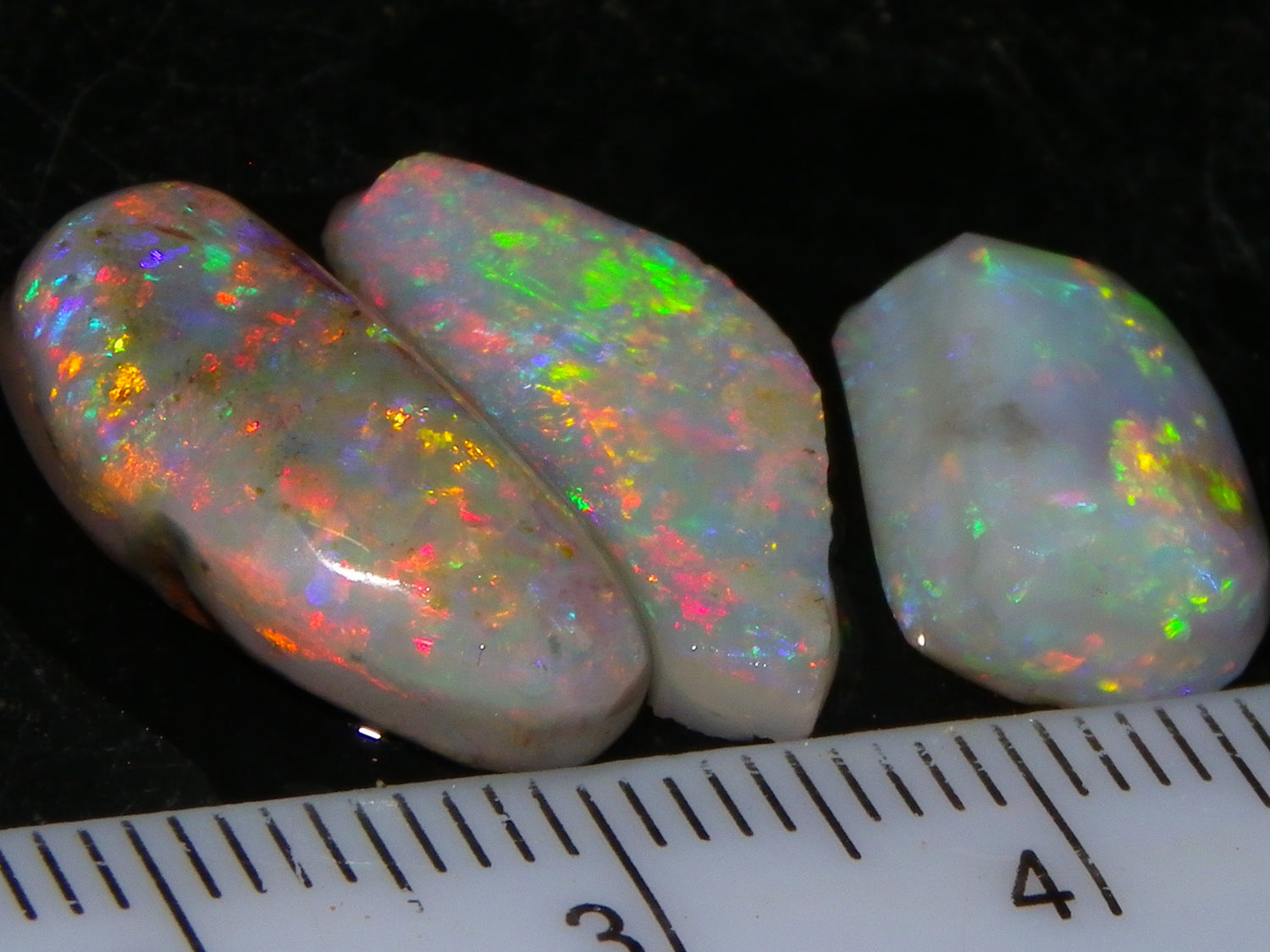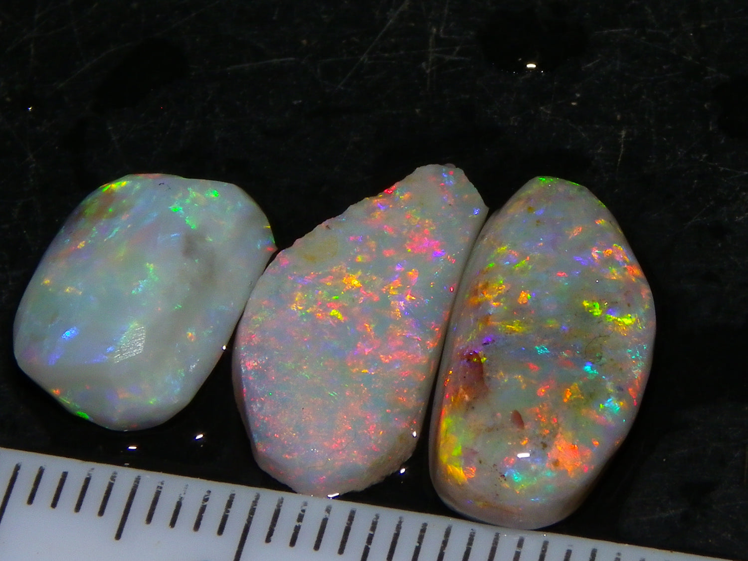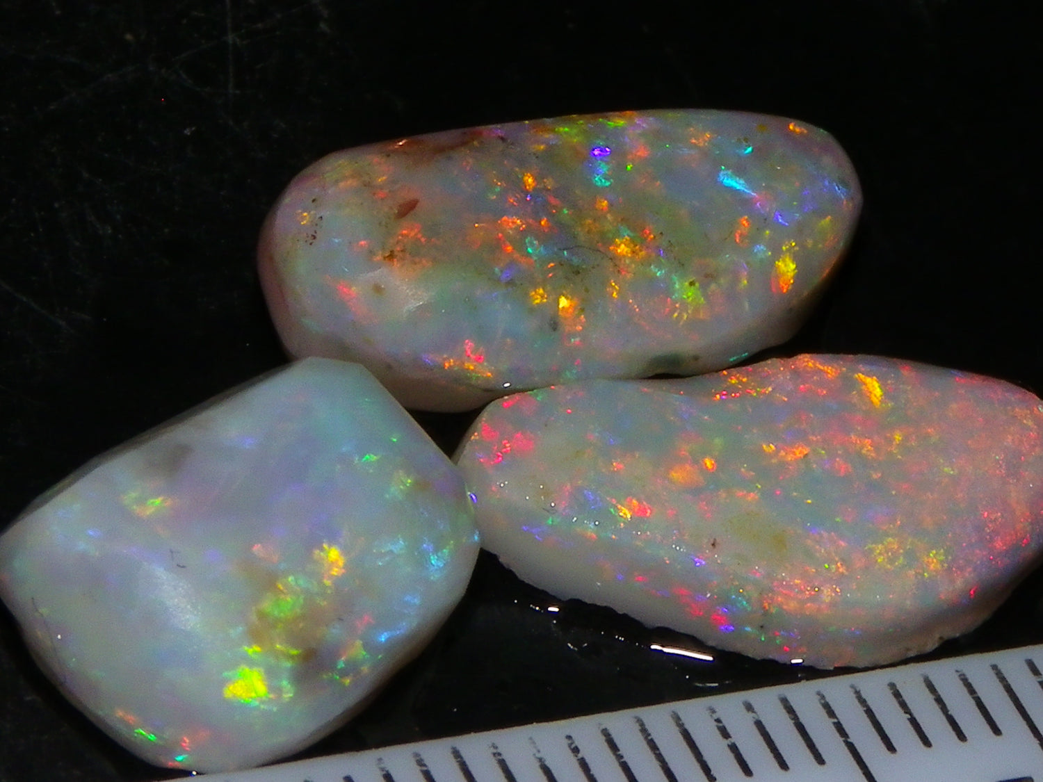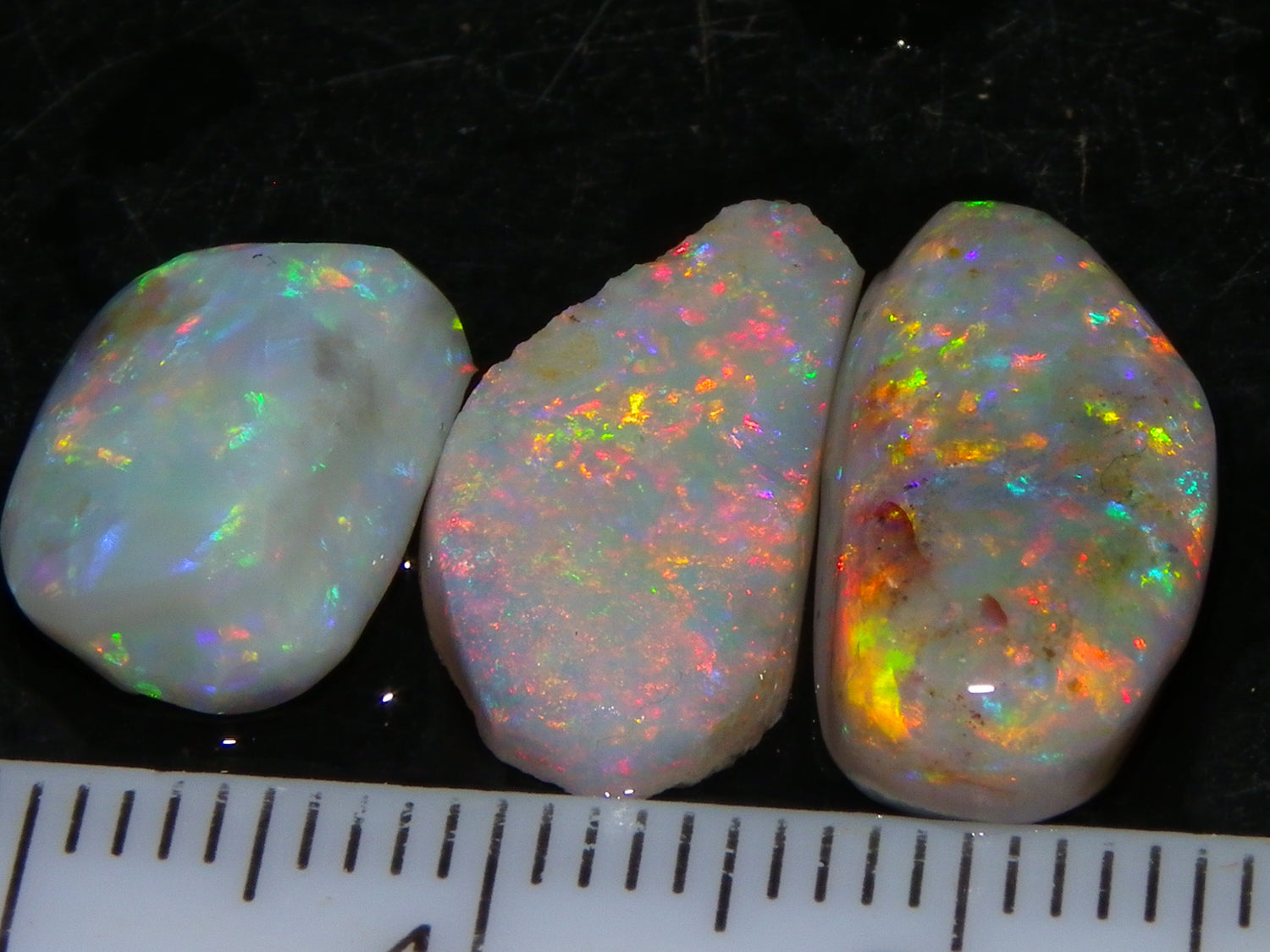 3 Nice Rubbed/Roug Coober Pedy Seam Opals 12cts Multicolour Fires Australia