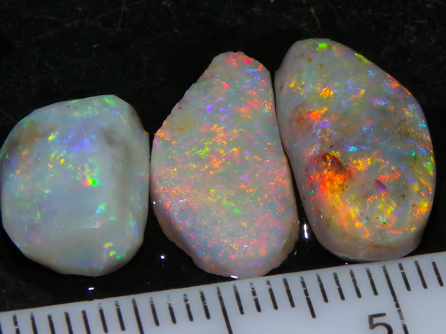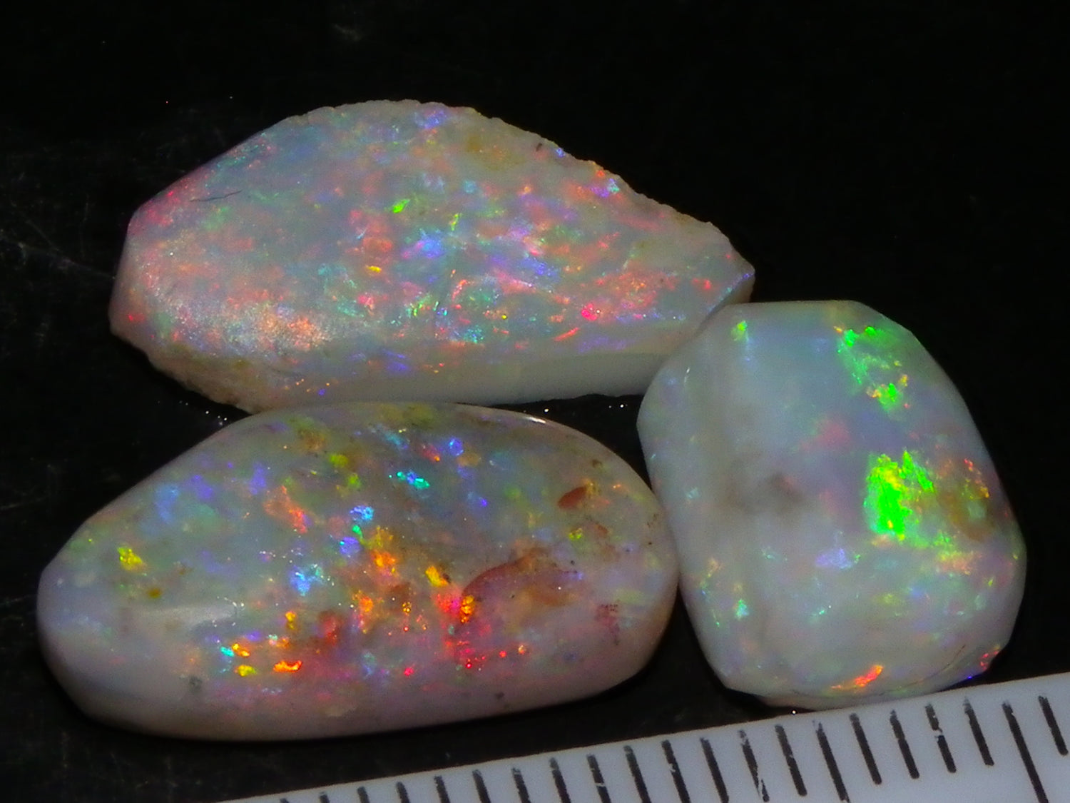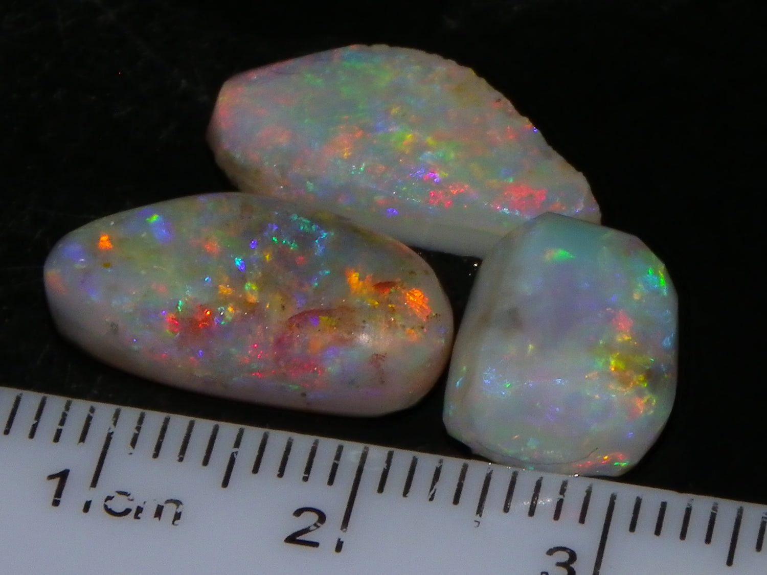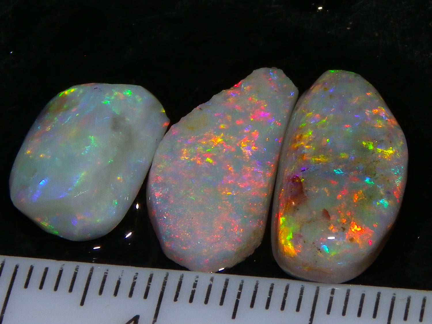 3 Nice Rubbed/Roug Coober Pedy Seam Opals 12cts Multicolour Fires Australia