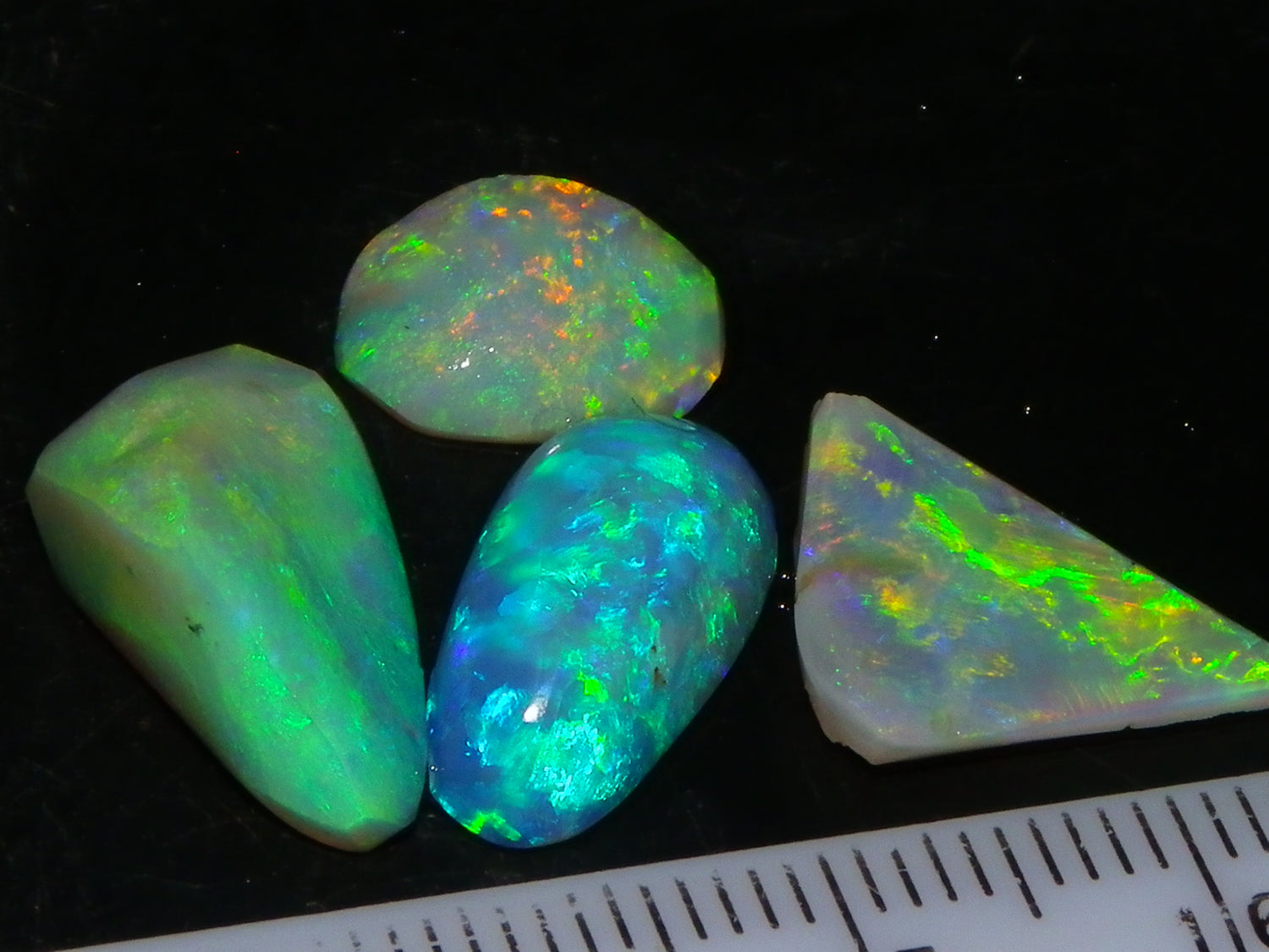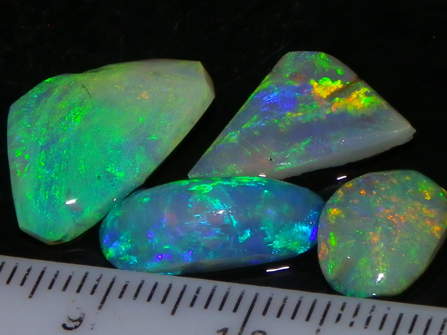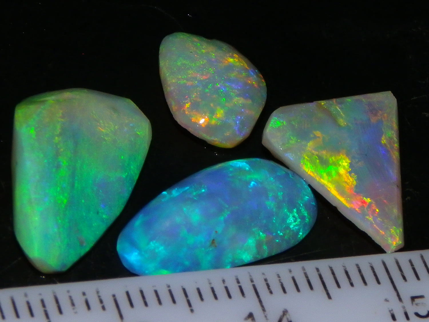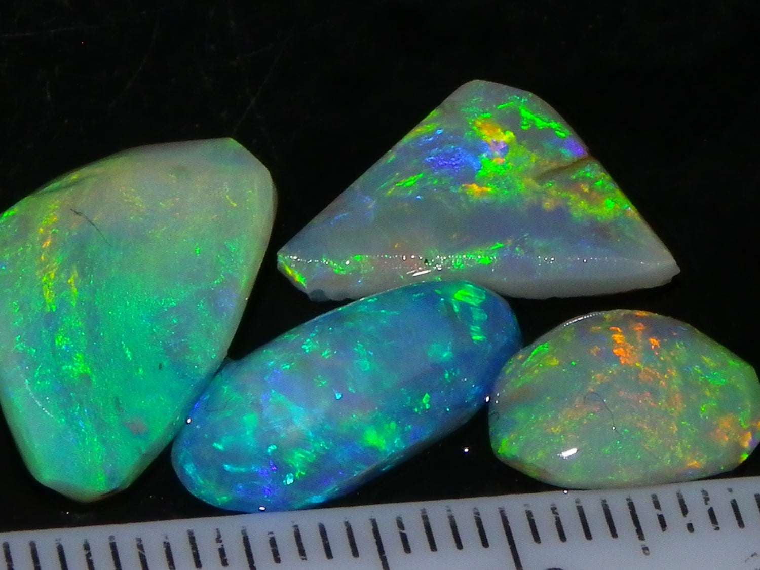 4 Gem Crystal Opal Rubs 12.45cts Lightning Ridge Australia Fires/Multicolours