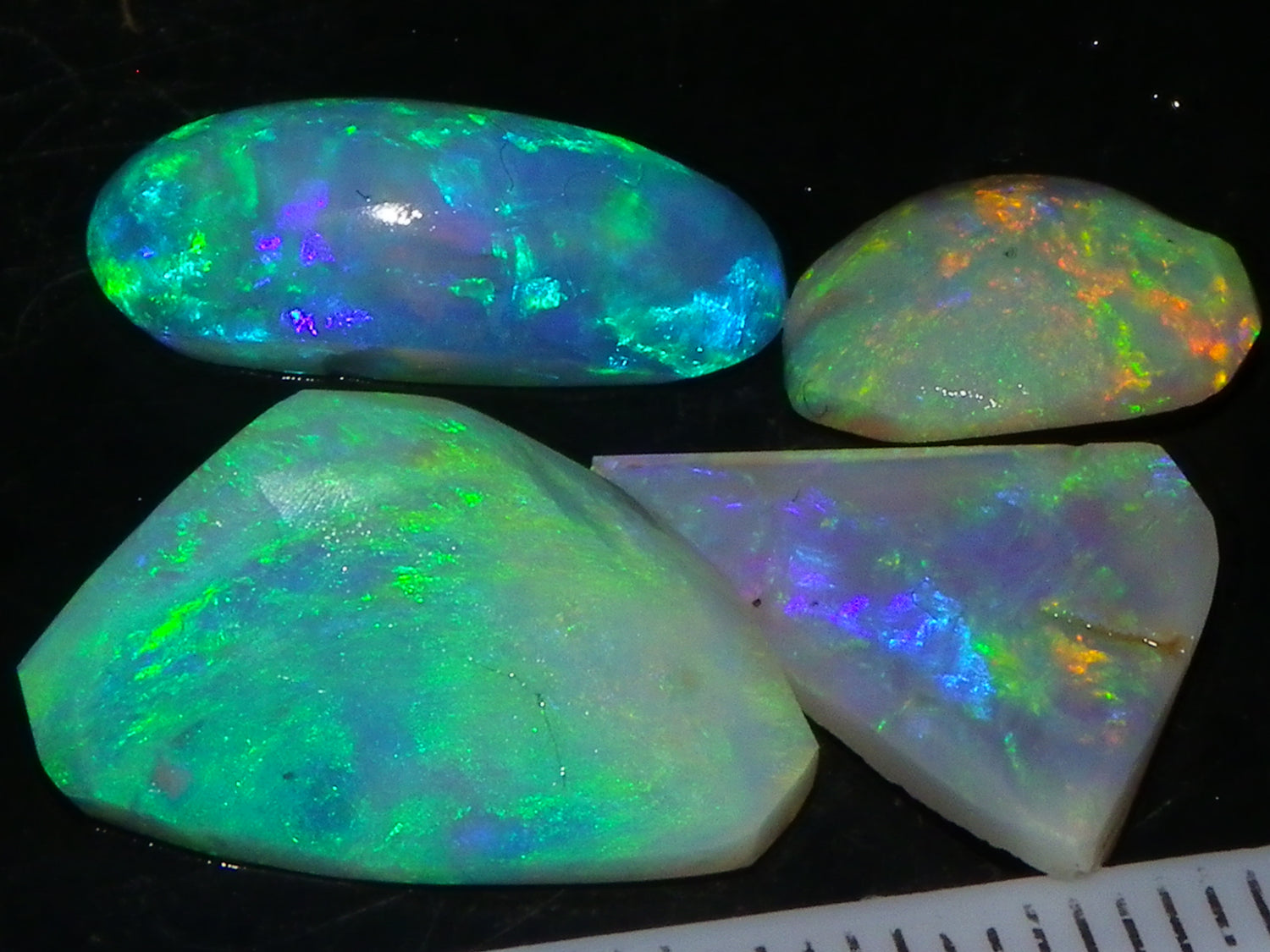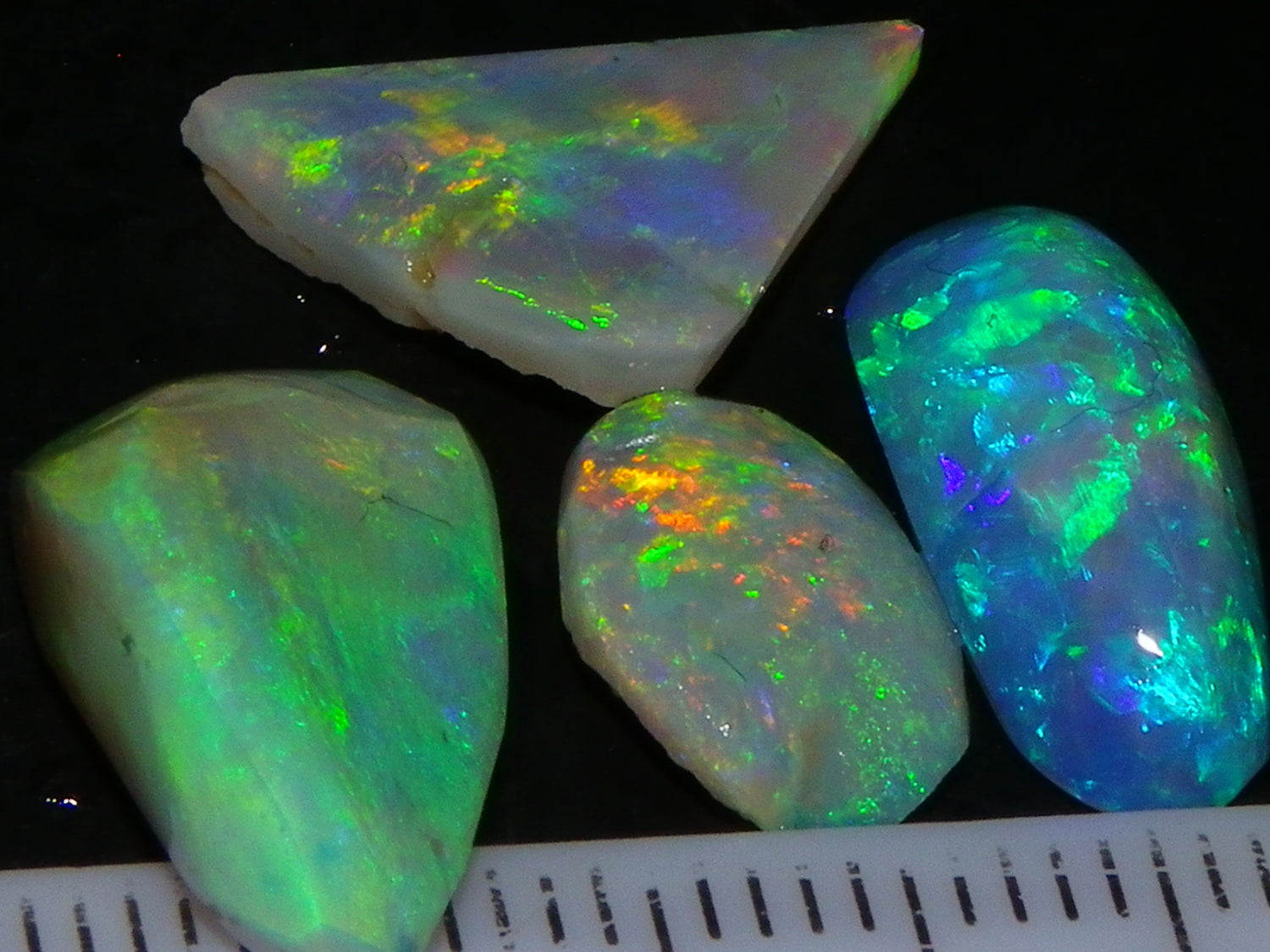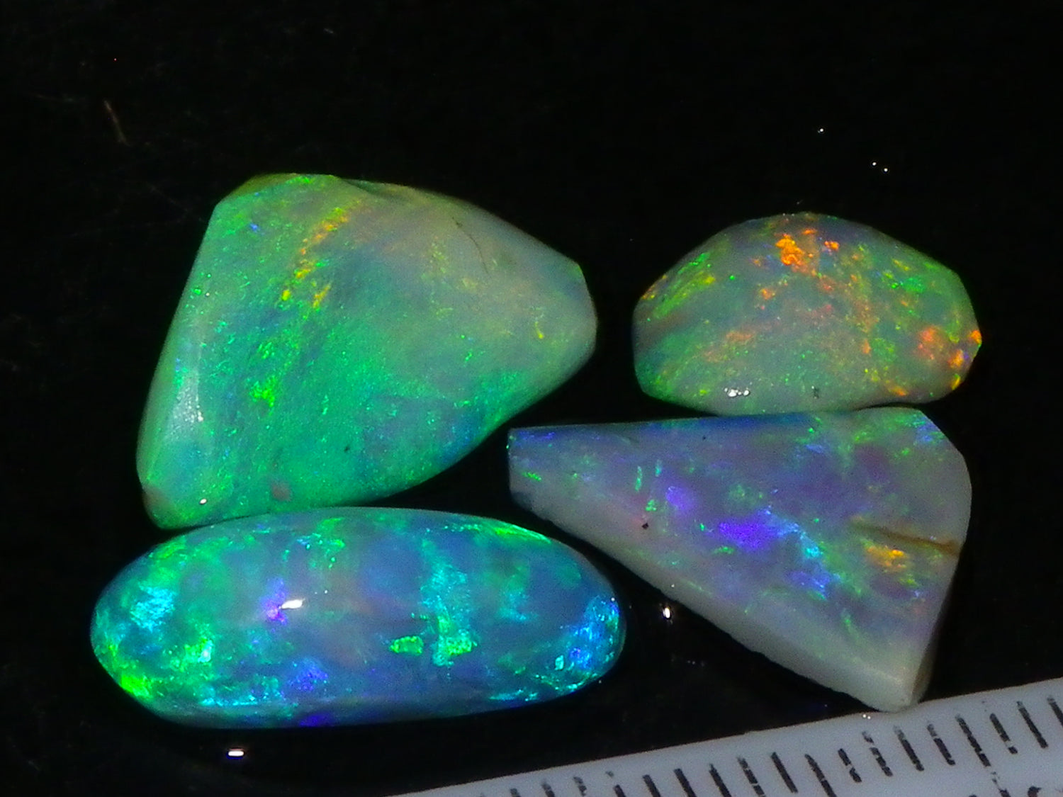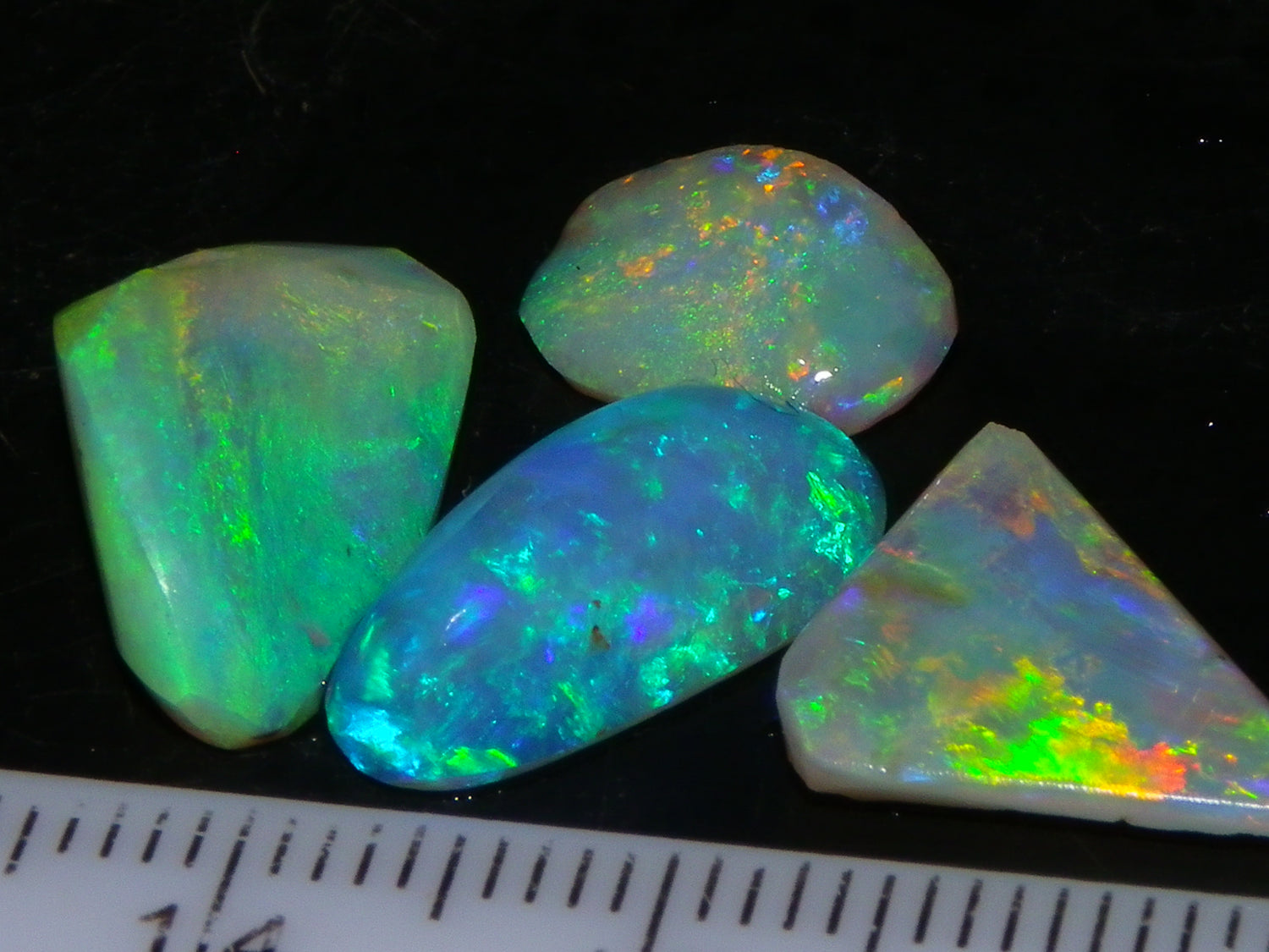 4 Gem Crystal Opal Rubs 12.45cts Lightning Ridge Australia Fires/Multicolours