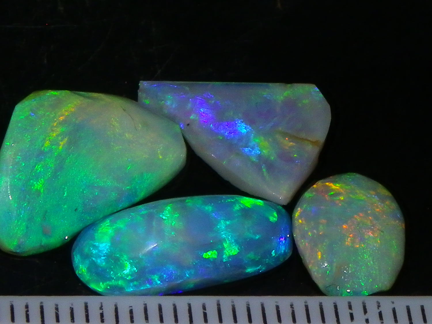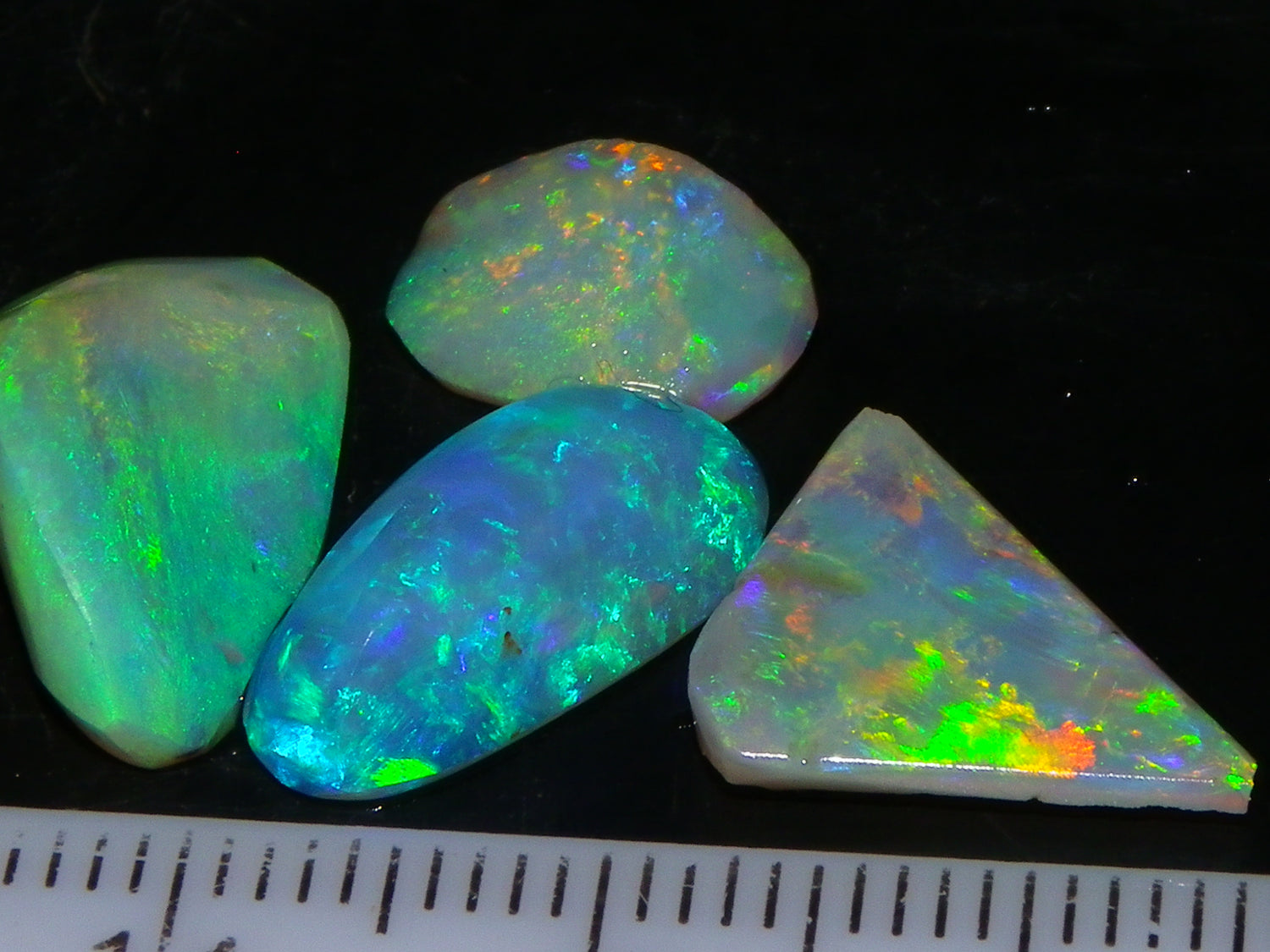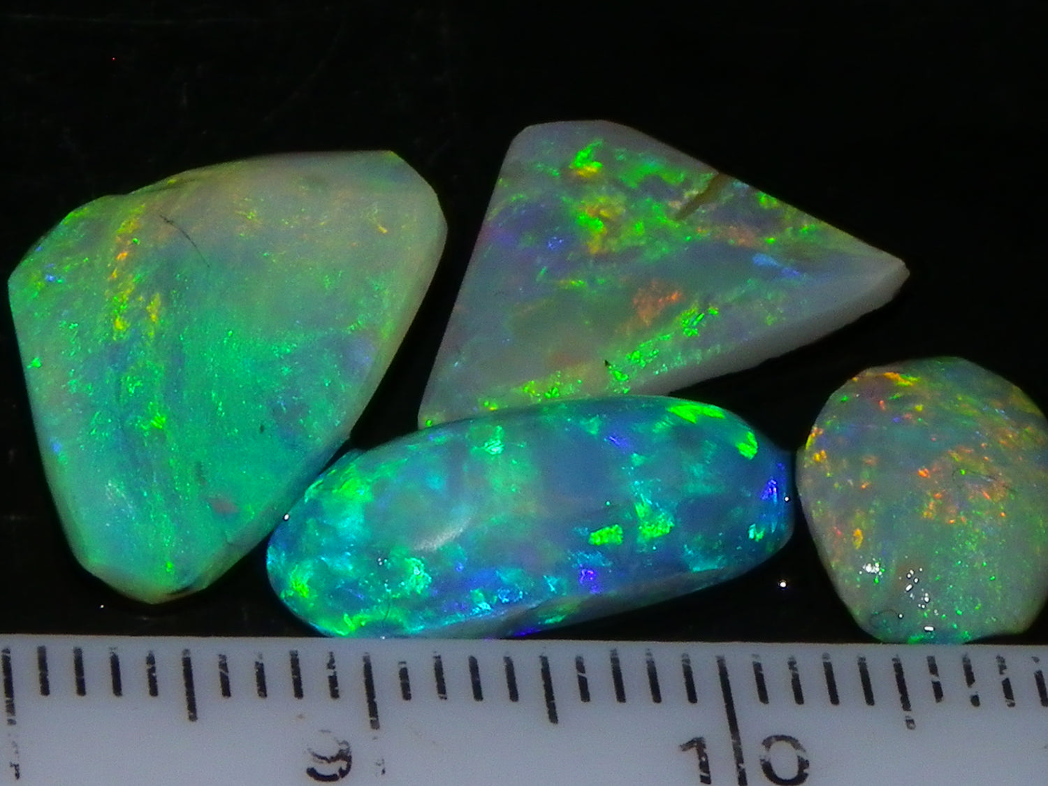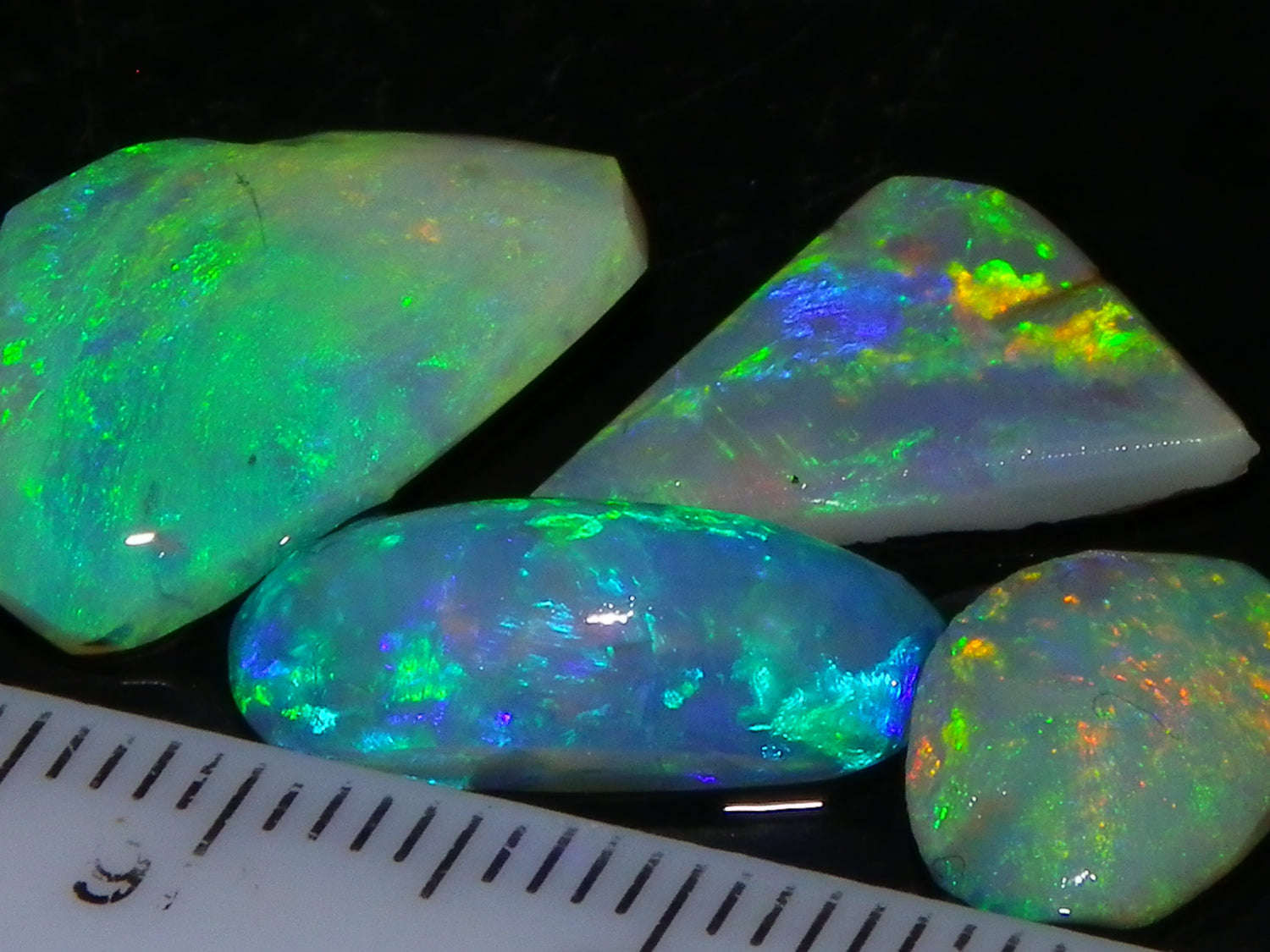 4 Gem Crystal Opal Rubs 12.45cts Lightning Ridge Australia Fires/Multicolours