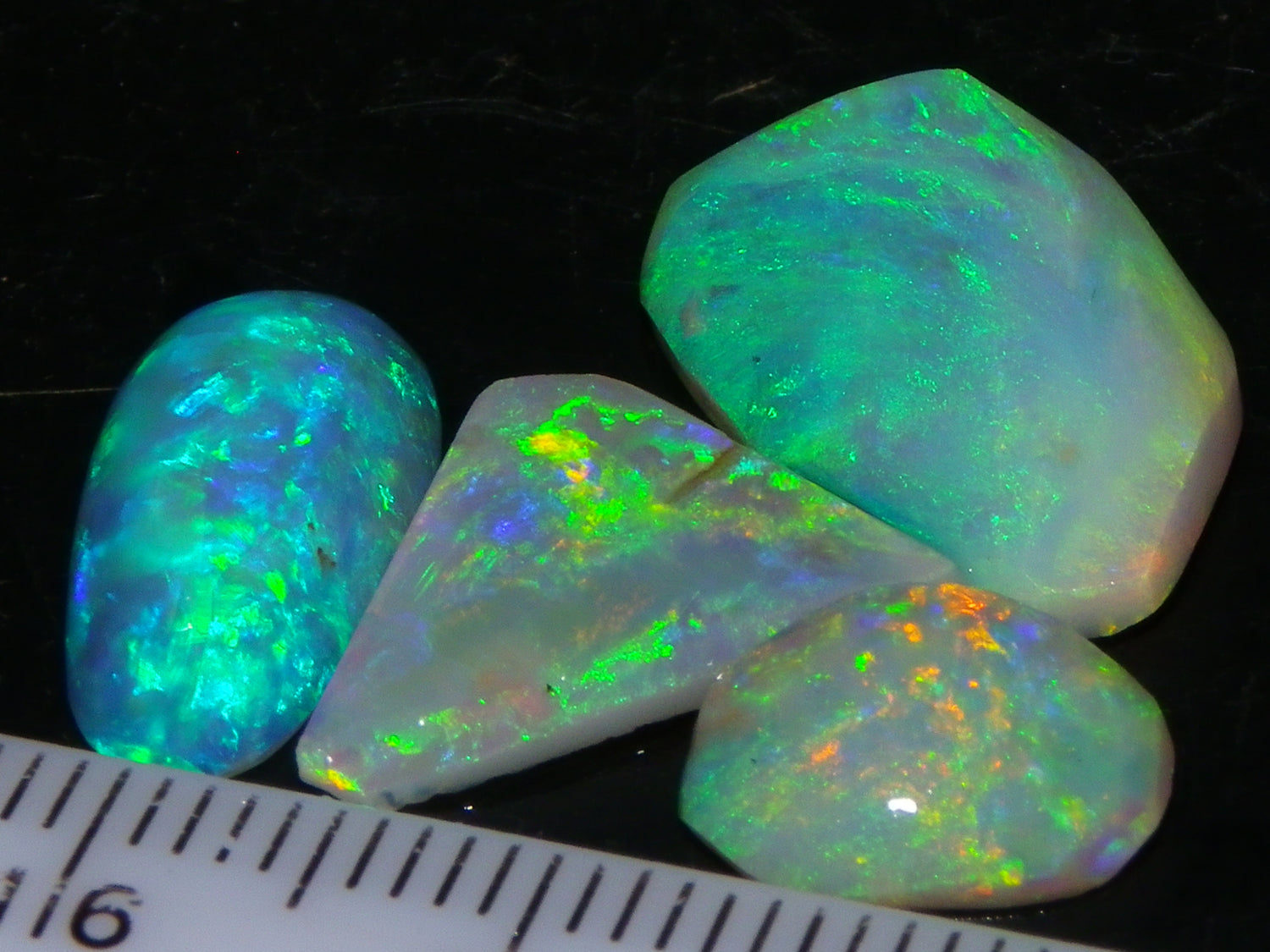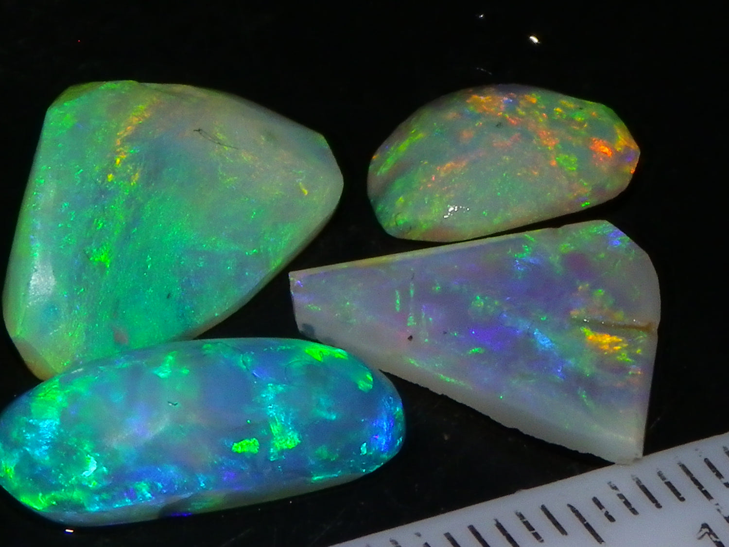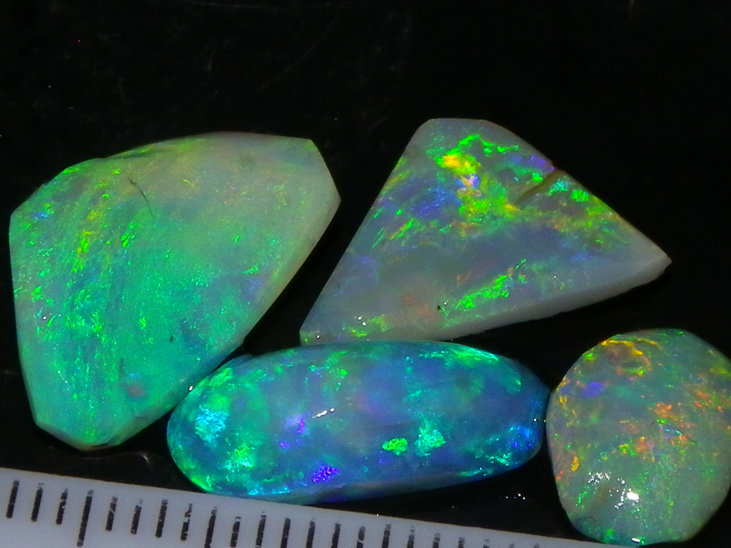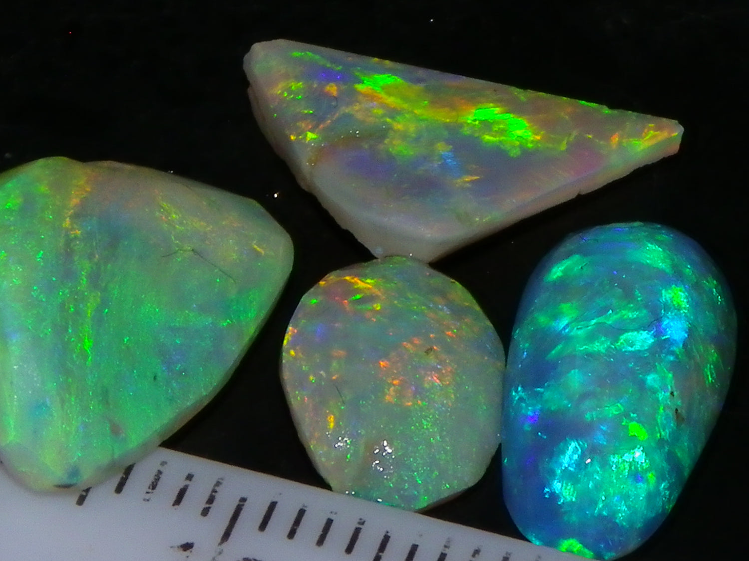 4 Gem Crystal Opal Rubs 12.45cts Lightning Ridge Australia Fires/Multicolours