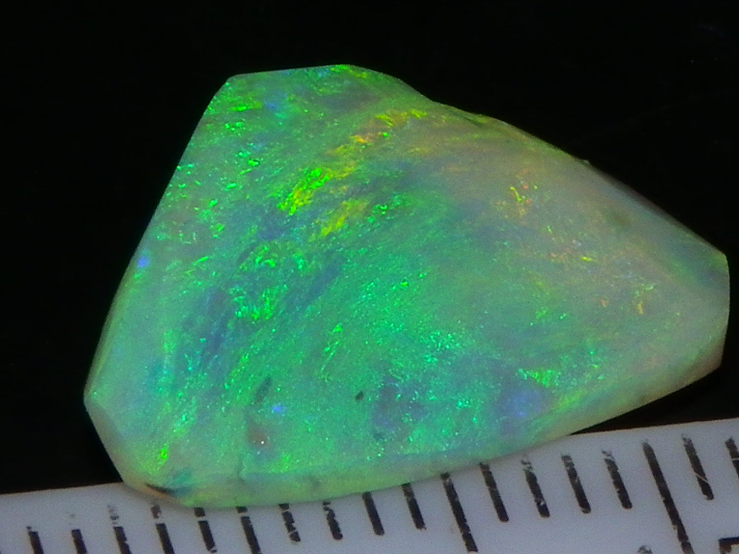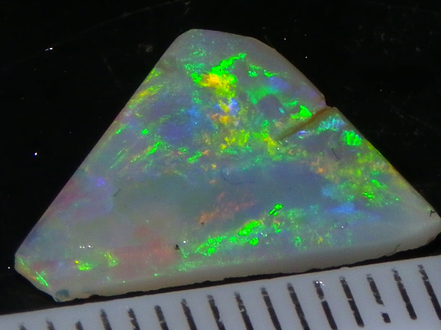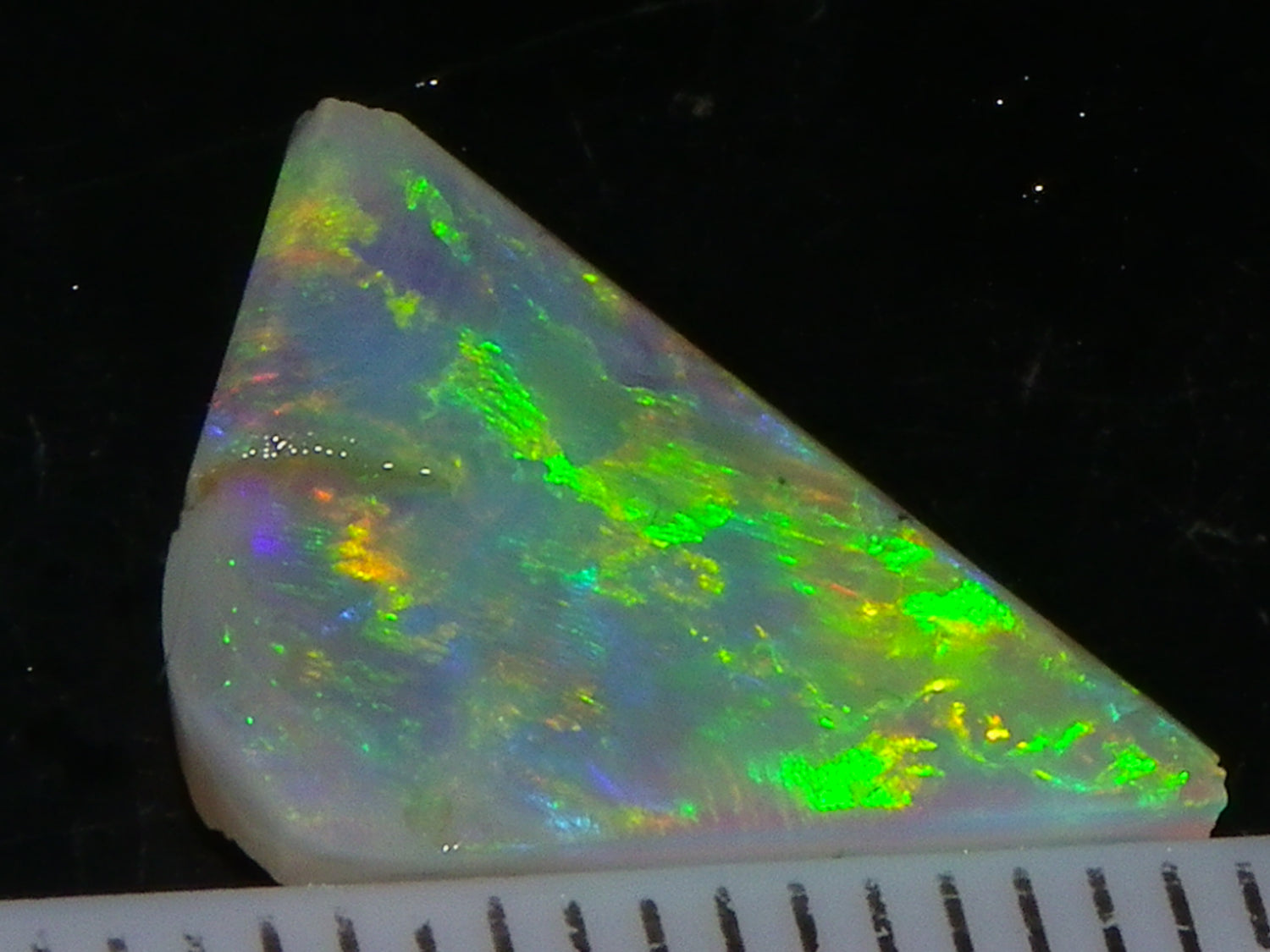 I have for sale a Parcel of 4 Rubbed Solid Crystal Opals from Lightning Ridge Australia. These weigh 12.45cts in total. They are Solid Crystal Opal, Bright bars and Fires through them. Greens/Blues and some Gold/Oranges aswell in these. Solid Fires aside from the Triangle, that has some potch in the back. They will cut some very nice Ring/Pendant stones in the right hands. Great Parcel here. Thanks for looking,.,.,.