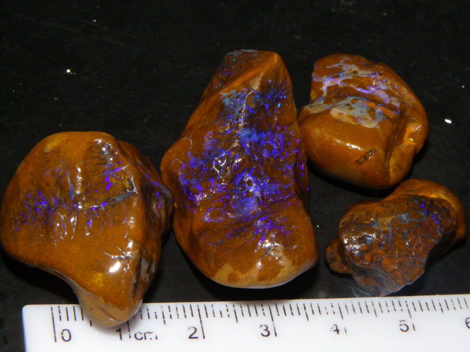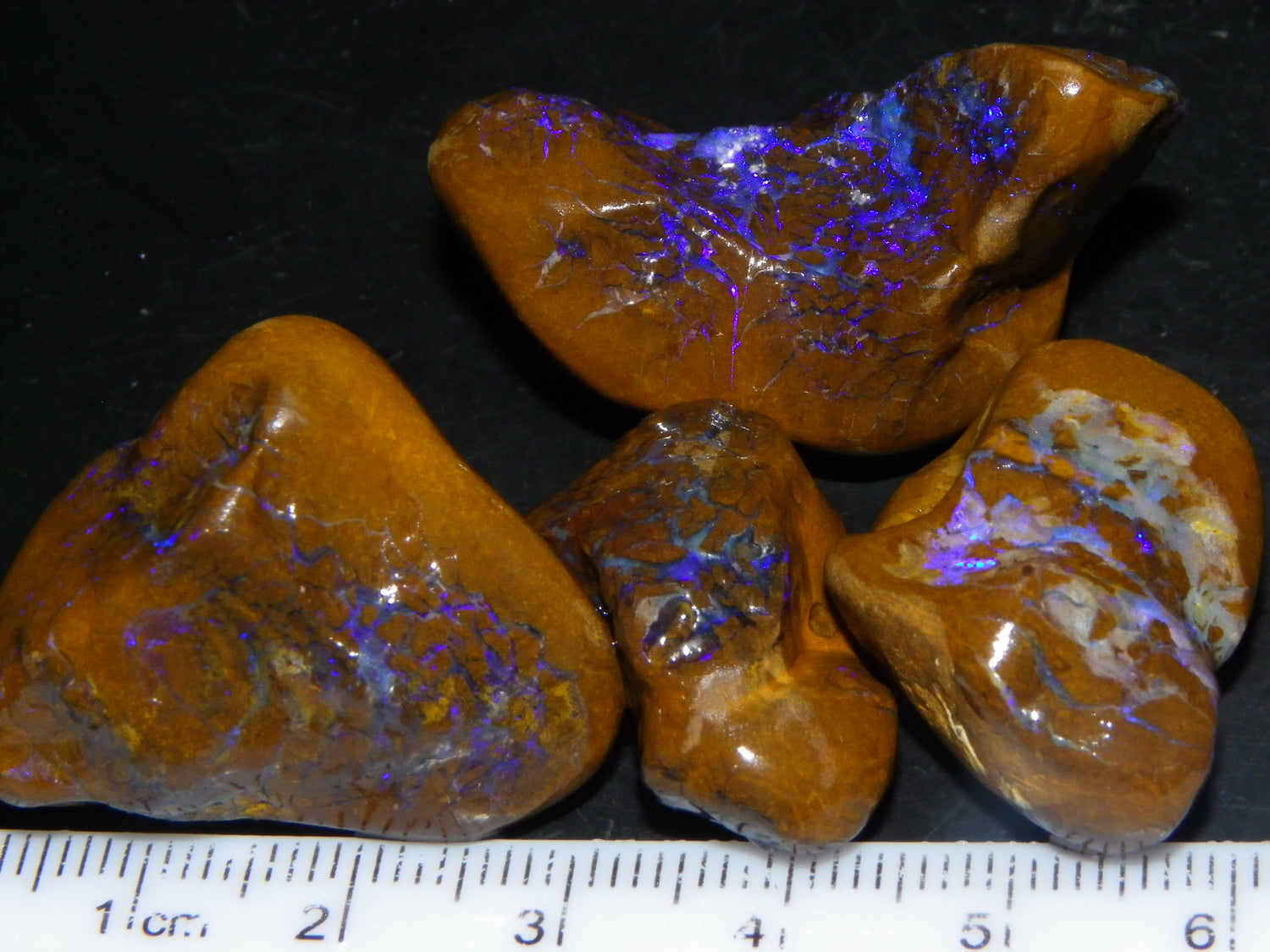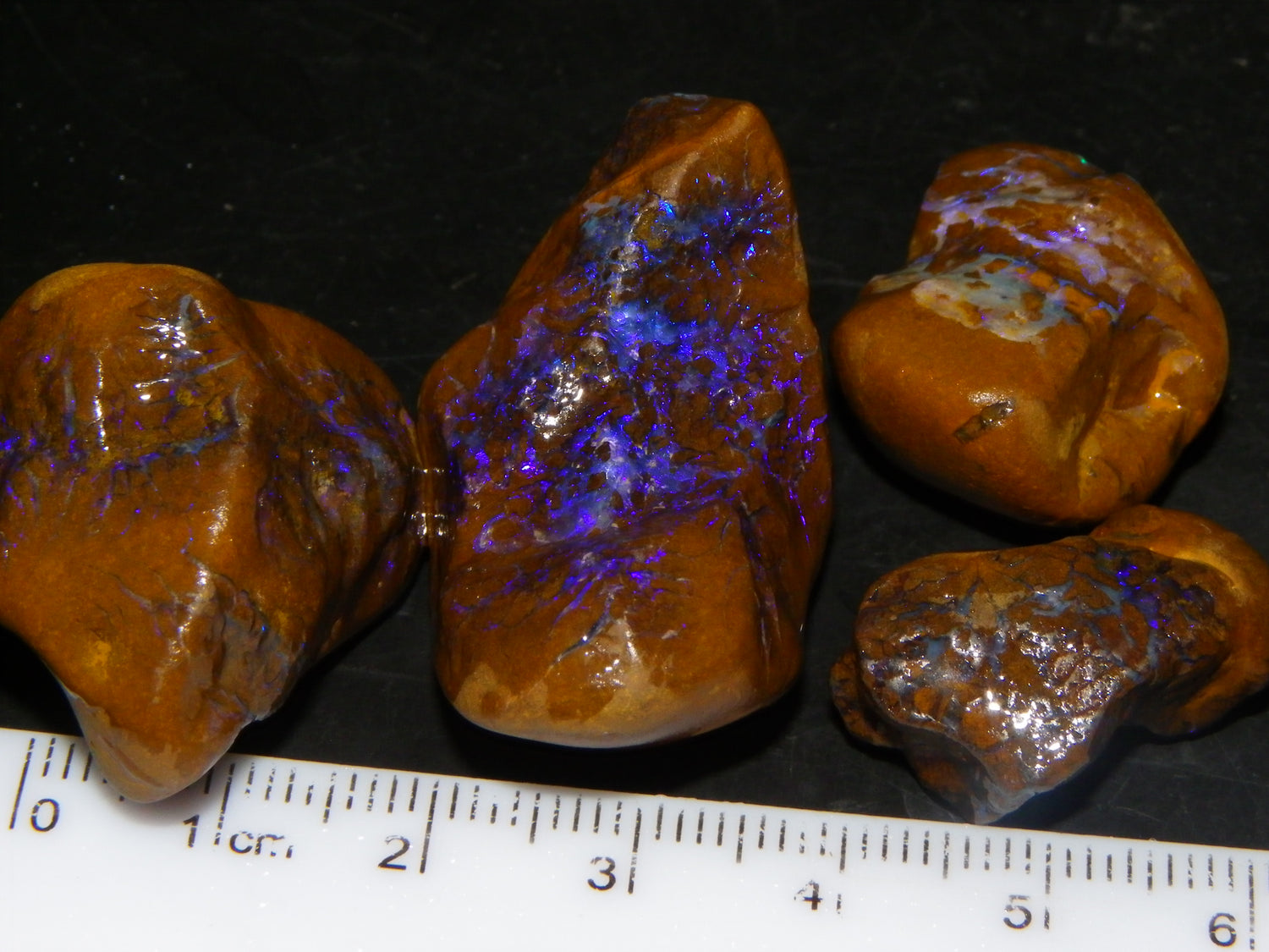 4 Rough/Tumbled Matrix Opals 251cts Queensland Blue/Purples Fires Ironstones Au