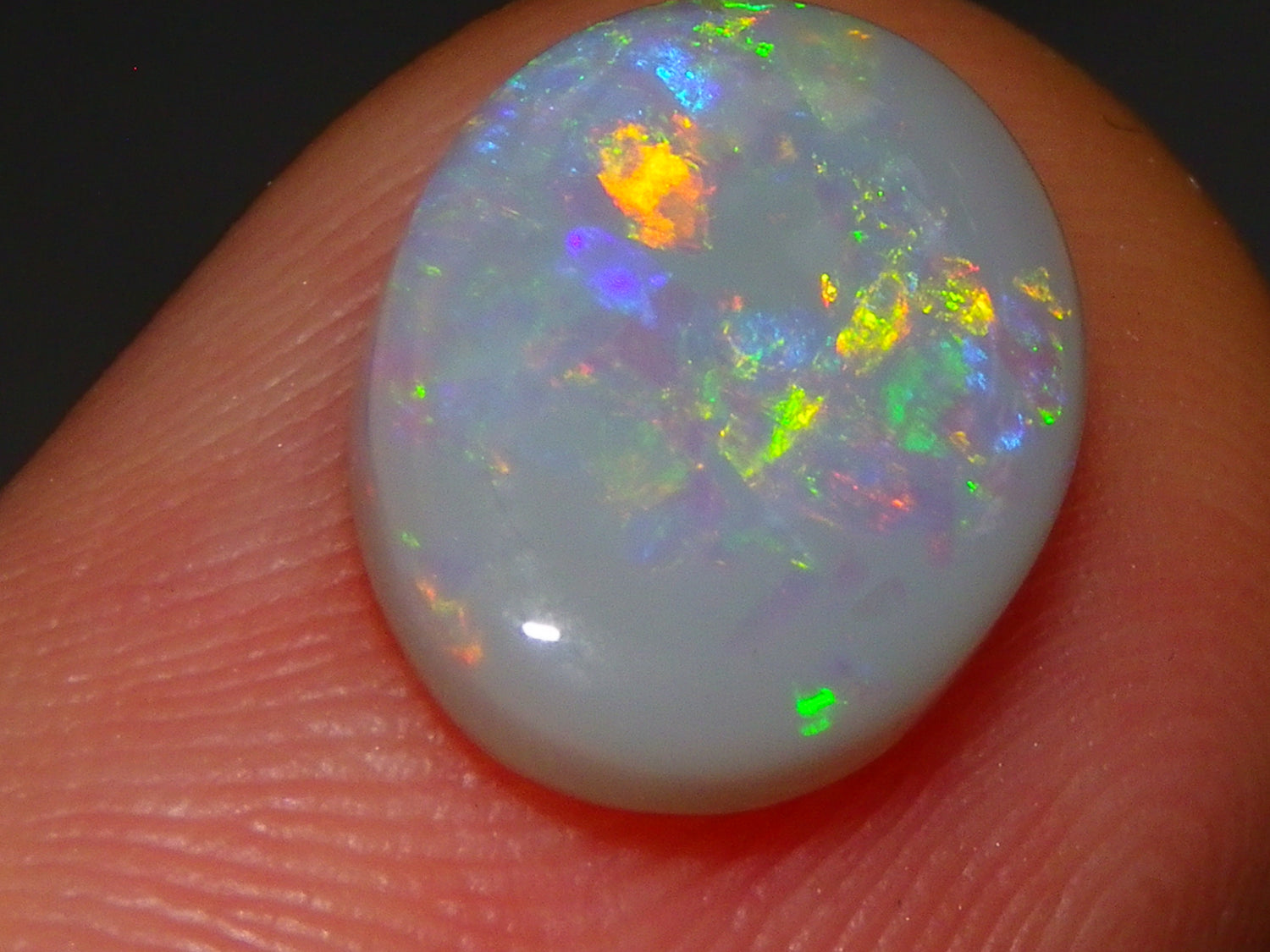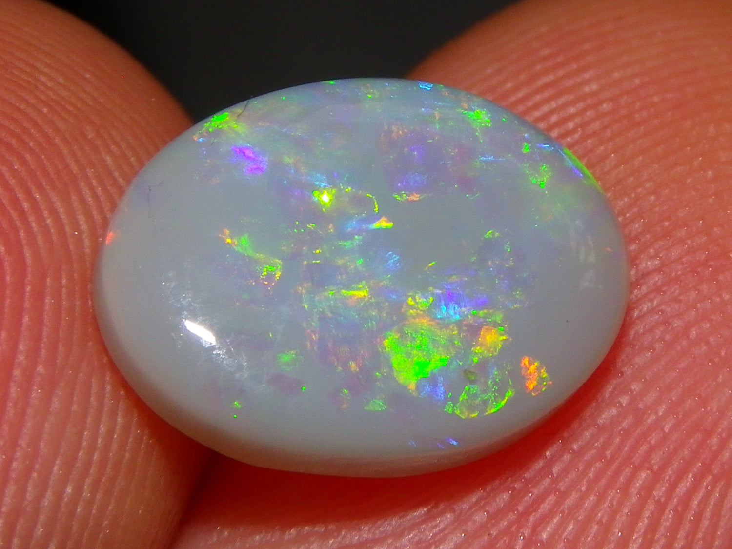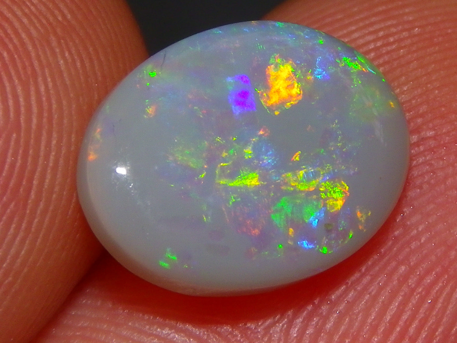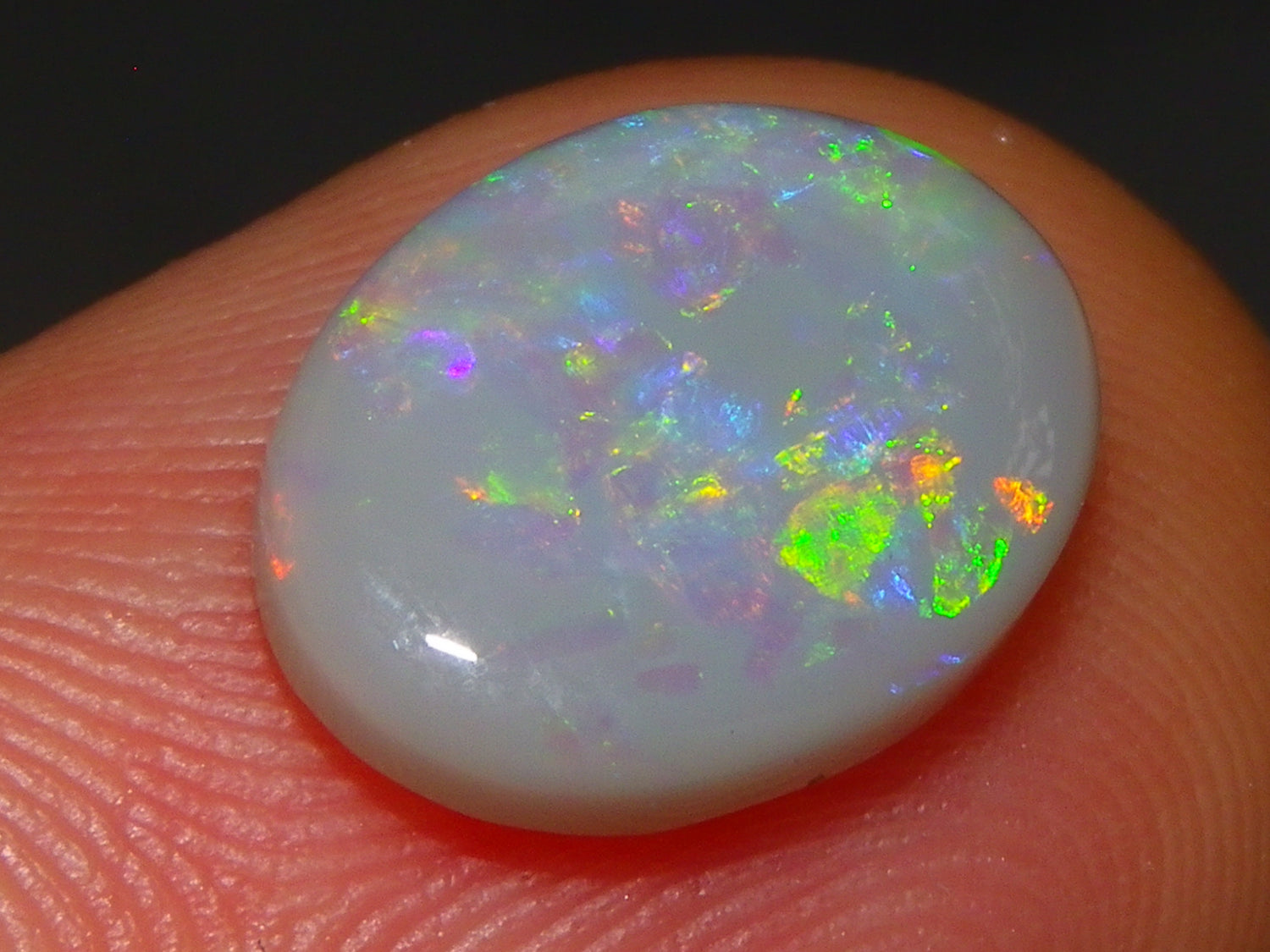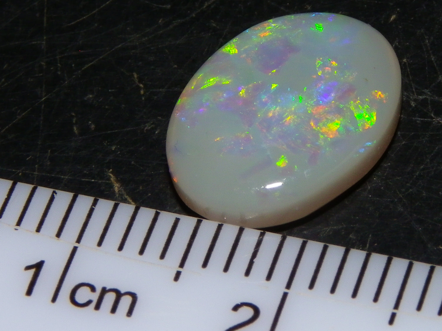 Gem Lightning Ridge Opal Cab 2.95cts Multicolour Fires Light Grey Base Australia