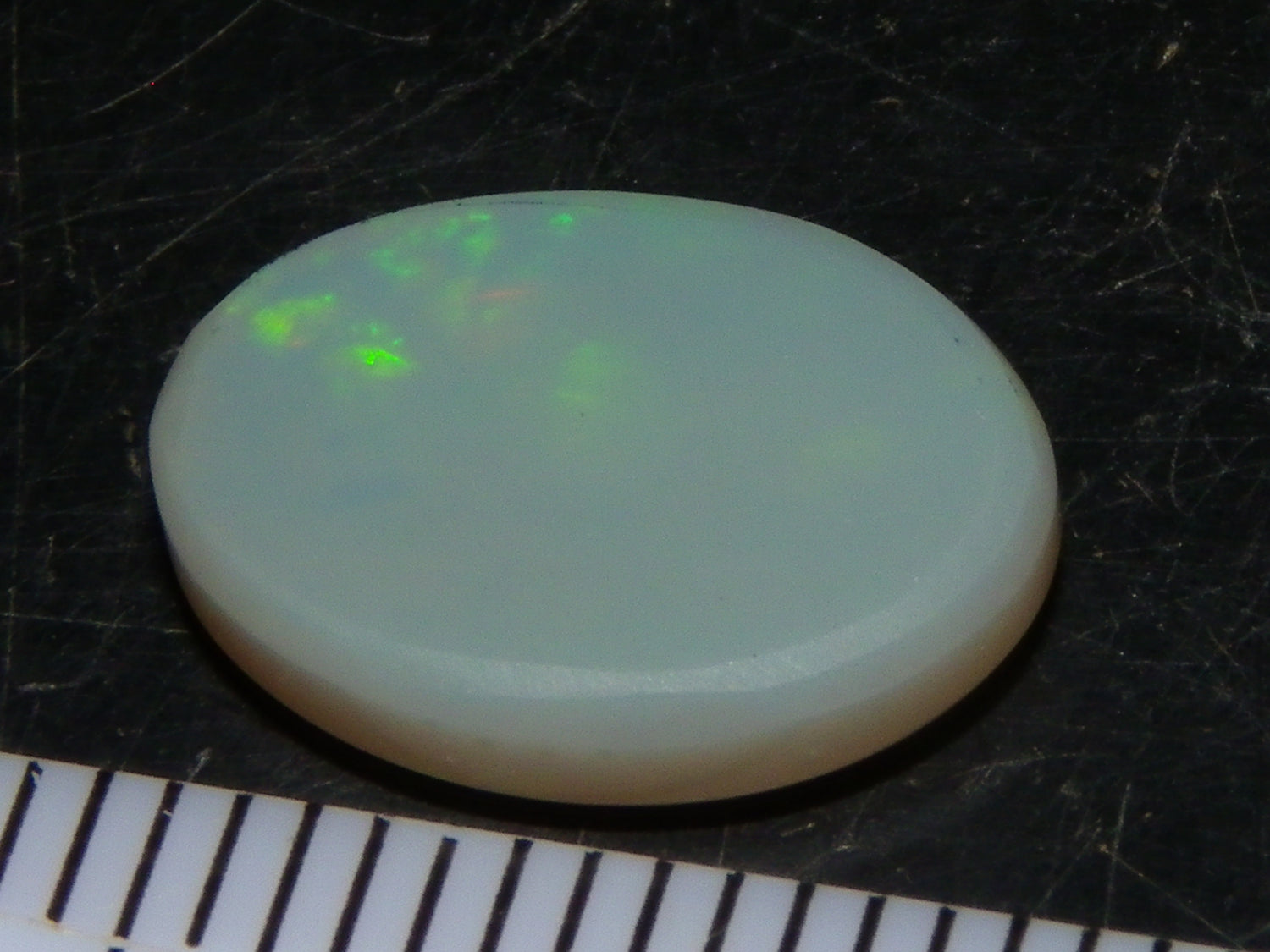 I have for sale a very nice cut and polished Lightning Ridge Opal Cab from Australia. This one weighs 2.95cts and is 13x9.5x3mm. Light Grey/Crystal Base material with bright Multicolour Fires over 80% of the face, and slightly into the back. Will make a Superb Ring or pendant stone. Thanks for looking.