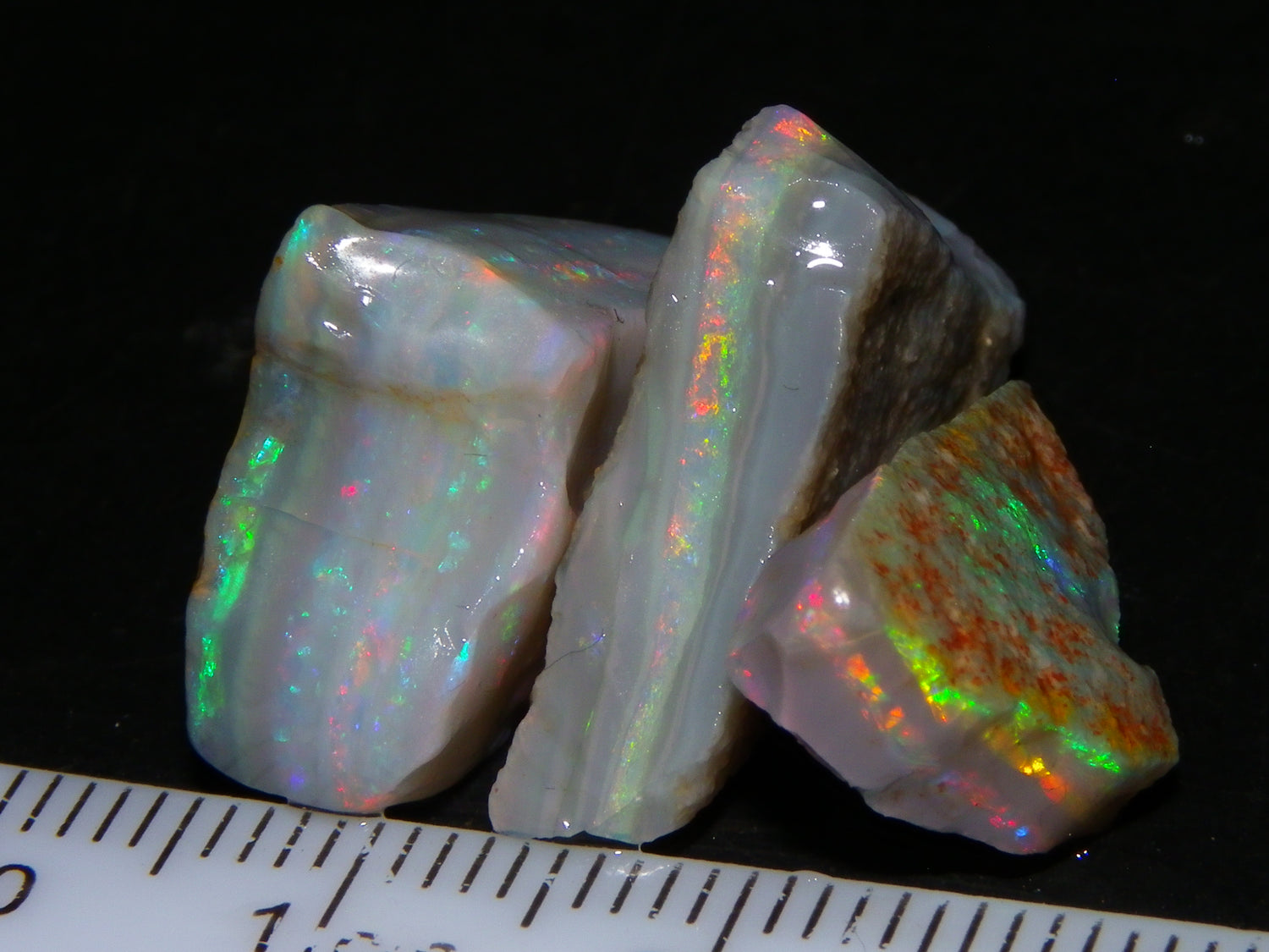 Gem Rough Mintabie Seam Opal Parcel 32.4cts Red/Multicolour Grey Base Australia
