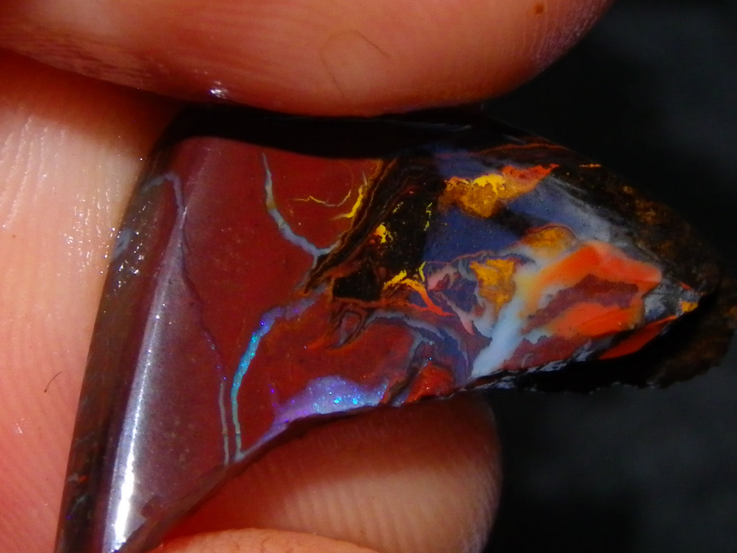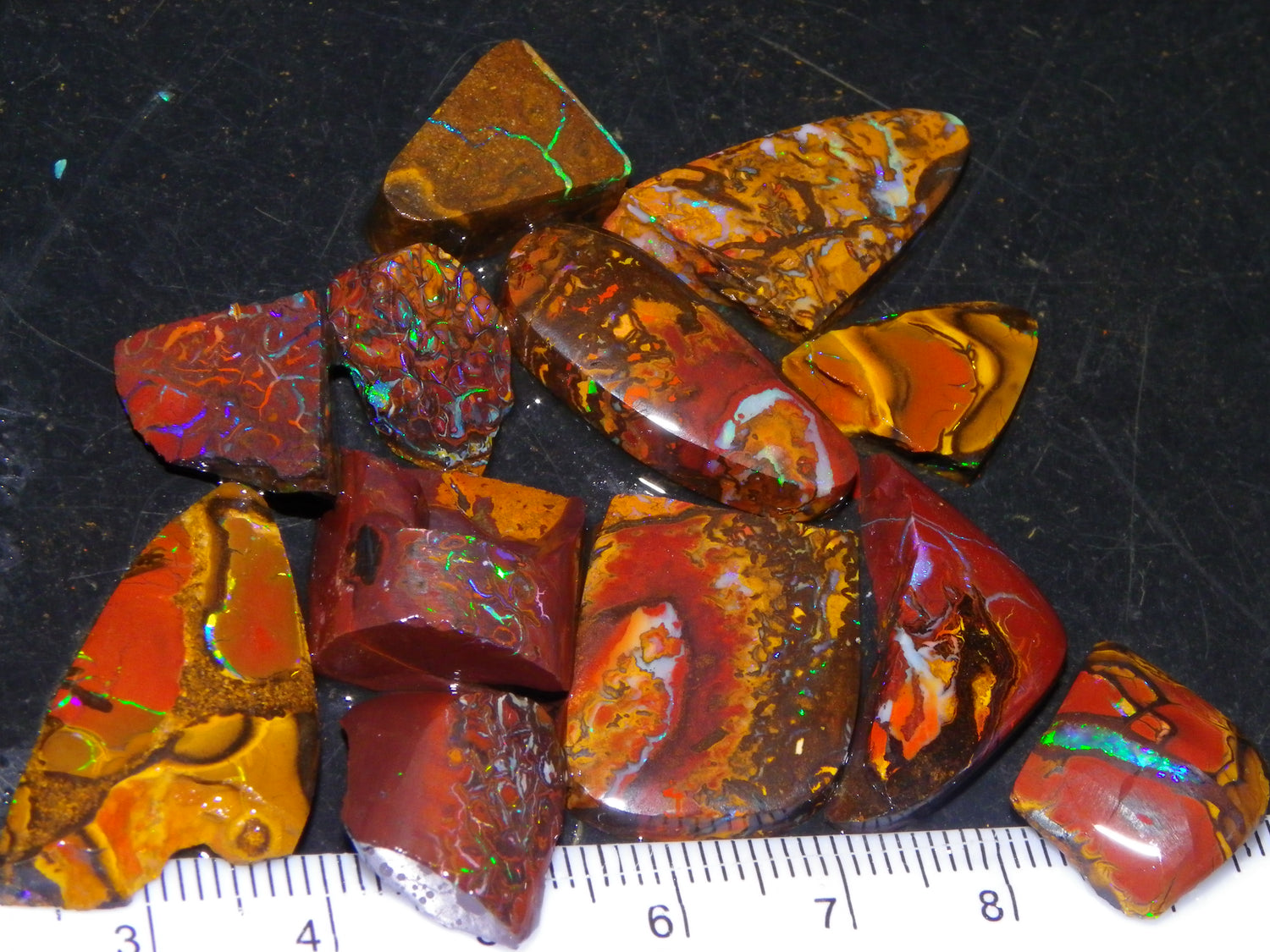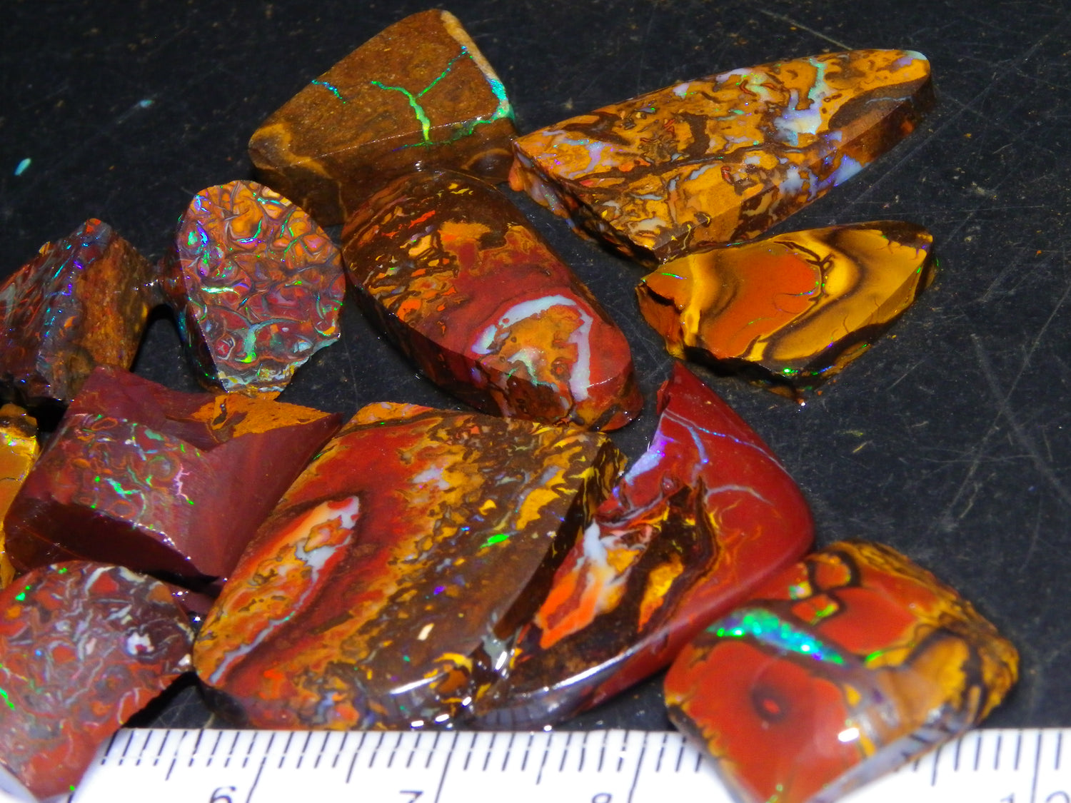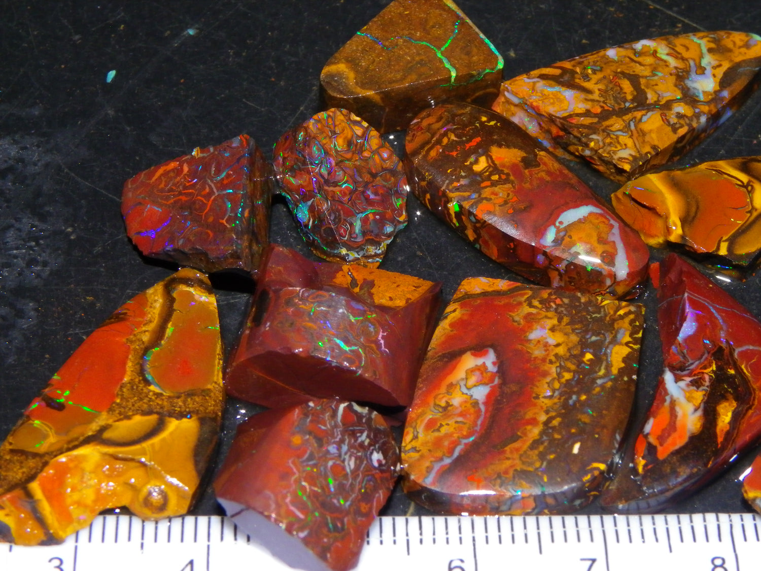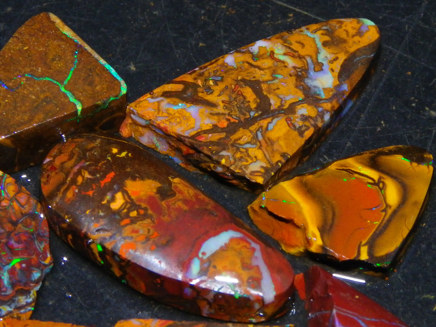 I have for sale a parcel of nice Rubbed and Preformed, (some broken cabs) parcel from Queensland Australia. These are Koroit material with veins/pattern and some nice Fires mixed in some. Some need reshaping, some need more. Will finish some nice cabs/Pendants and similar once worked through. Thanks for looking.