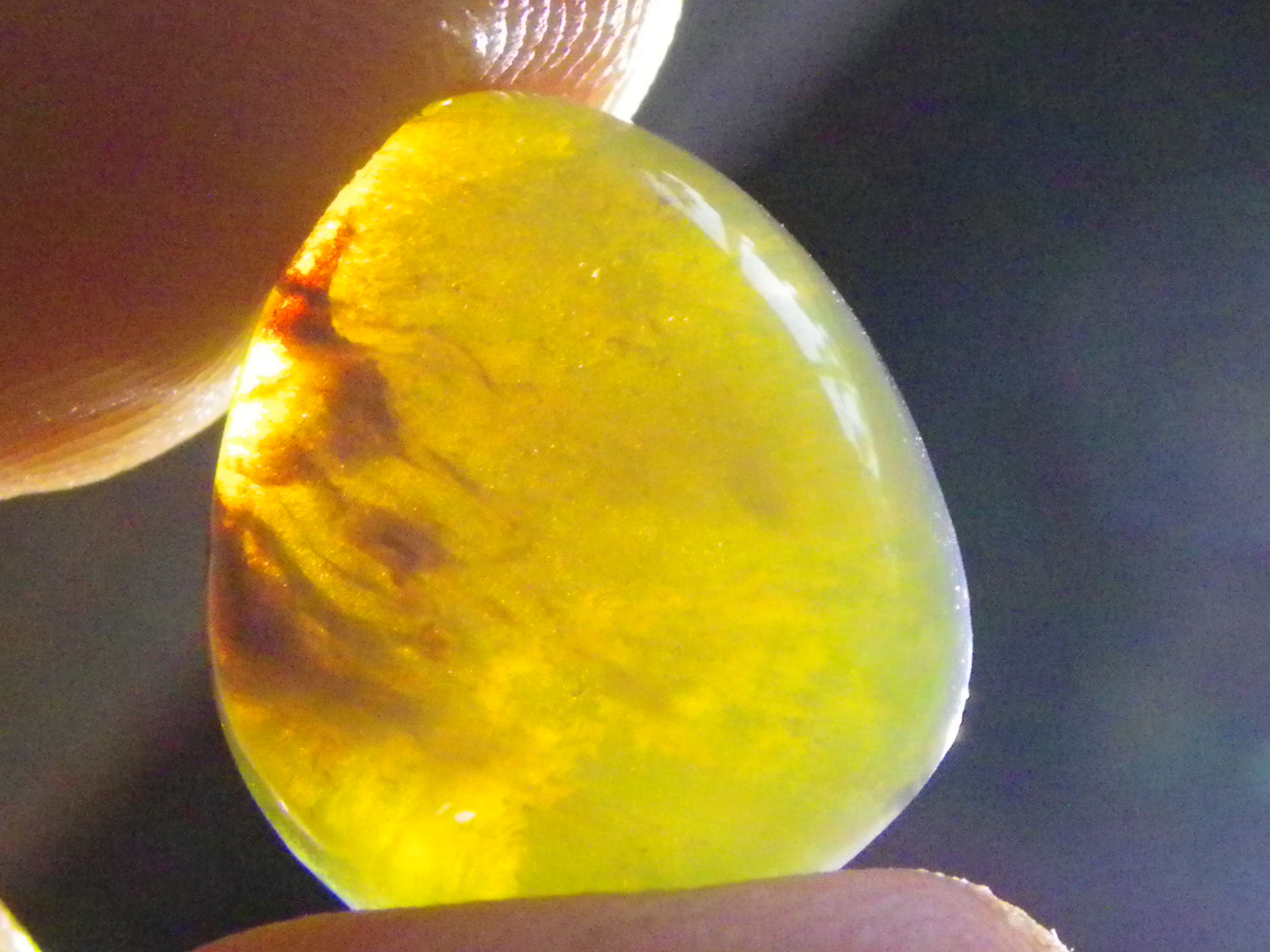 I have for sale a Nice Quality Cut and Polished Lightning Ridge Crystal Opal from Australia. This one weighs 9.09cts and is 1.5x14x6.5mm. It is a Beautiful Clearer crystal with some Black /Darker patches in one side. No cracks, Freeform shape, Lovely Blue/Purple Fires when moved. Great Pendant stone, or add to a collection,.,. Thanks for looking.