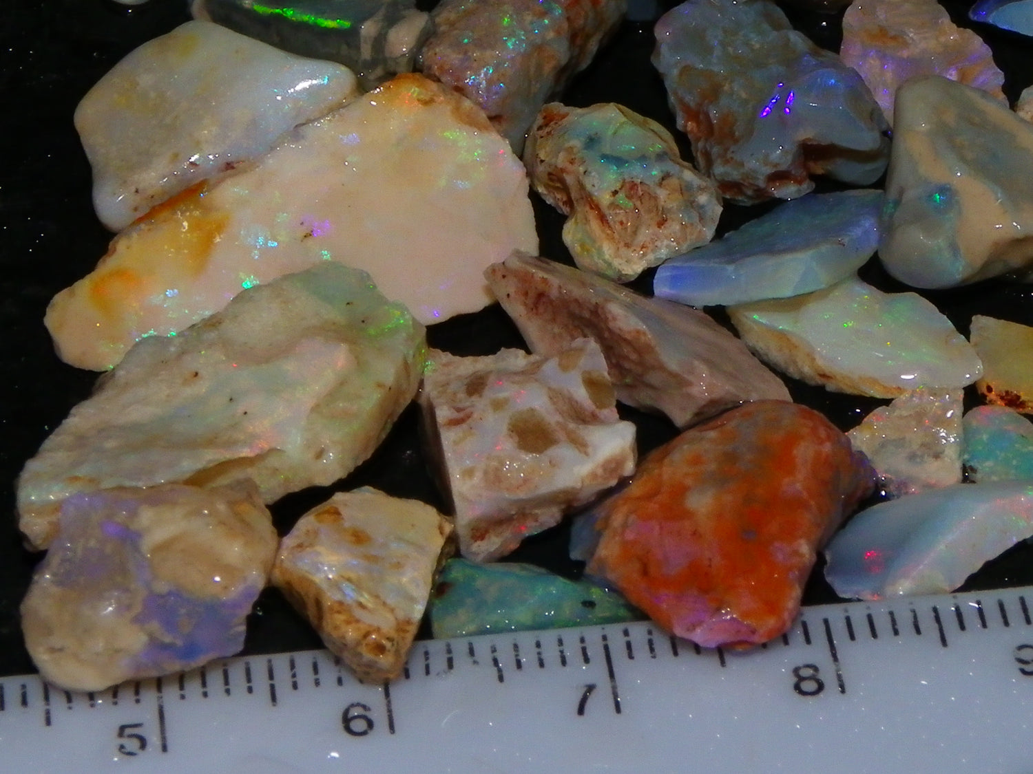 I have for sale a nice mixed opal parcel from Lightning Ridge/Coober Pedy and some matrix from Andamooka. These weigh 181cts in total. They are mixed base Crystal, Light/Milky and darker base. Some Fires in each, in bars, P+C or similar. Green/Blues and some Reds. Great Specimen mix for someone new to opal, some nice Fires, Overall smaller piece, if tumble cleaned will get a few great specimen jars and similar, maybe a small freeform. Thanks for looking.