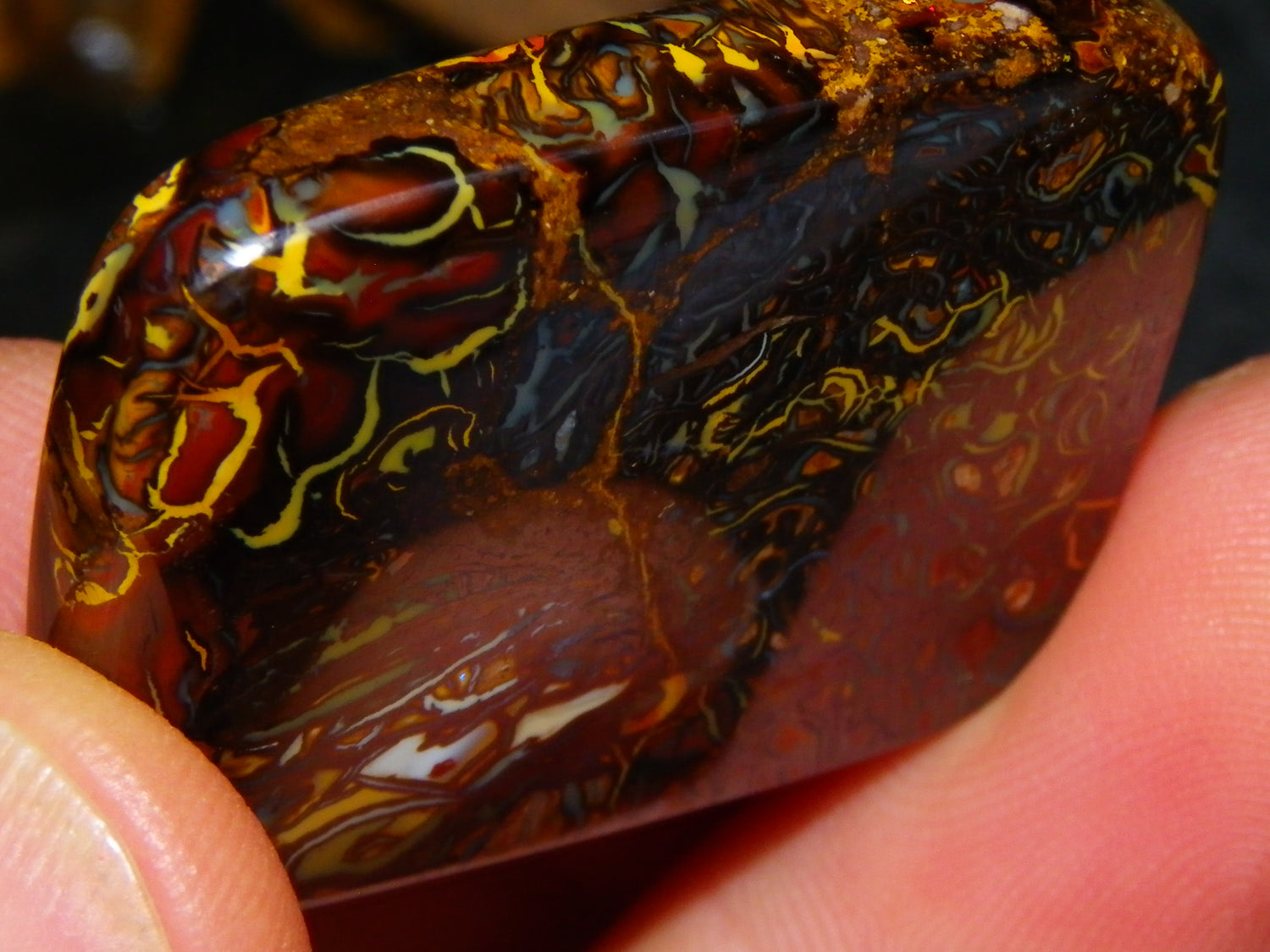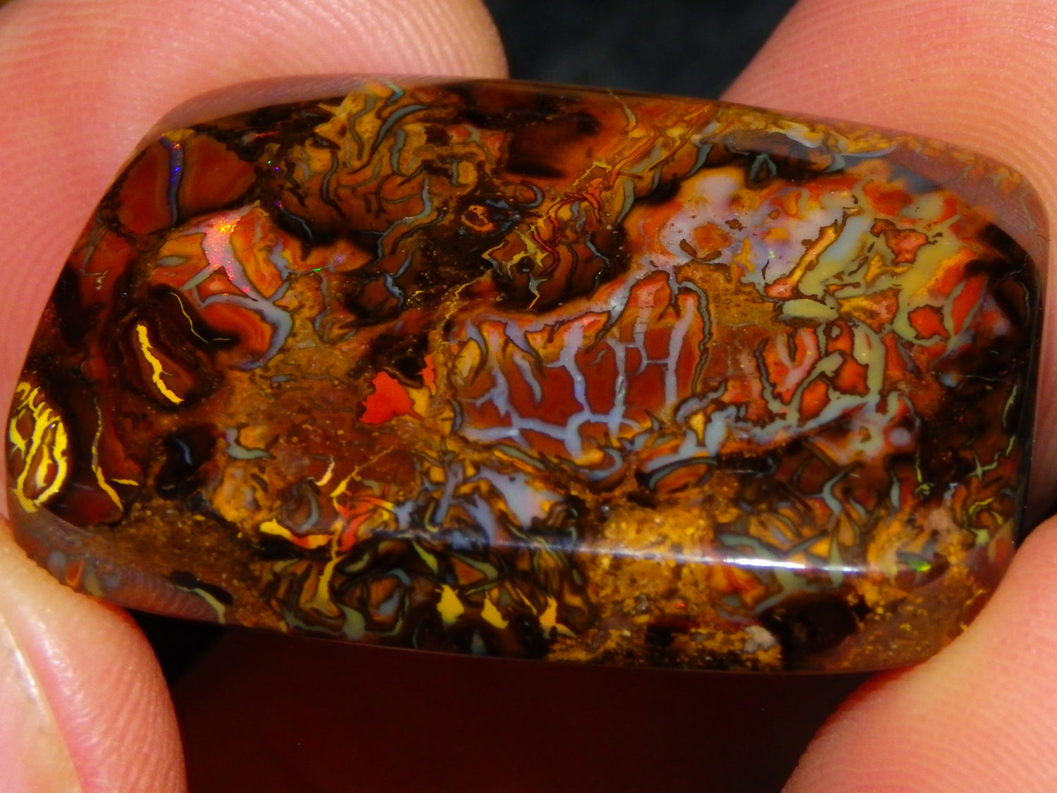 Nice Quality Koroit Opal Cab/Freeform 80.04cts AA Patterns Slight Fires Queensland Australia
