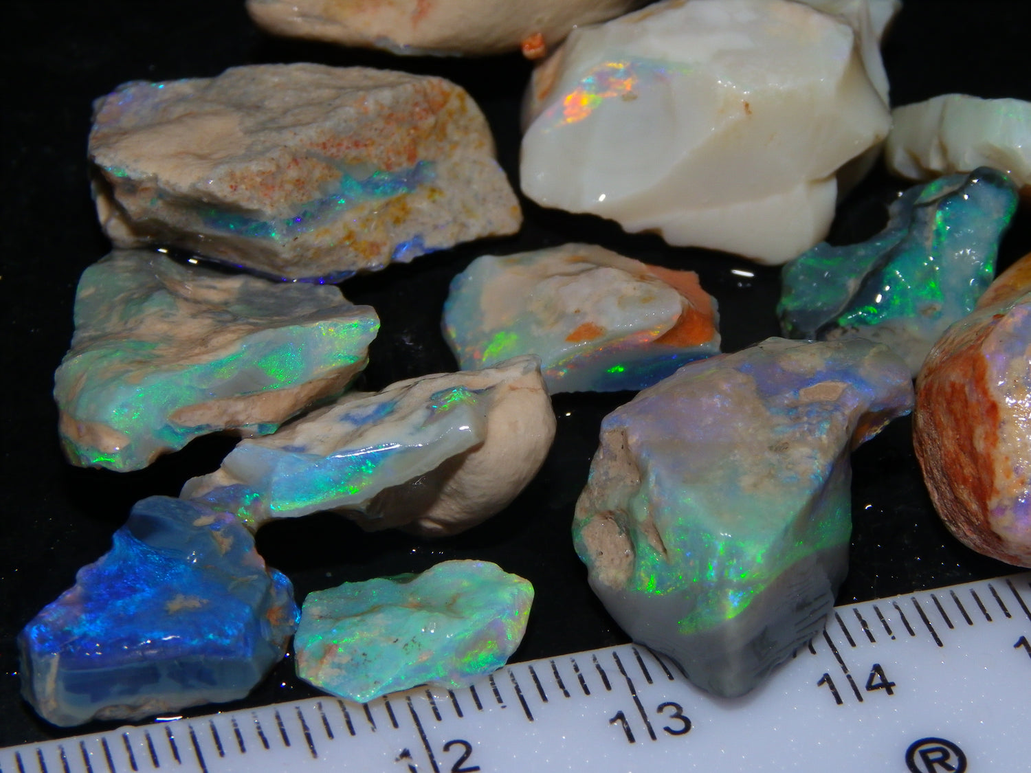 I have for sale a Nice Rough Opal parcel from Lightning Ridge Australia. These weigh 137cts in total. They are Mixed base Light/Dark/Crystal and then Seam/Nobby pieces. Some Brighter Blue/Greens in places. Some P+C/Specimen/Practice aswell. Good lot to clean up and see what you get. Make some Jewelery, or add to a collection. Thanks for looking.