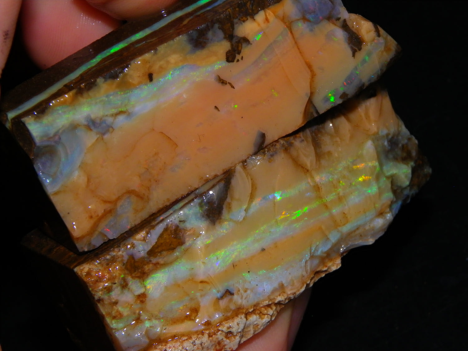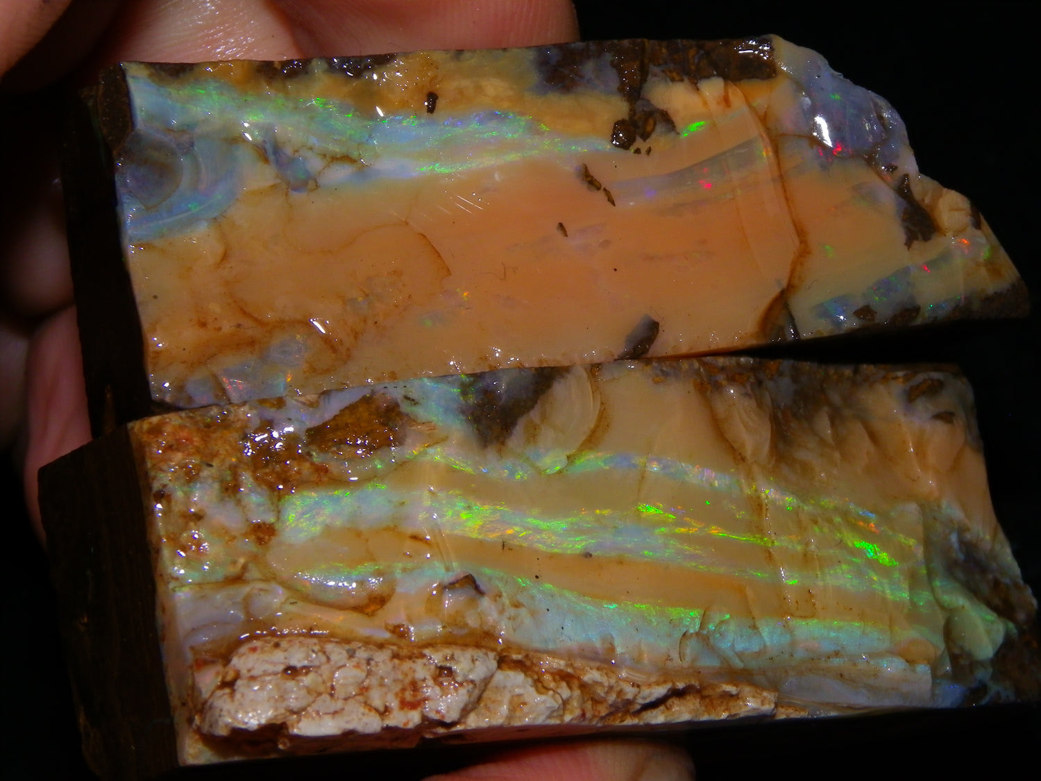 Nice Rough Sliced/Split Boulder Opals 578cts Green/Gold Stripes/Fires Some Reds