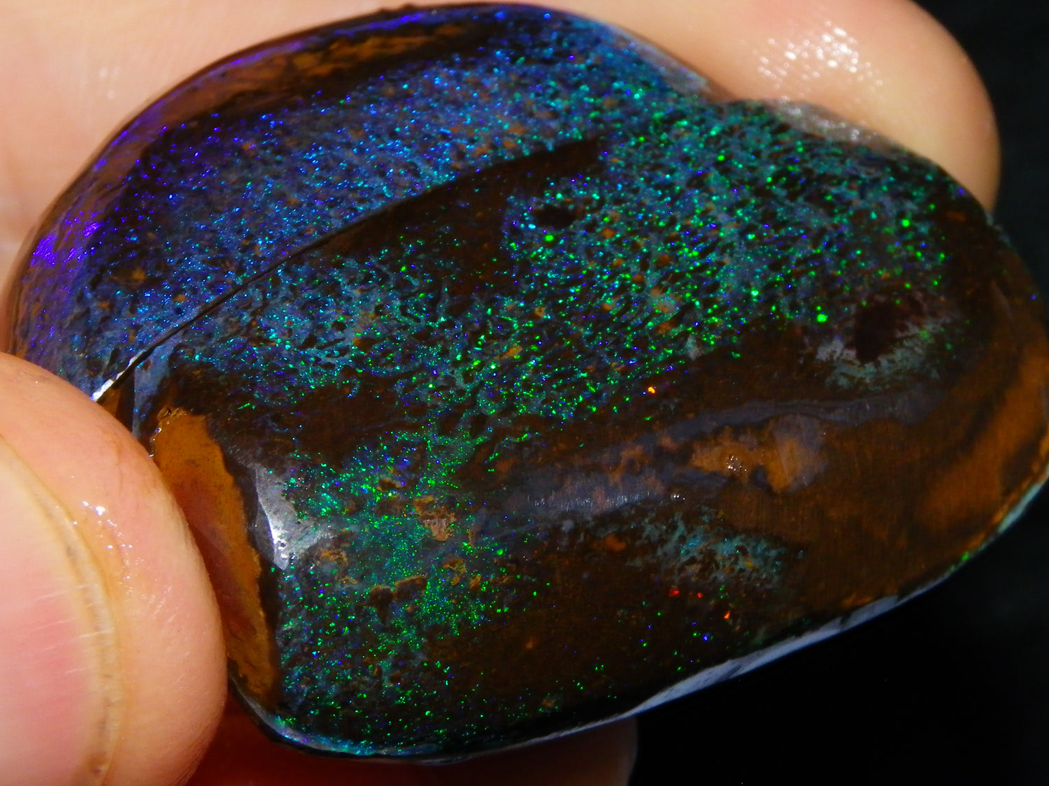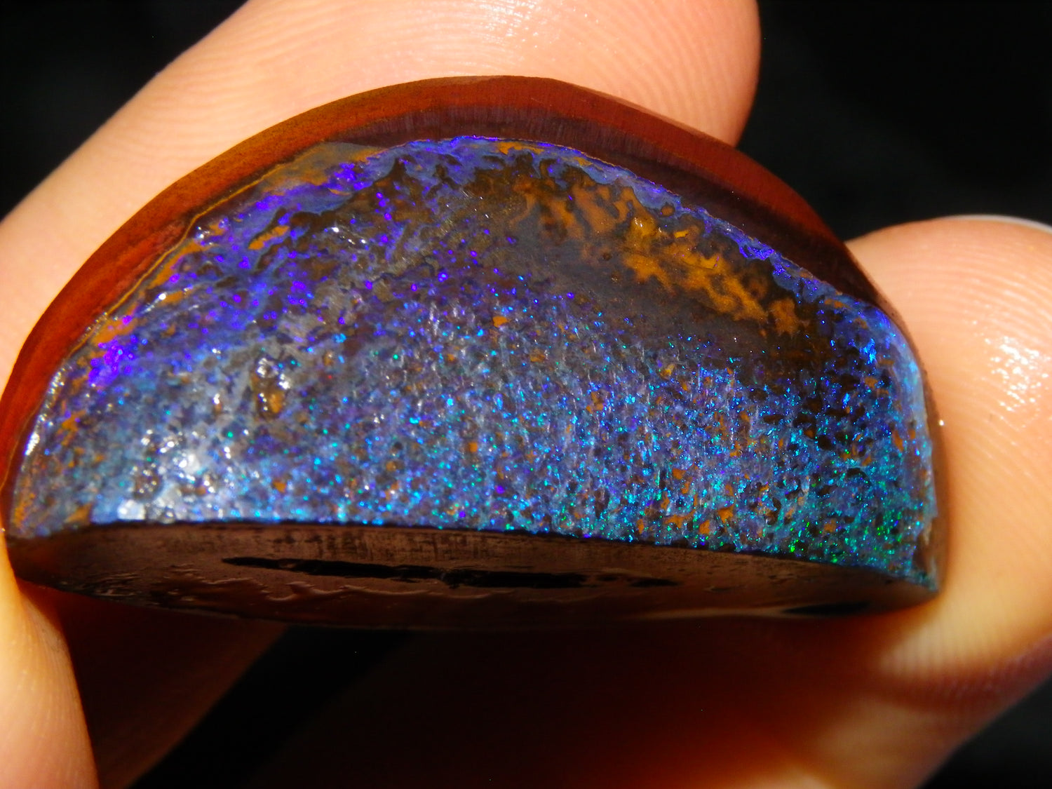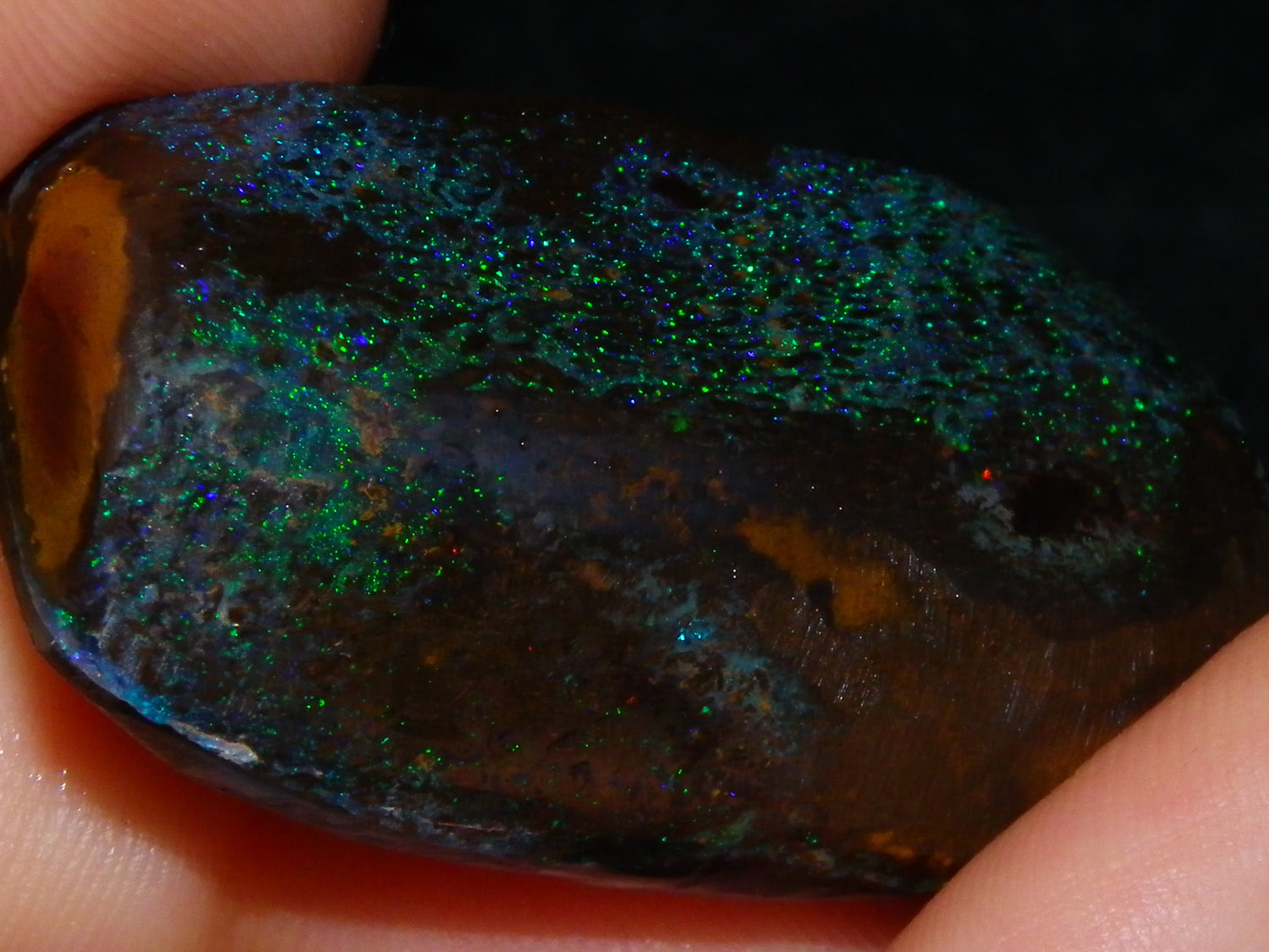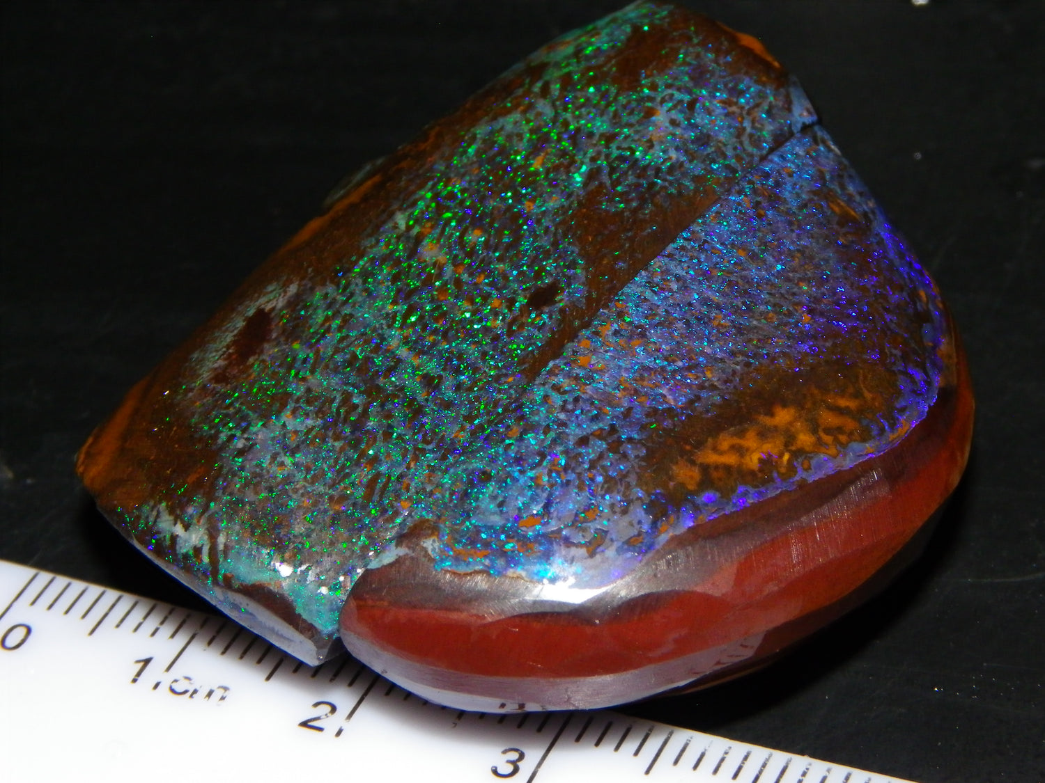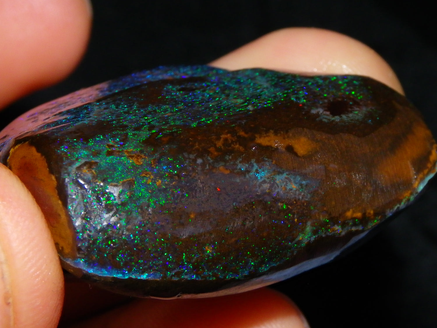 I have for sale a Rare and Unusual Sliced Koroit Opal Nut Pair/Specimens from Queensland Australia. These 2 weigh 267.5cts between them. They are an Ironstone Nut, with the Thin Blue/Green Skin exposed over a large part of the Top Faces, and sides on one. One has Nice Green Pinfires, the other has more Blue/Purples. It has been part polished aswell. With some time and work, more of the Skin can be cleaned up. Very unusual, full Nut Specimen Pair. Backs still rough, need to clean up to the thin skin,. Find another one,,. Thanks for looking,.,.