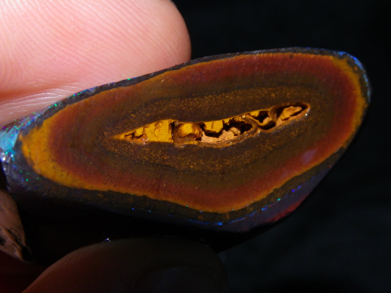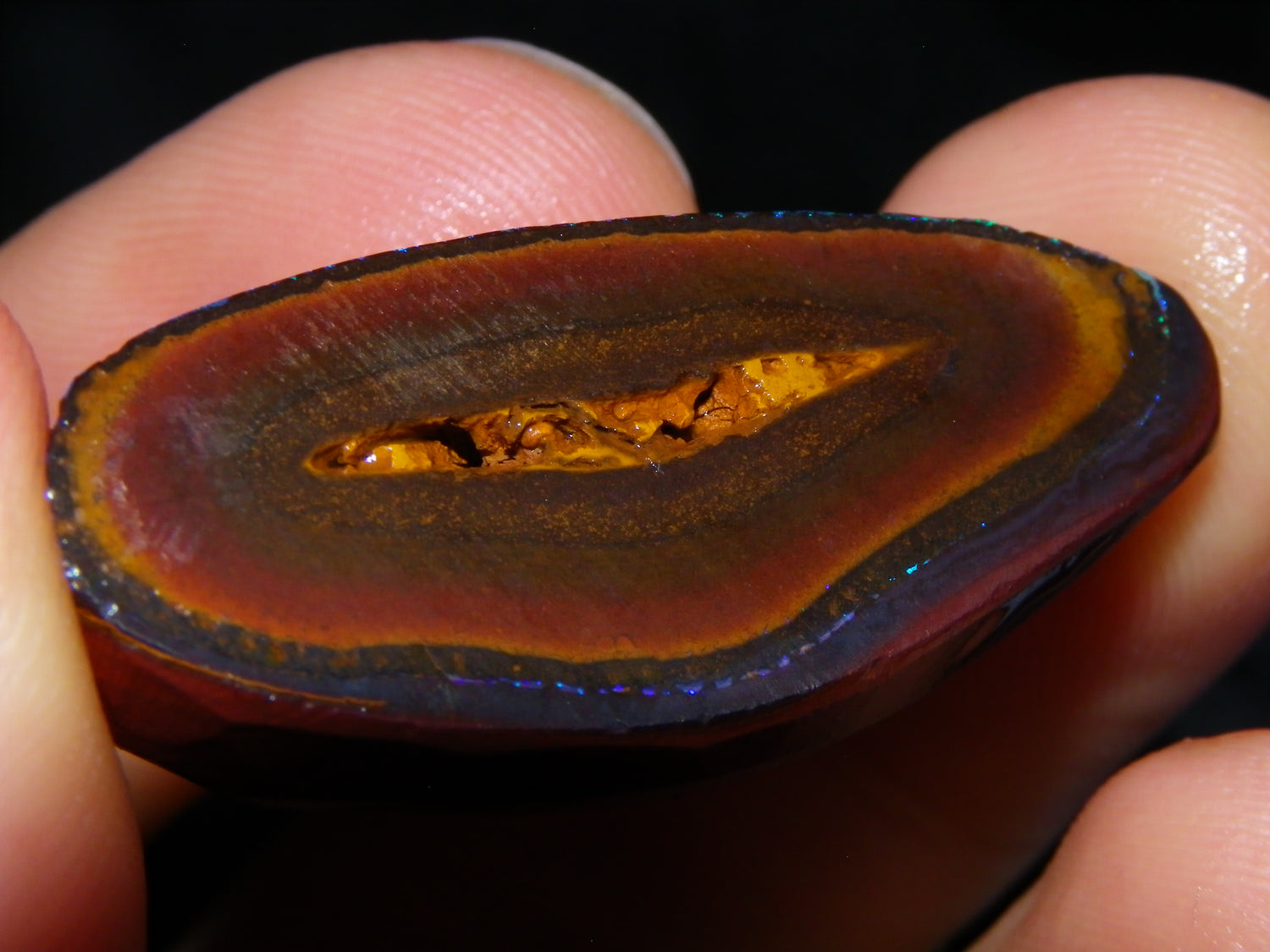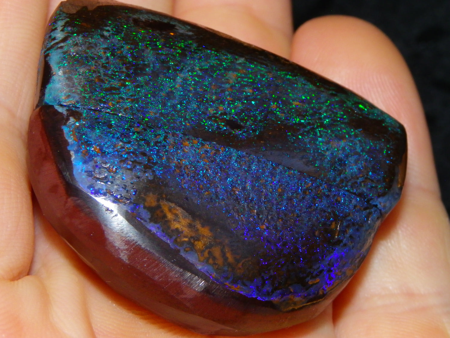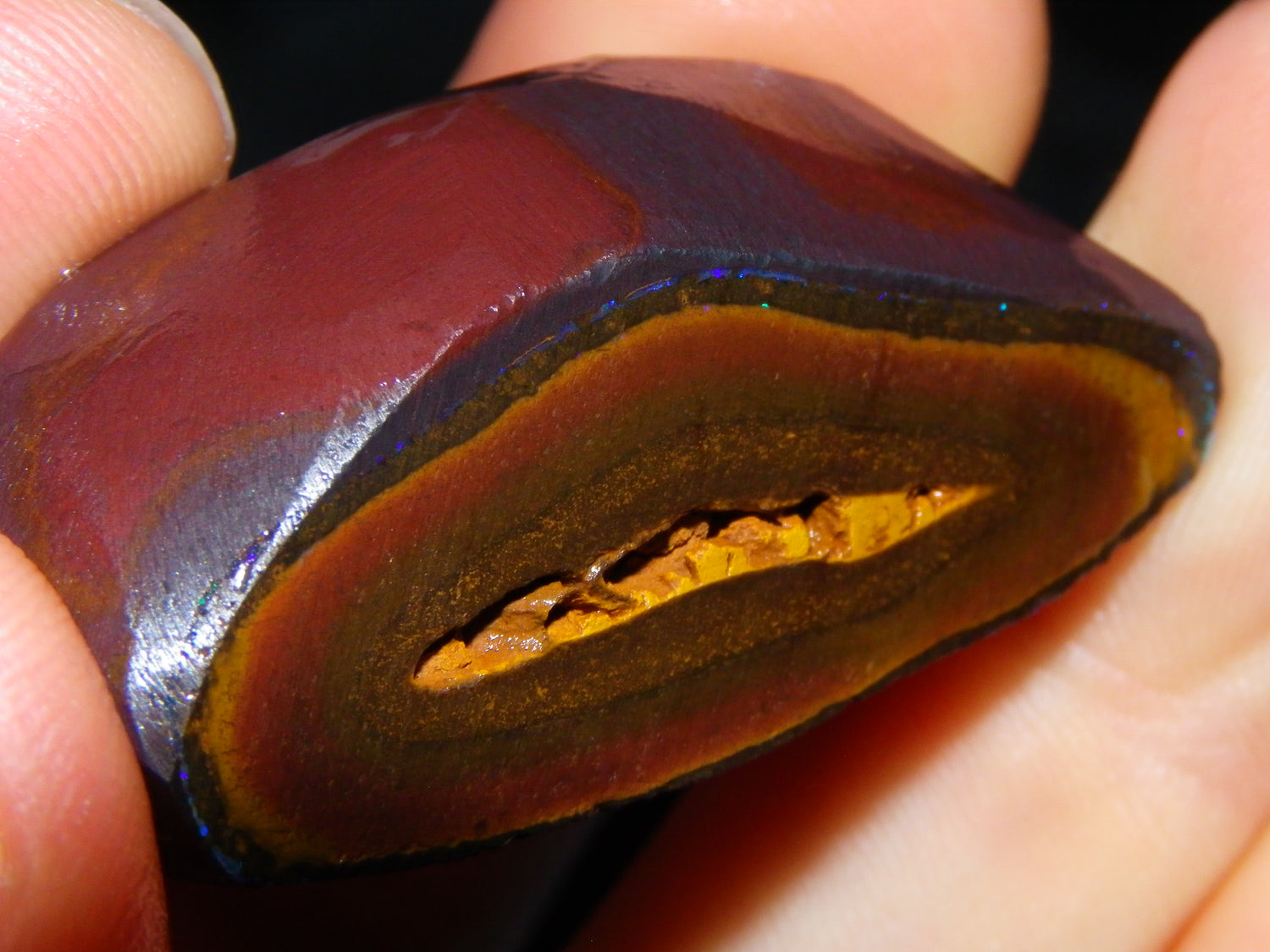 I have for sale a Rare and Unusual Sliced Koroit Opal Nut Pair/Specimens from Queensland Australia. These 2 weigh 267.5cts between them. They are an Ironstone Nut, with the Thin Blue/Green Skin exposed over a large part of the Top Faces, and sides on one. One has Nice Green Pinfires, the other has more Blue/Purples. It has been part polished aswell. With some time and work, more of the Skin can be cleaned up. Very unusual, full Nut Specimen Pair. Backs still rough, need to clean up to the thin skin,. Find another one,,. Thanks for looking,.,.