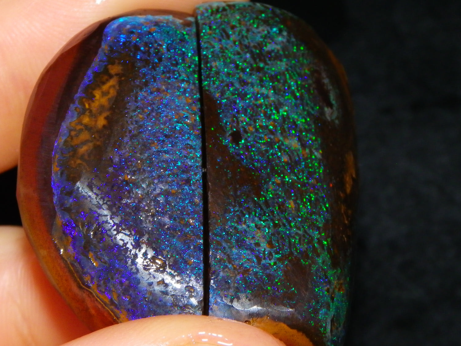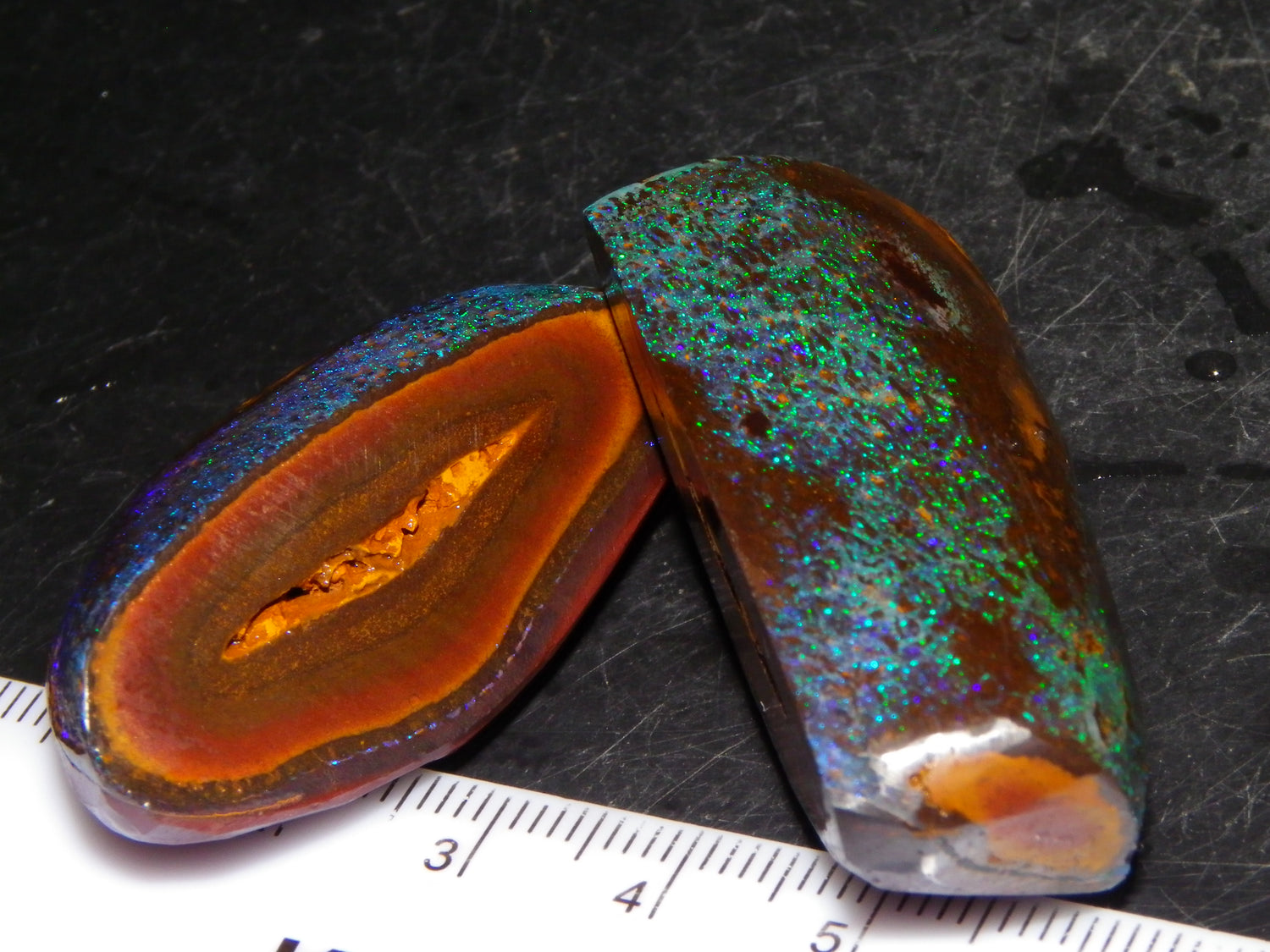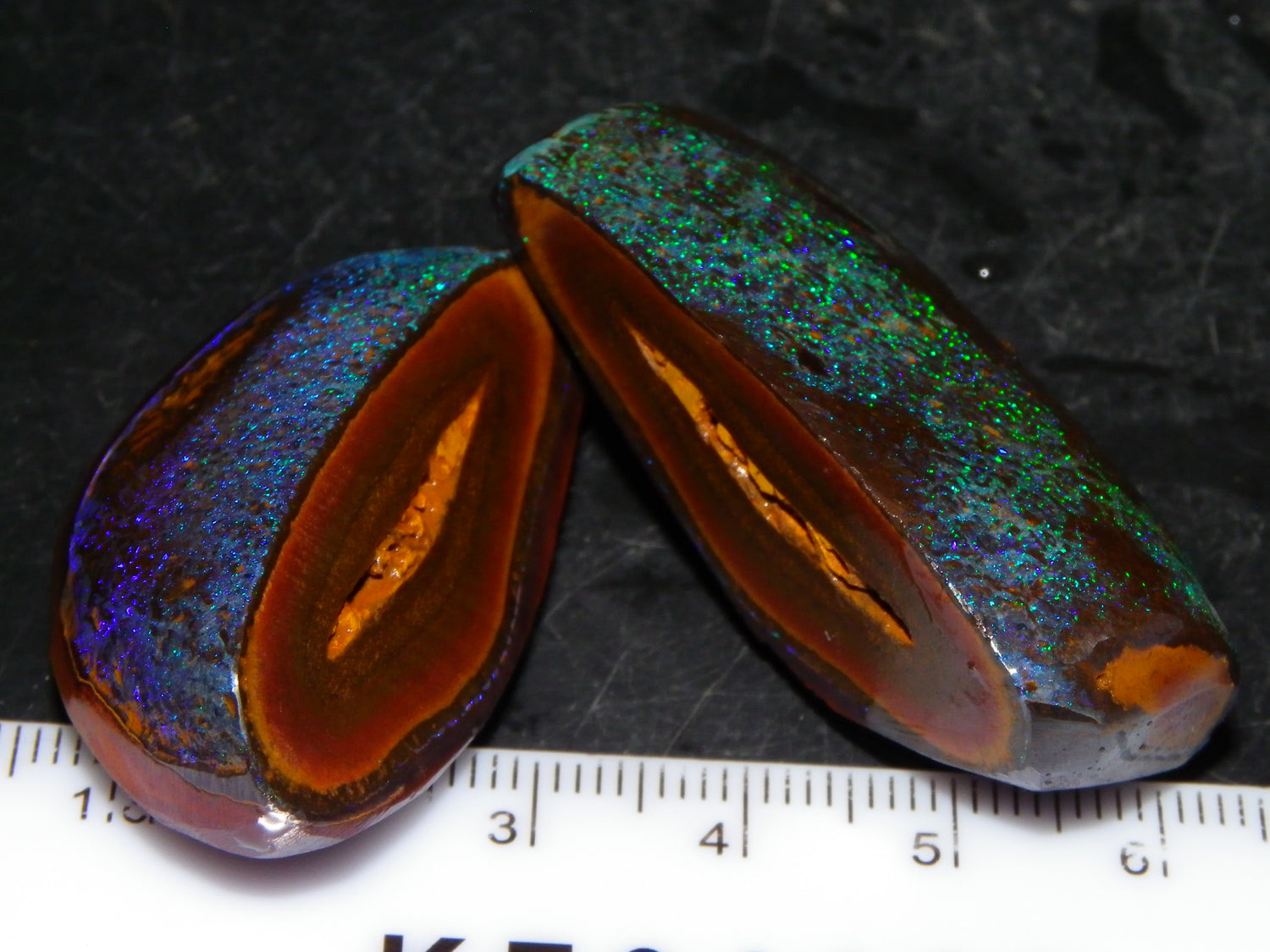 Very Nuce Rubbed Koroit Opal Sliced Nut Specimen Pair 267.5cts Blue/Green Pinfires Au